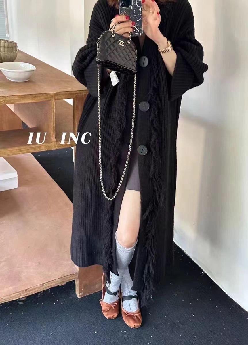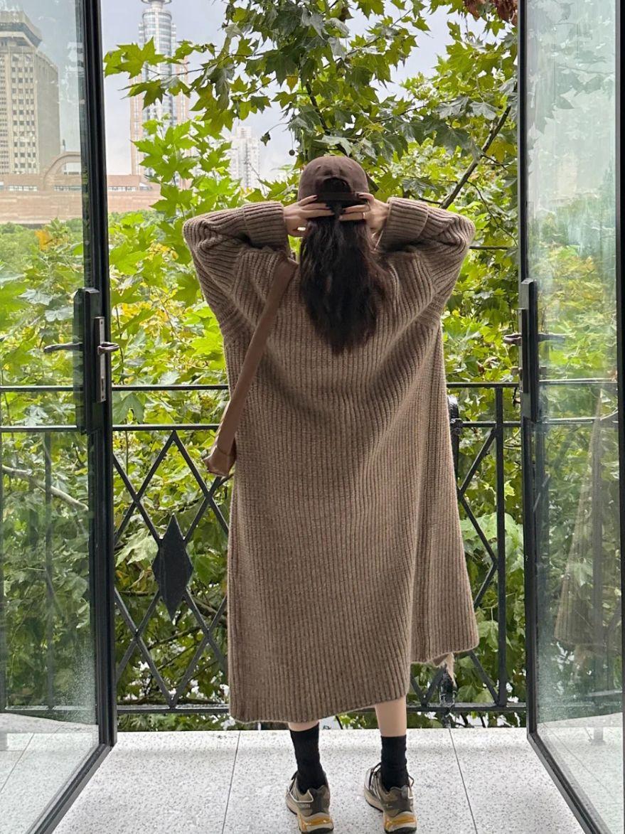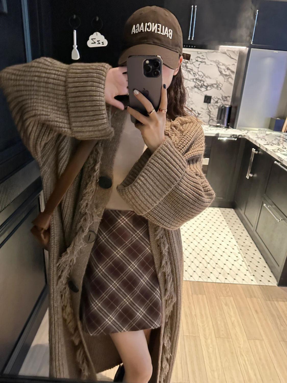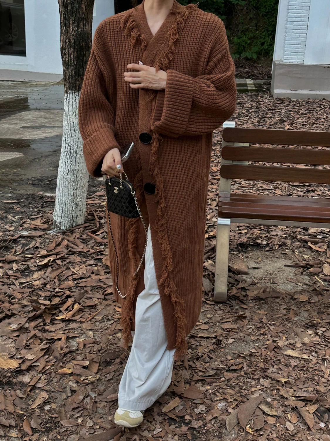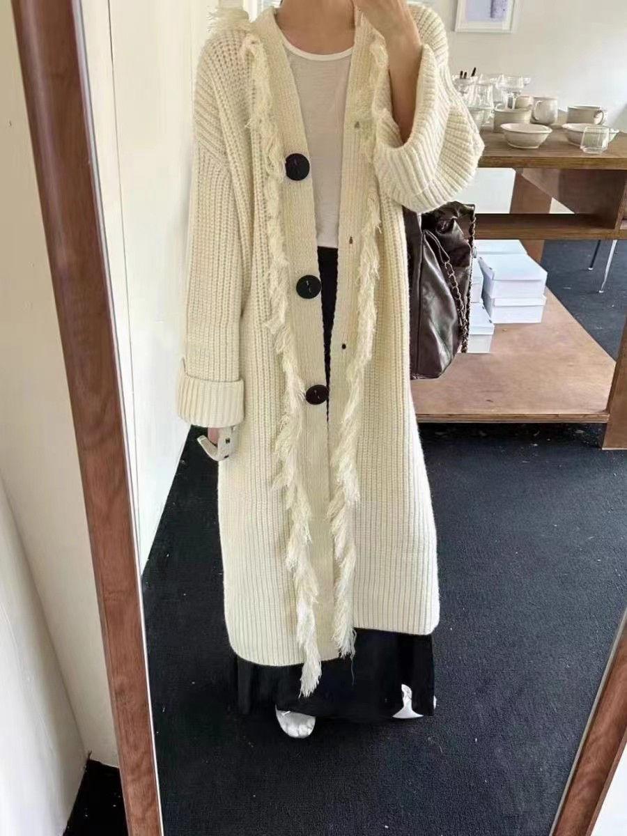 Sentido del diseño nuevo producto adelgazante borla suéter grande cortavientos abrigo engrosado estilo holgado perezoso cárdigan largo de punto invierno