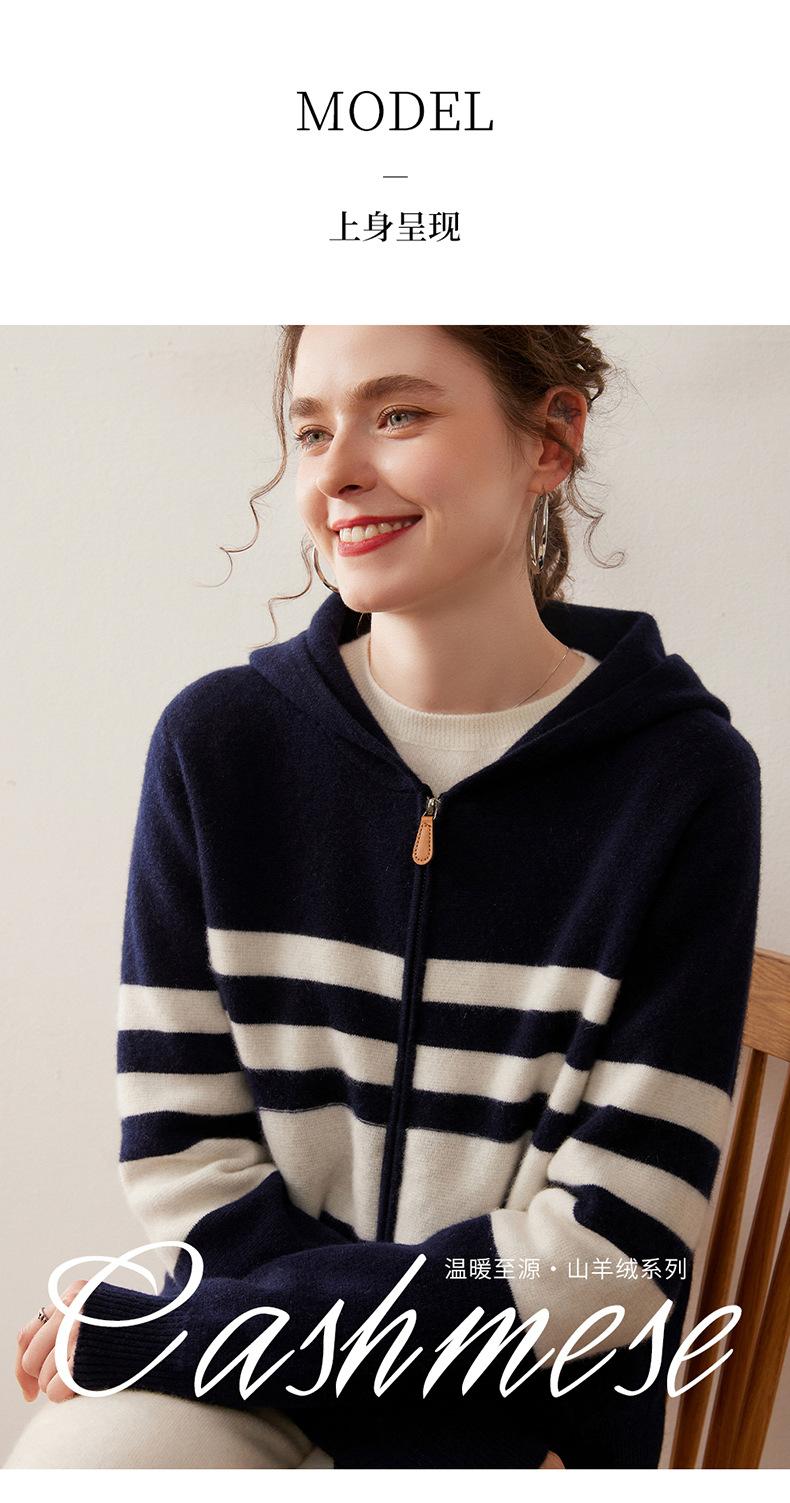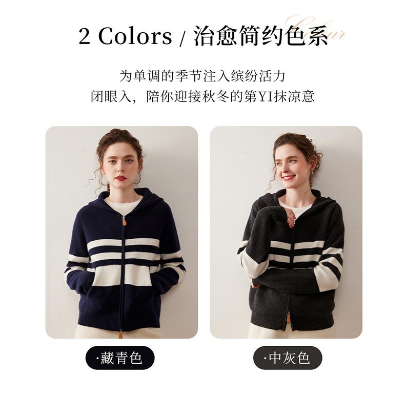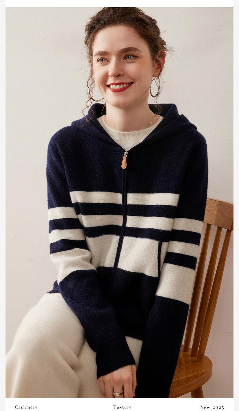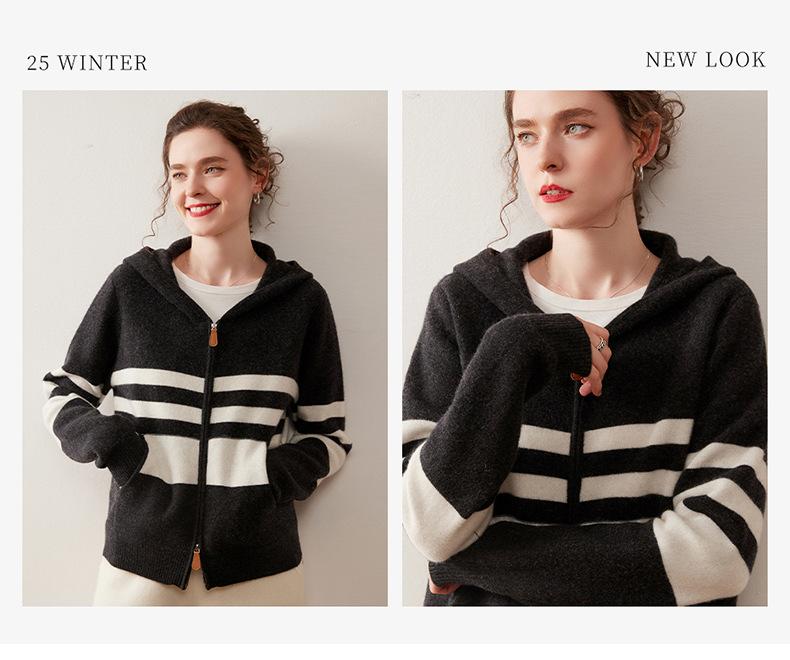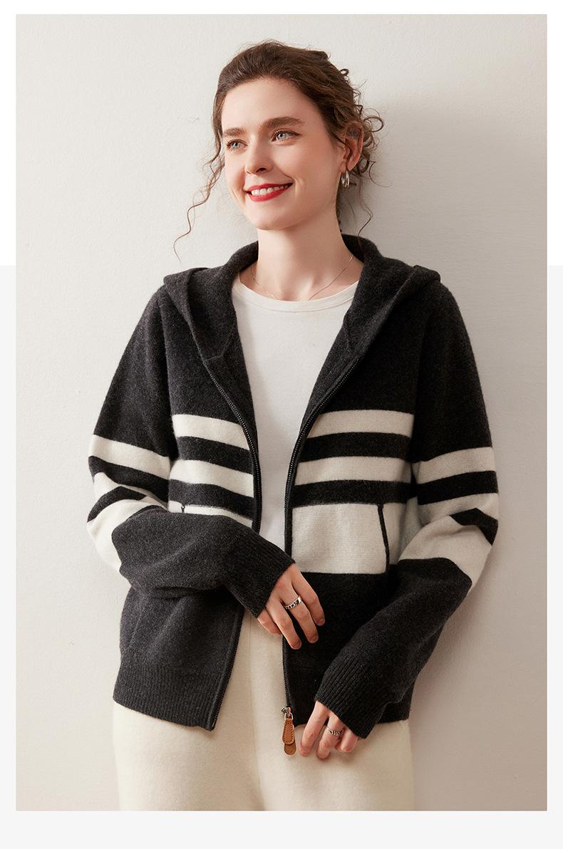 Moda Raya Otoño e Invierno Nuevo Sudadera con Capucha con Cremallera Suéter de Cachemira Cárdigan de Manga Larga para Mujer Top Versátil Estilo Súper Grueso Suave y Ceroso