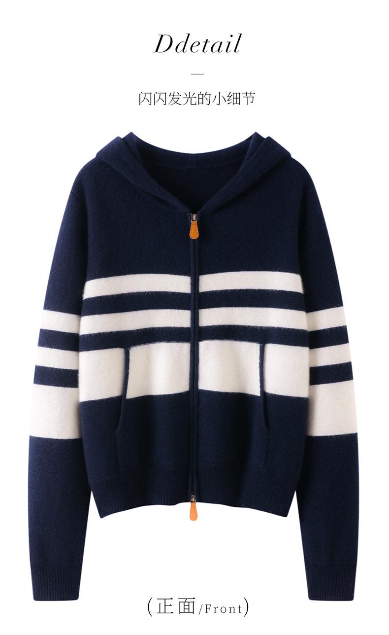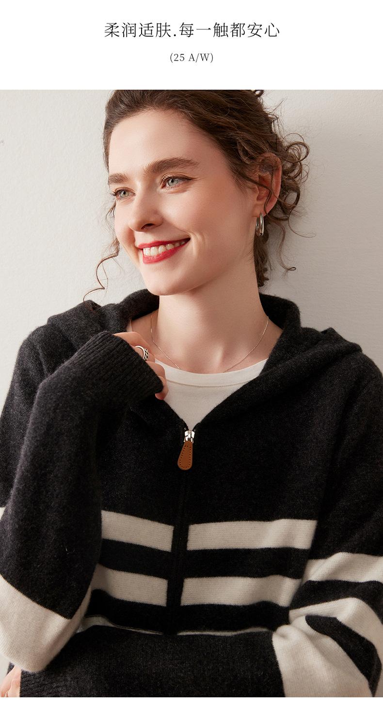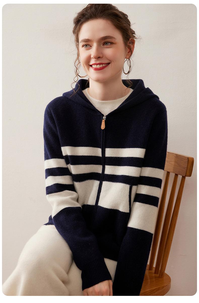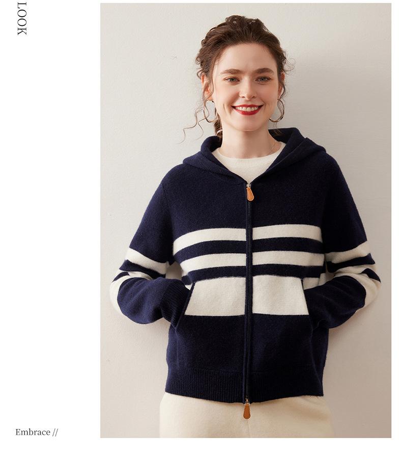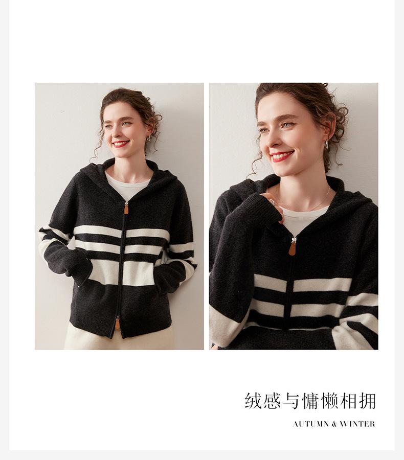 Moda Raya Otoño e Invierno Nuevo Sudadera con Capucha con Cremallera Suéter de Cachemira Cárdigan de Manga Larga para Mujer Top Versátil Estilo Súper Grueso Suave y Ceroso