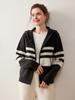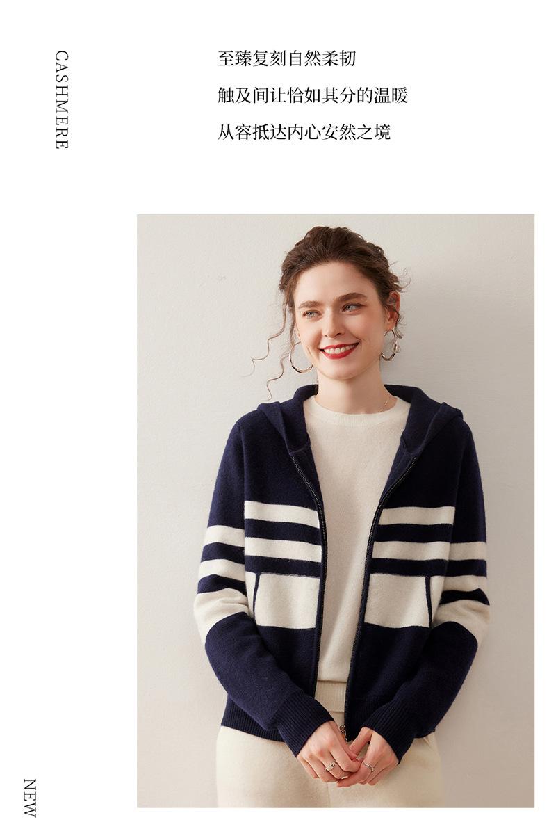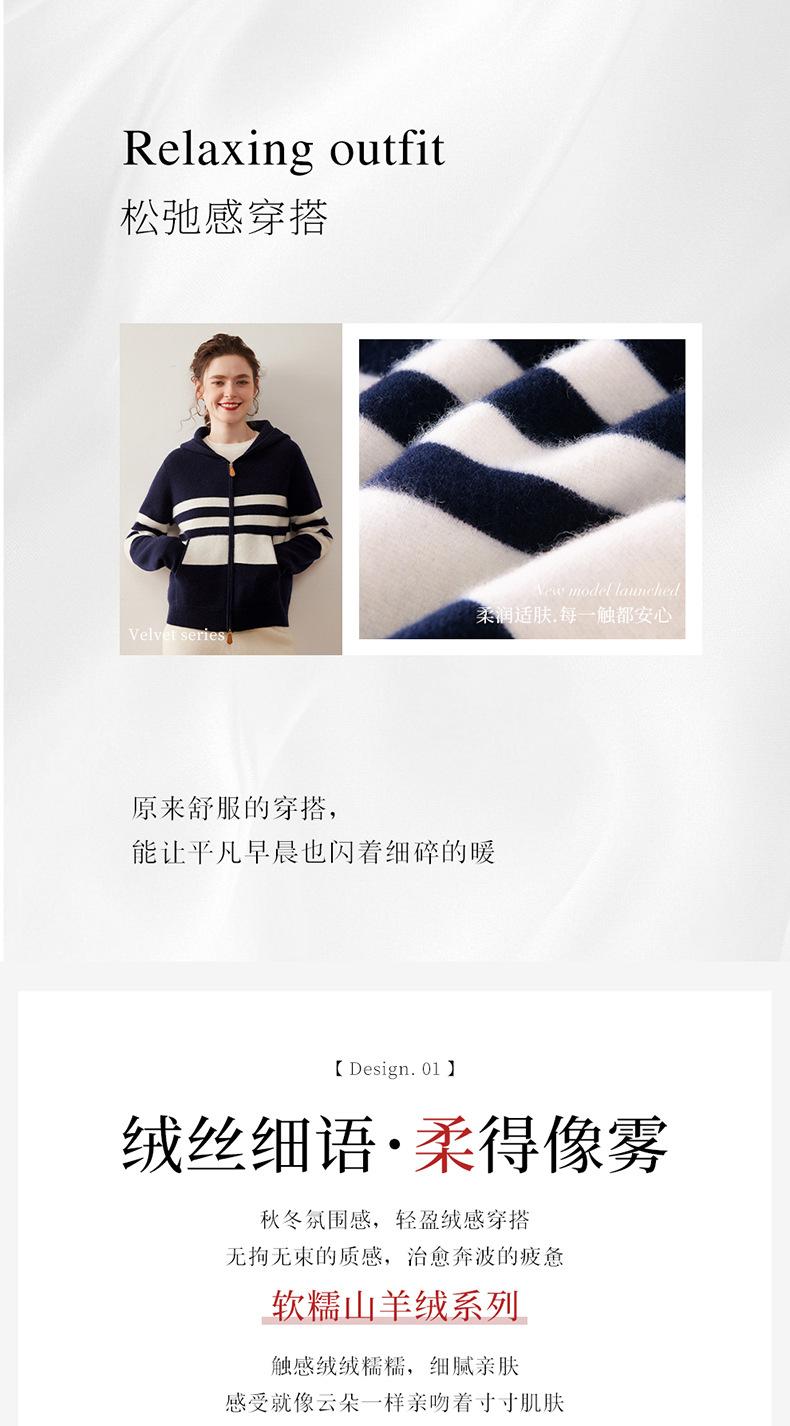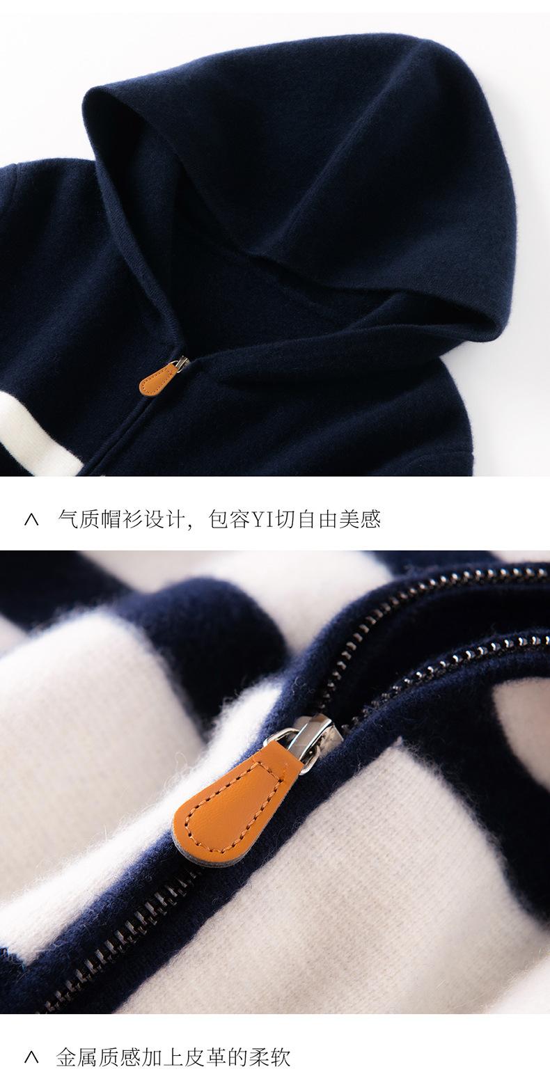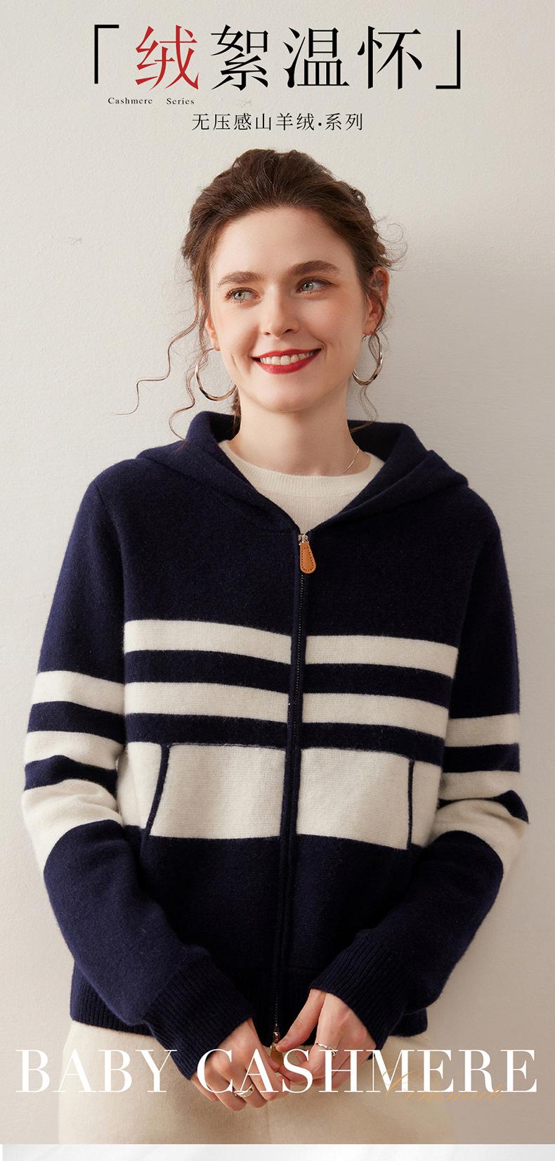 Moda Raya Otoño e Invierno Nuevo Sudadera con Capucha con Cremallera Suéter de Cachemira Cárdigan de Manga Larga para Mujer Top Versátil Estilo Súper Grueso Suave y Ceroso