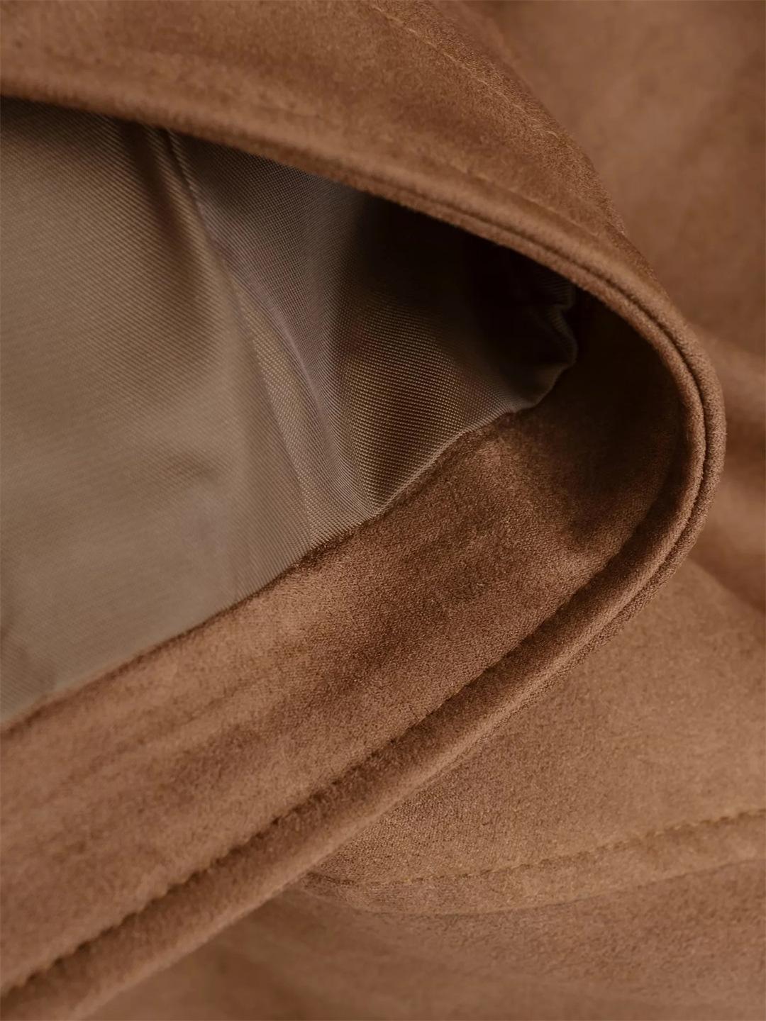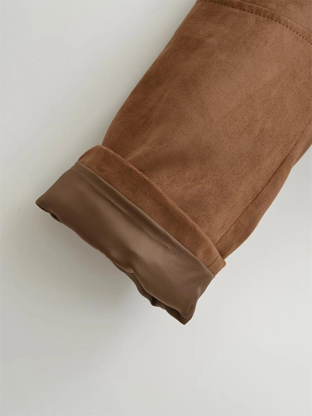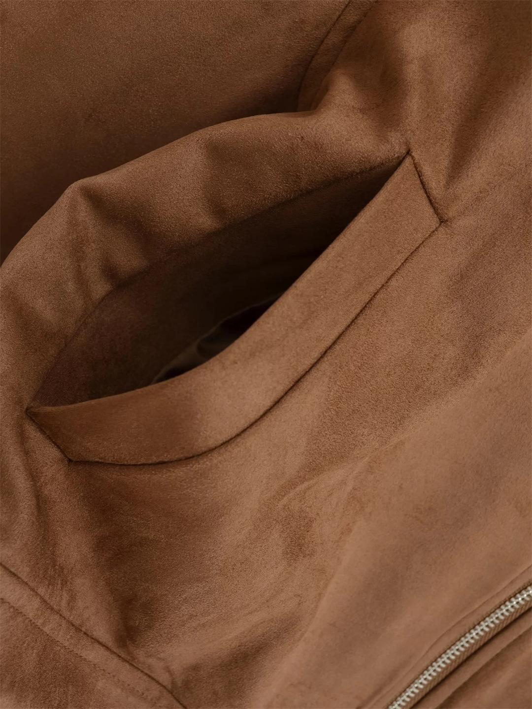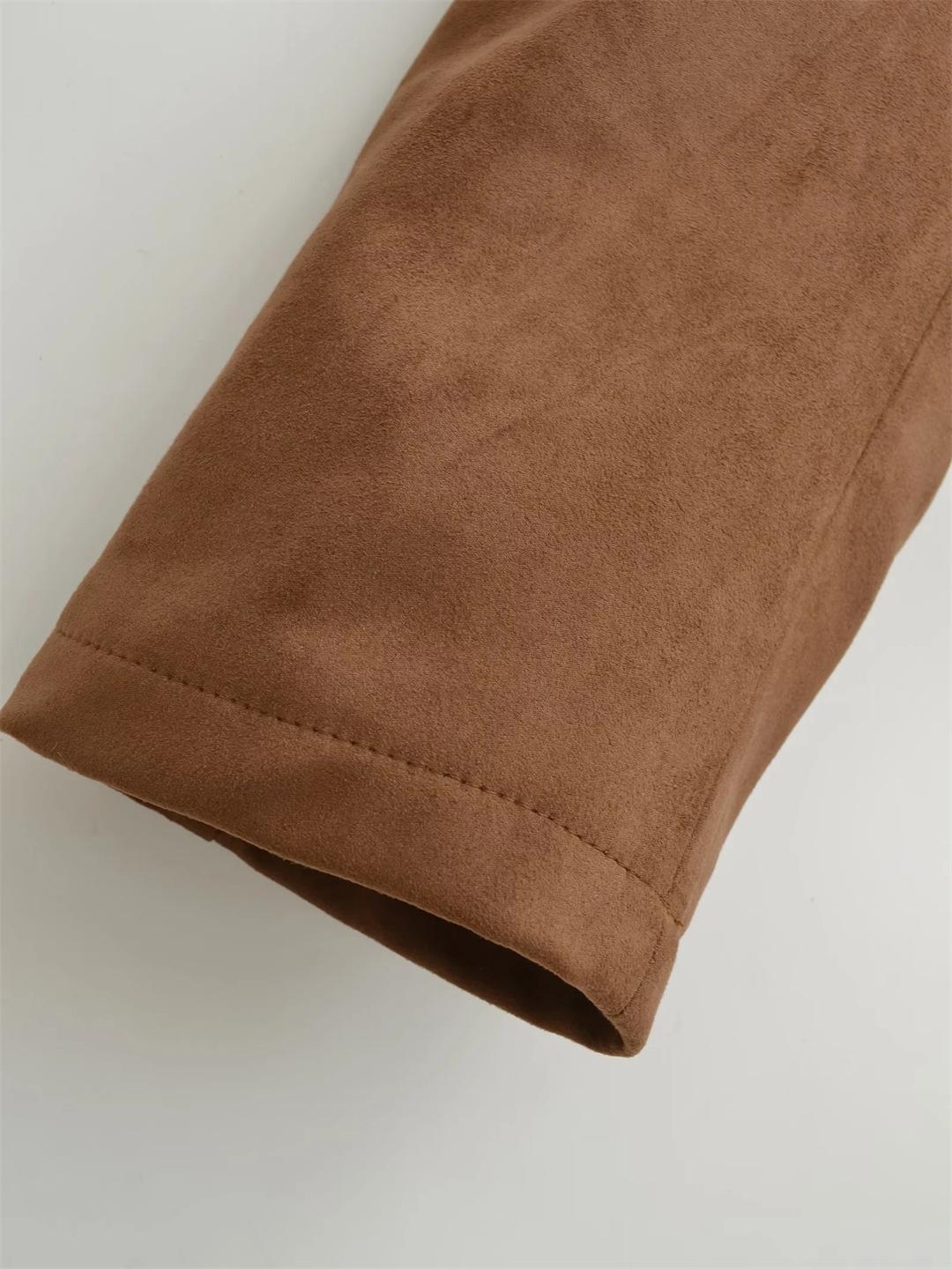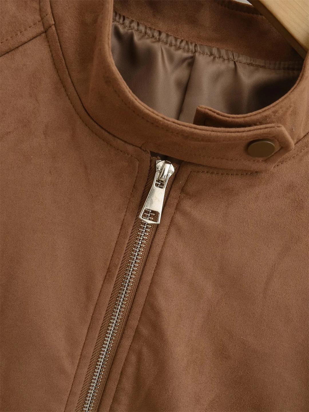 Chaqueta Retro Corta de Gamuza Maillard para Mujer Otoño Nueva Cuello Alto Estilo Urbano Chaqueta con Bolsillos Cárdigan Top