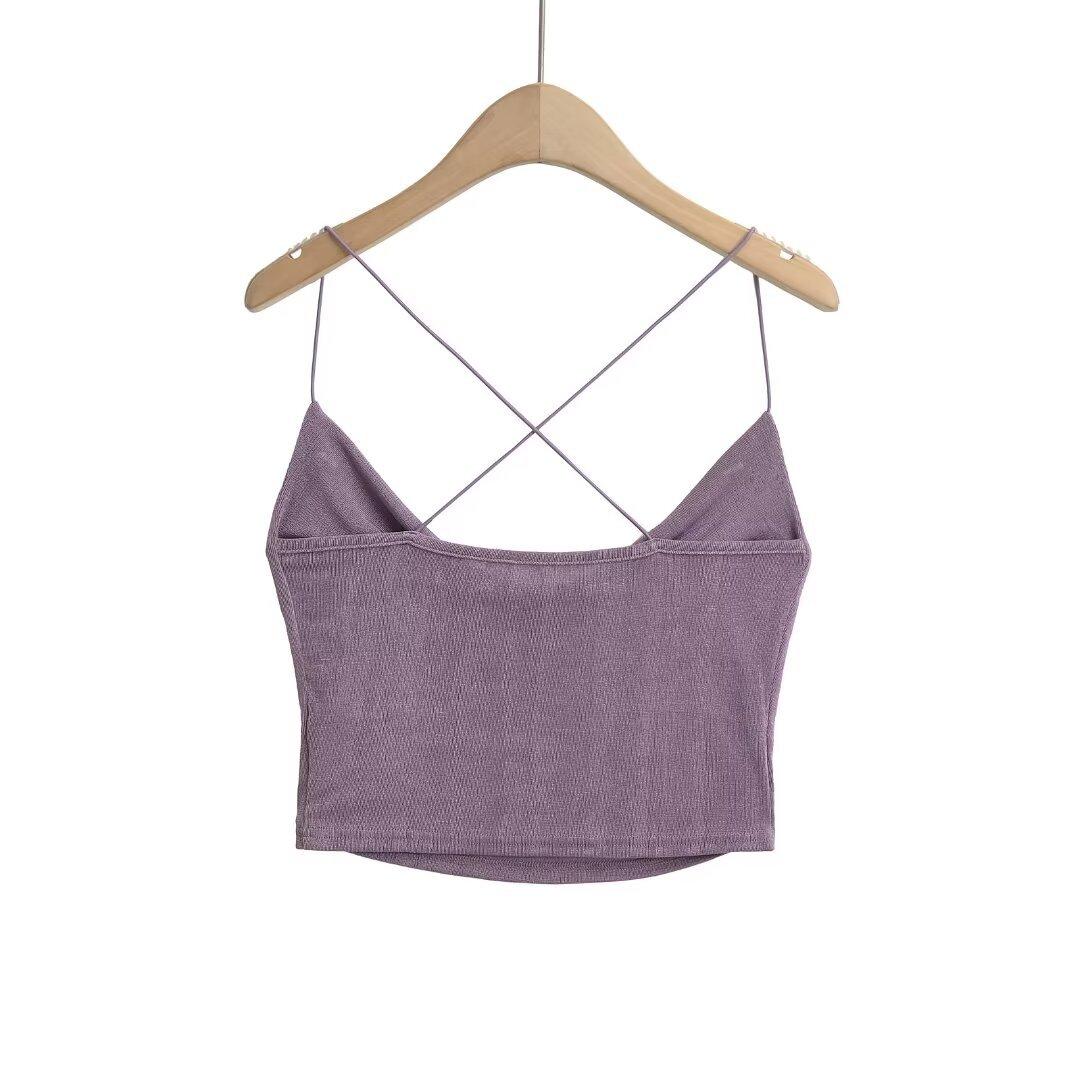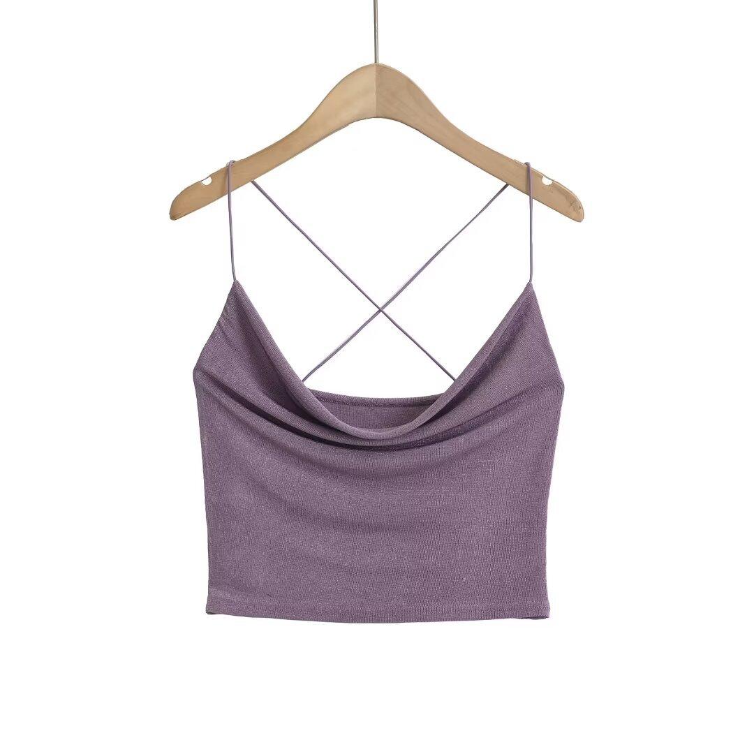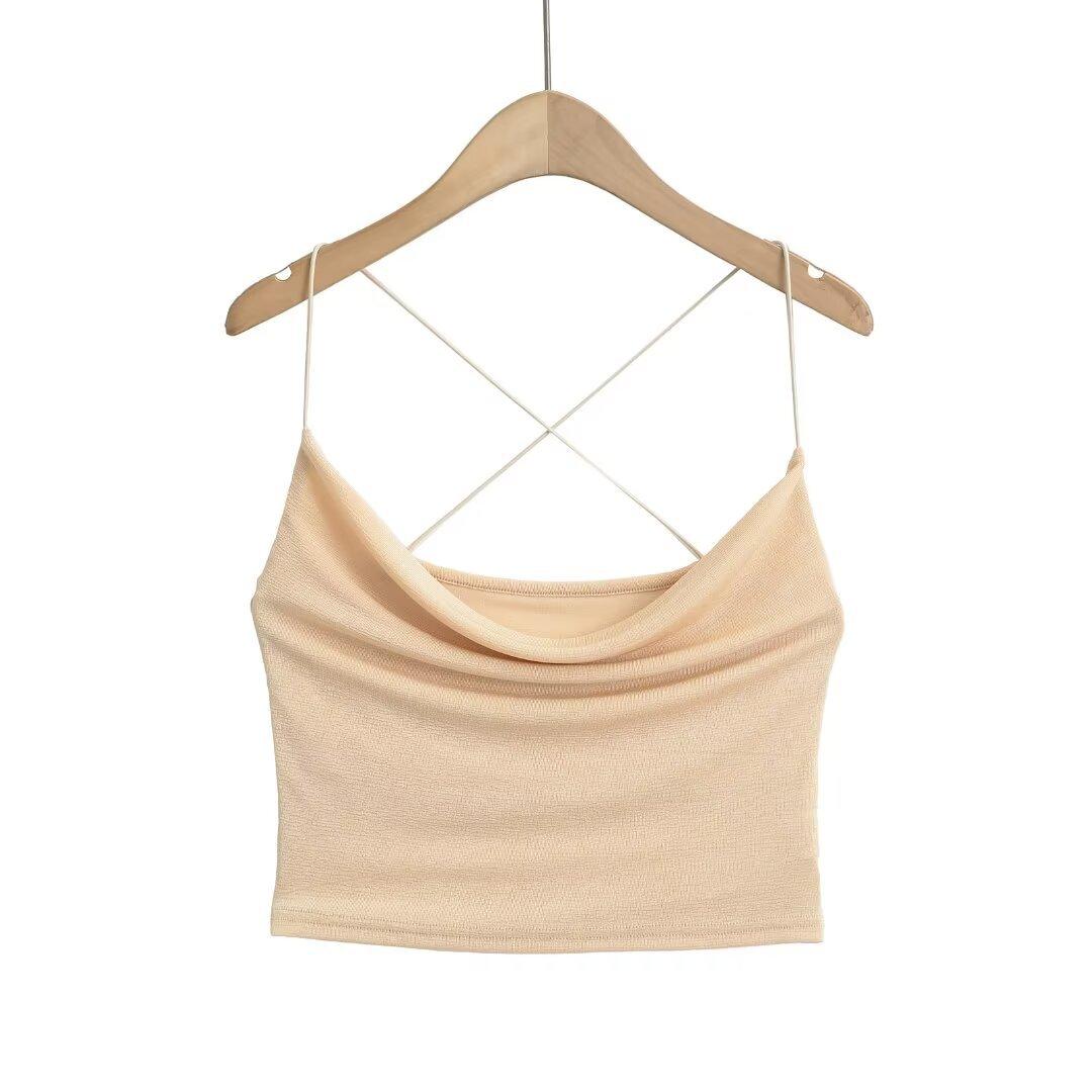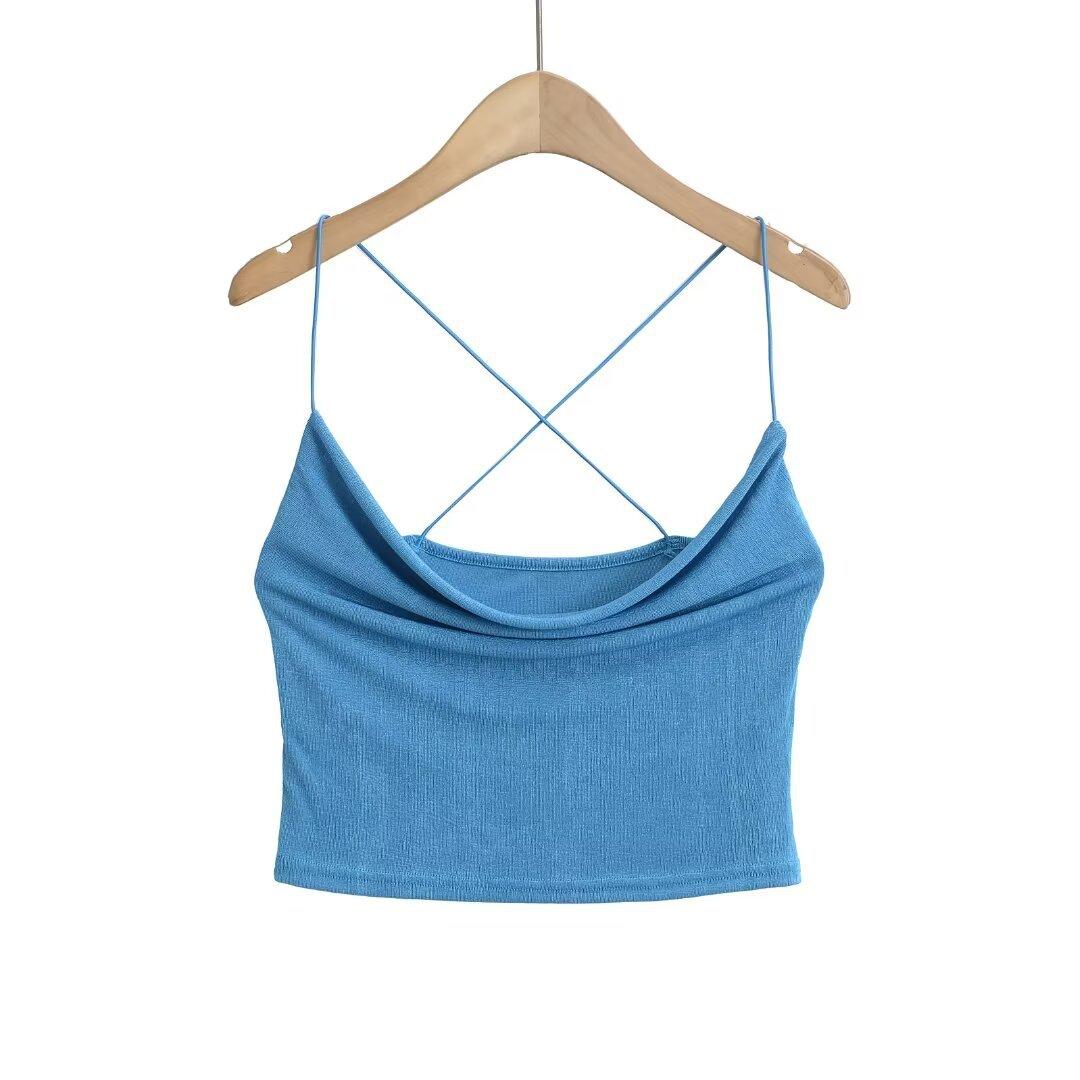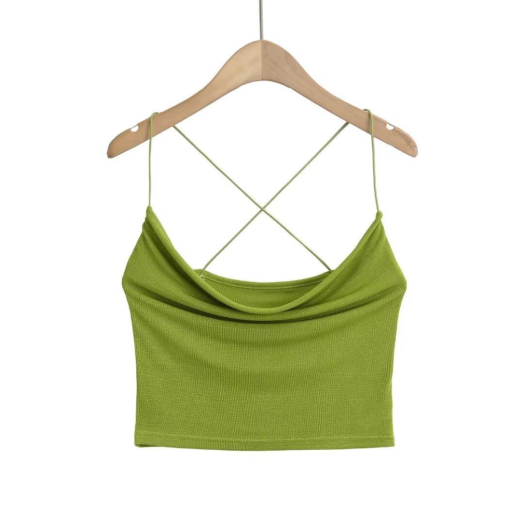 Estilo Americano Deseo Puro Sexy Chica Caliente Top Sling con Cuello Caído Verano para Mujer Pequeño Verde Blanco Ombliguera Top Sling