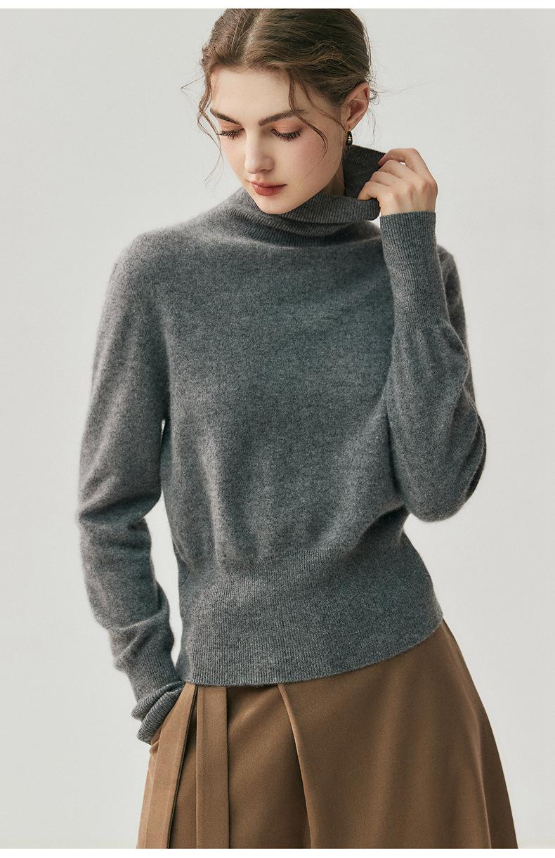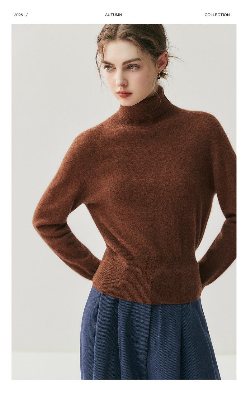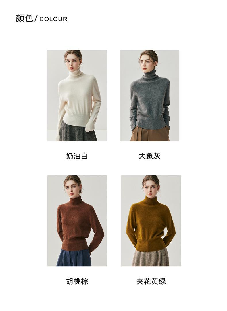 Suéter de Cachemira Simple de Cuello Alto para Mujer Nuevo Top Tejido Cálido de Color Sólido Suéter Regular Jersey Base