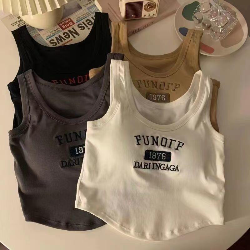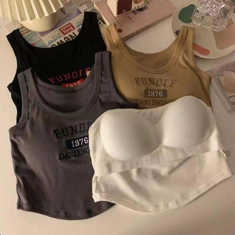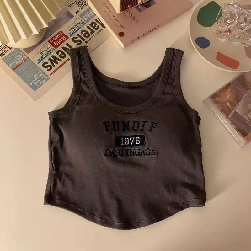 Camisola Bordada de Nuevo Estilo con Almohadilla en el Pecho para Mujer Verano Nicho Diseño Sensación Ropa Exterior Interior Slim Chaleco sin Mangas para Mujer