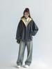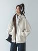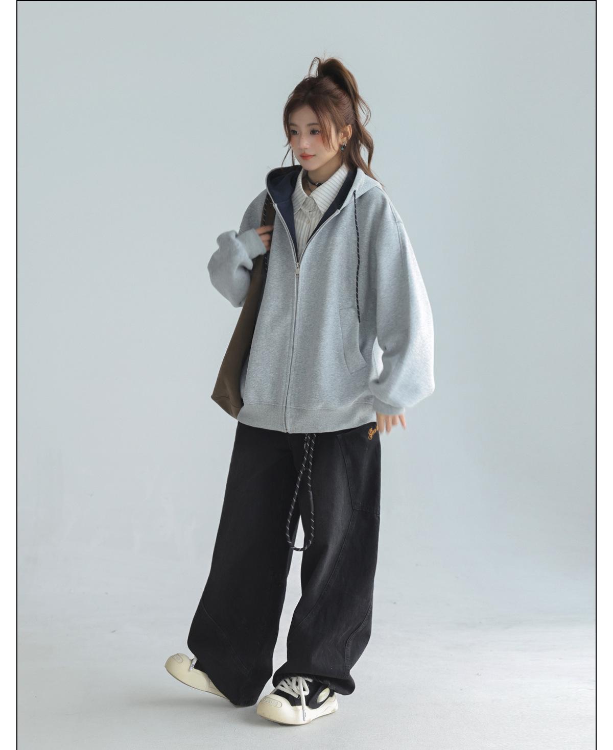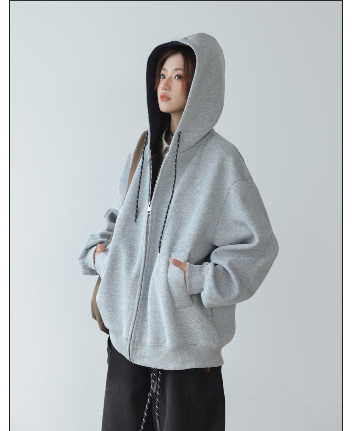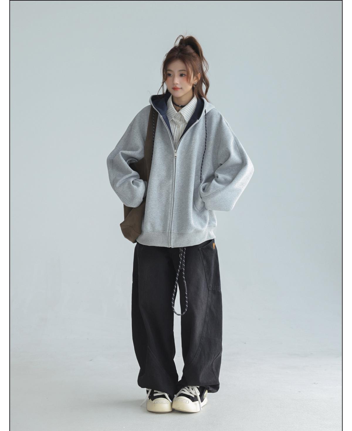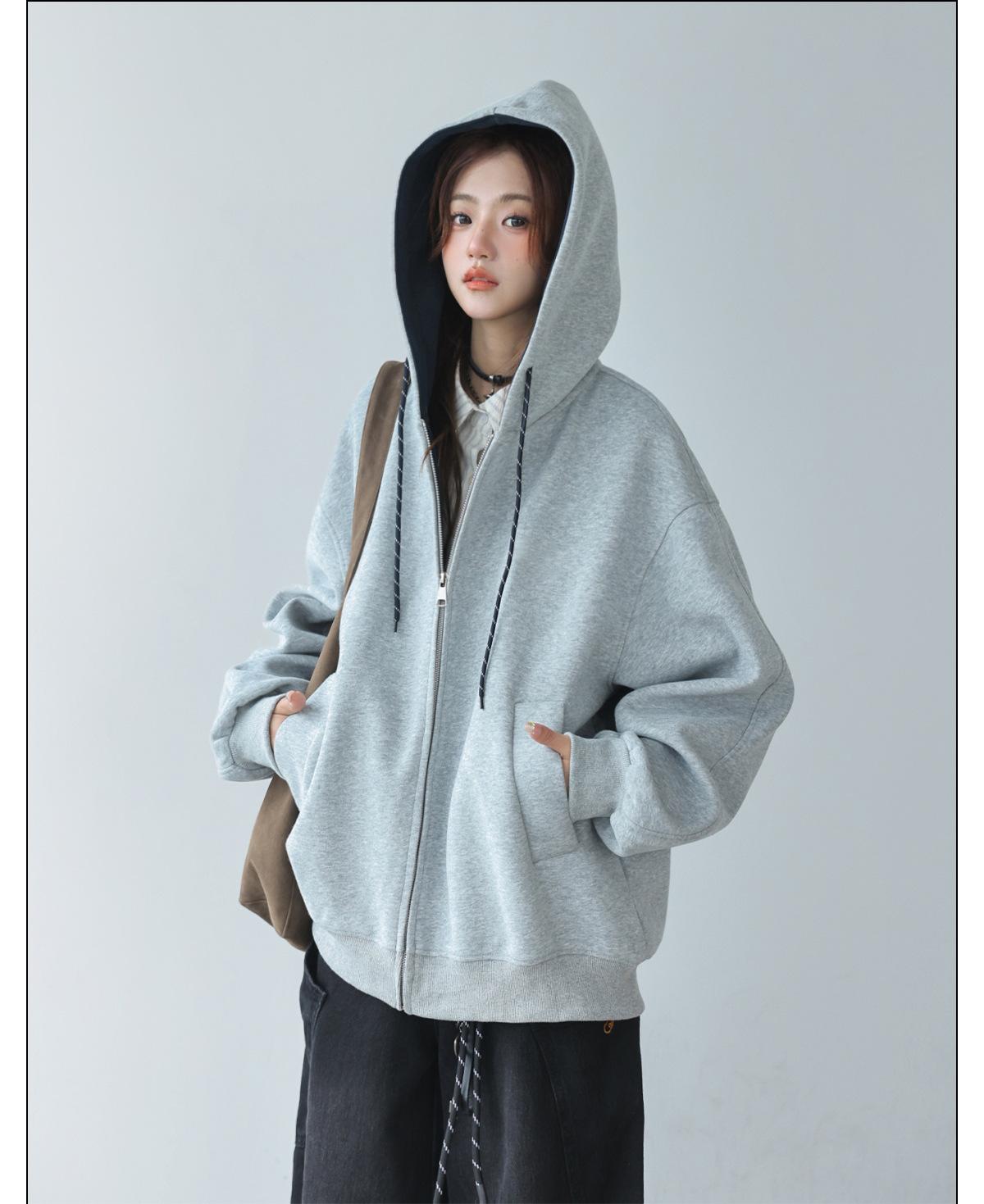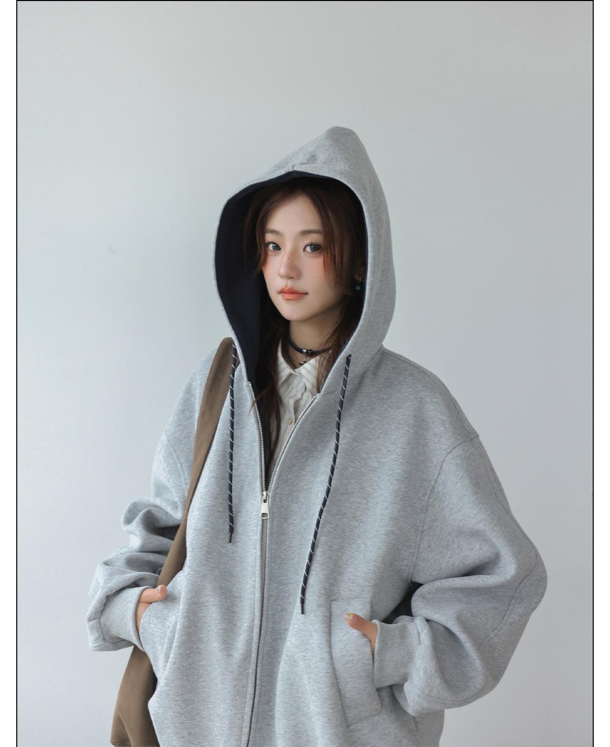 Abrigo Holgado Americano de Otoño e Invierno para Mujer 2025 Nuevo Popular Versátil Bloque de Color Cárdigan con Capucha Sudadera Gruesa A6461