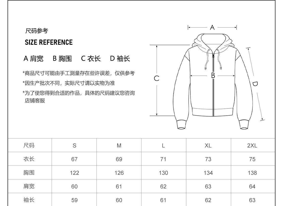 M (recommended 80-110 catties), L (recommended 110-130 catties), XL(suggested 130-160 jin)