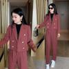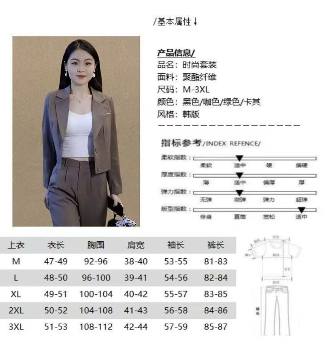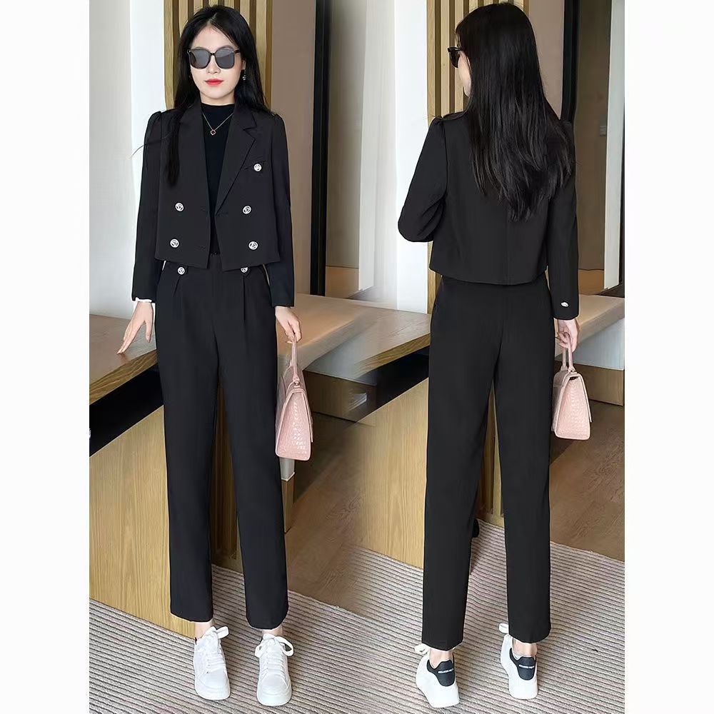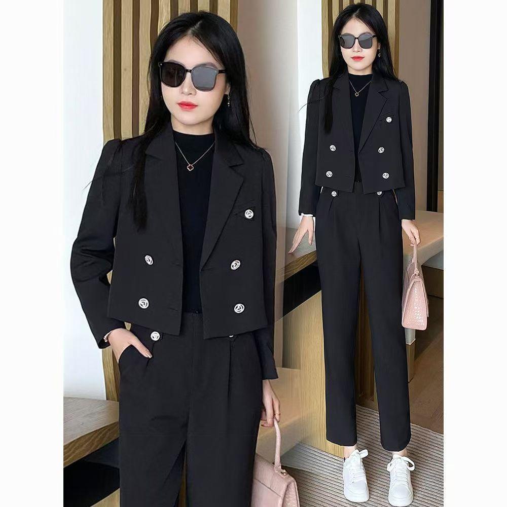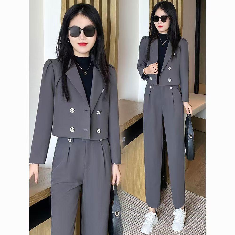 2025 Traje Blazer Corto Casual de Color Sólido para Mujer Petite Primavera Otoño Blazer Cruzado Pantalones Recortados Rectos de Cintura Alta