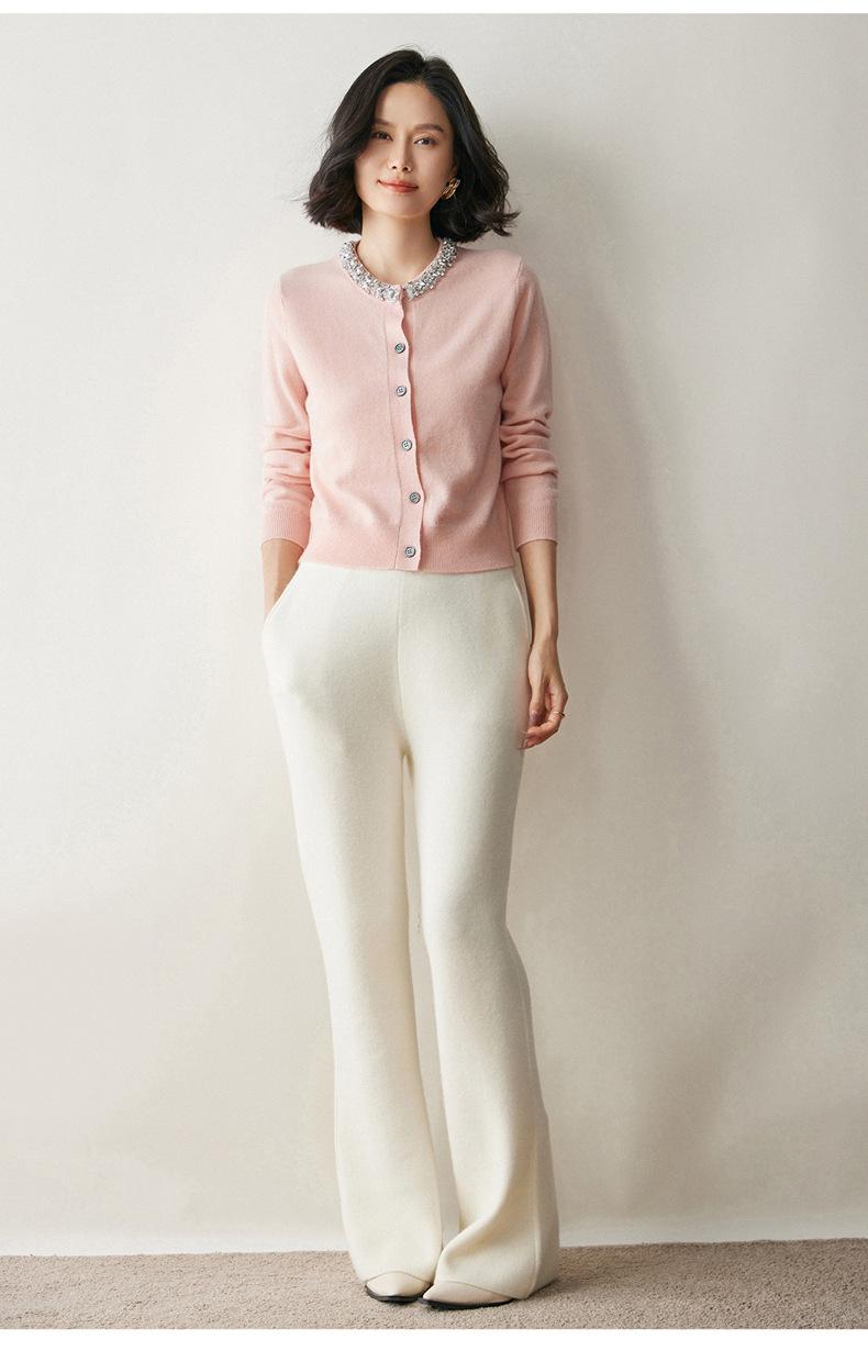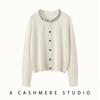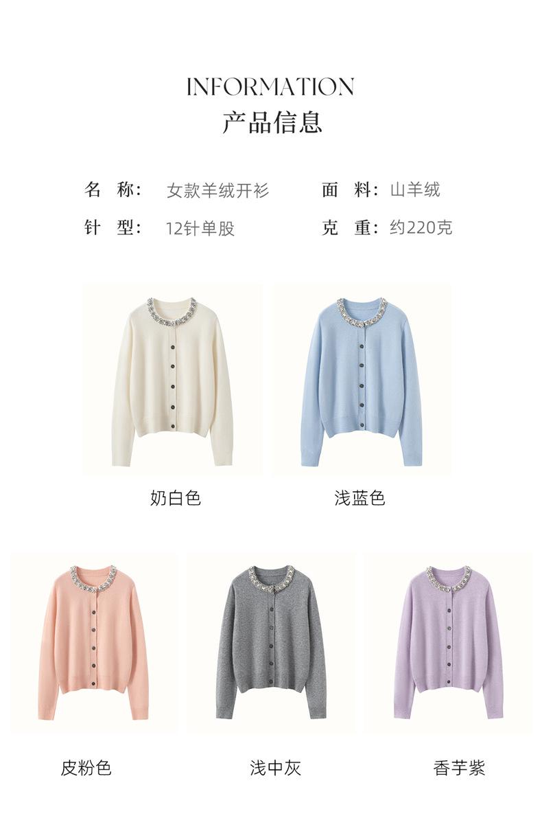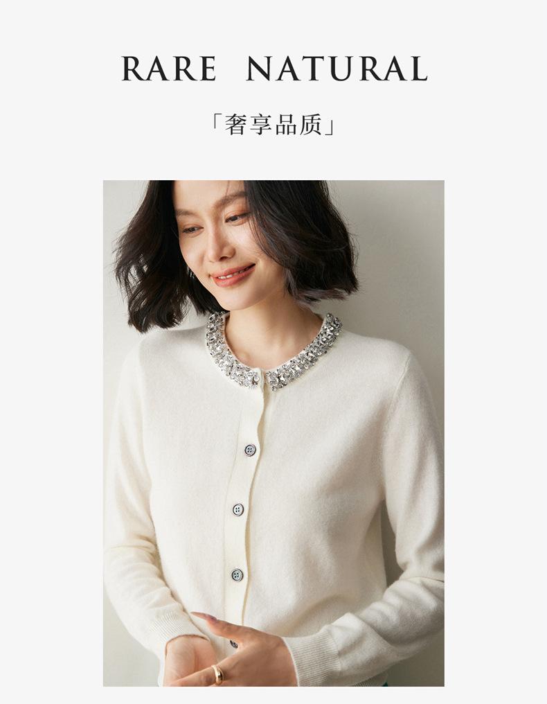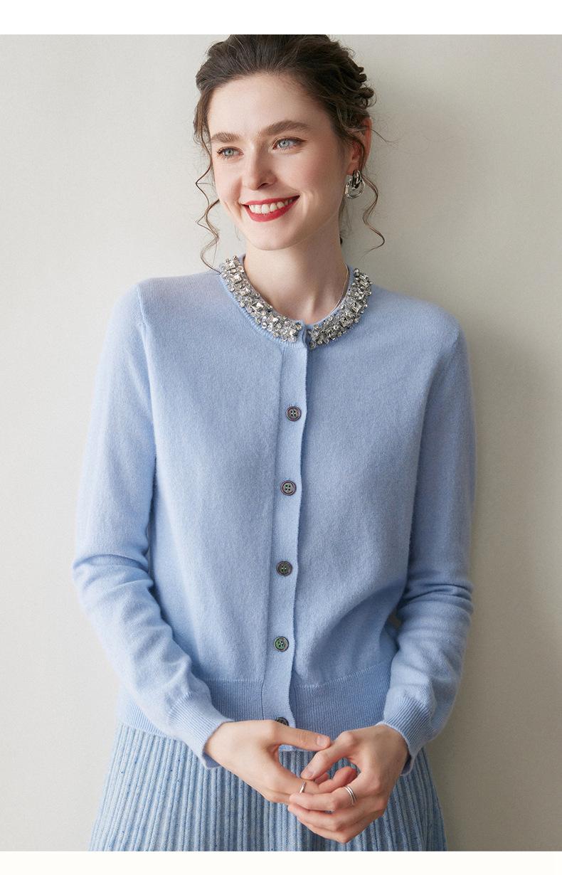 Suéter de Cachemira Otoño 2025 Nuevo Cuello Redondo Cárdigan Temperamento para Mujer Suéter Tejido con Incrustaciones de Pedrería Abrigo de Punto Holgado Top