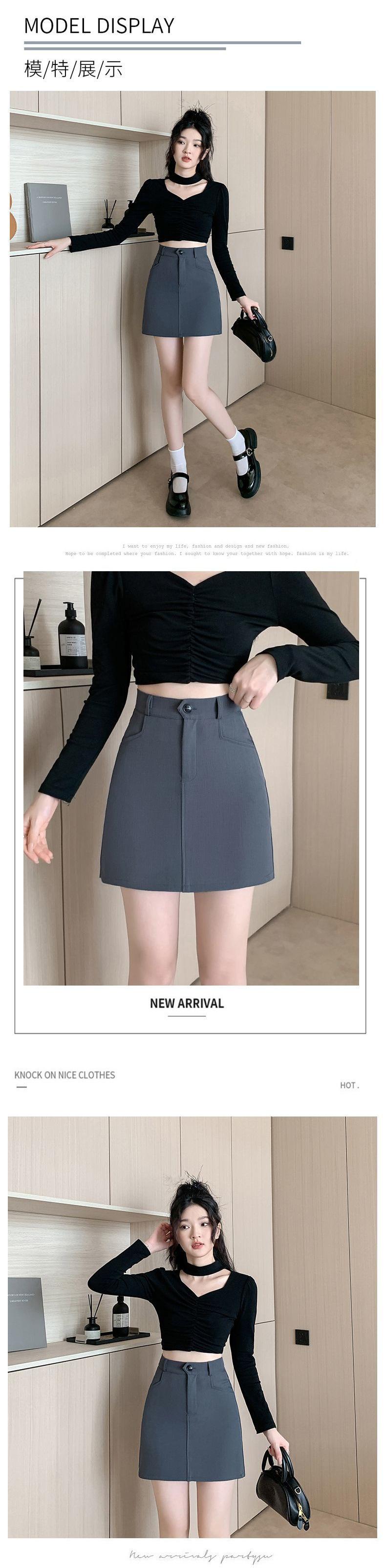 Traje Gris Nueva Falda Corta Anti-Exposición Cintura Alta Adelgazante Primavera y Verano Falda de Chica Caliente Falda Petite Negro