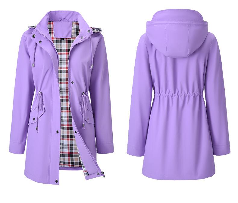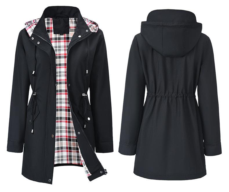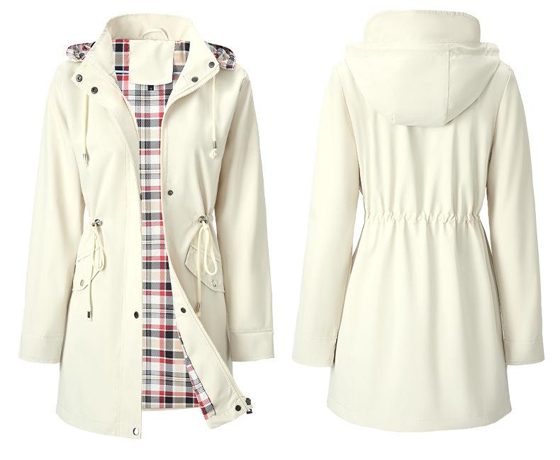 Abrigo trench a cuadros forrado con capucha y cordón en la cintura para mujer, nuevo para otoño e invierno 2025, transfronterizo europeo y americano, Amazon