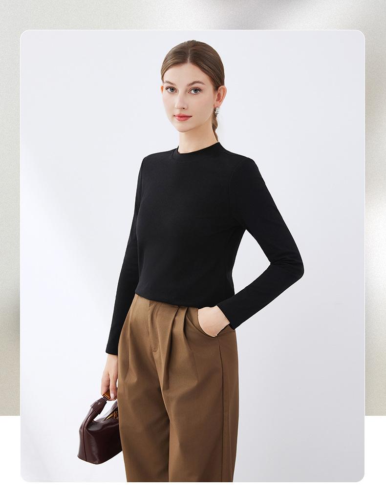 2025 Principios de Otoño Coreano Ajustado Cuello Alto Manga Larga Camiseta Moderna y Adelgazante Capa Interior Top de Temperamento Estilo Caliente para Mujer