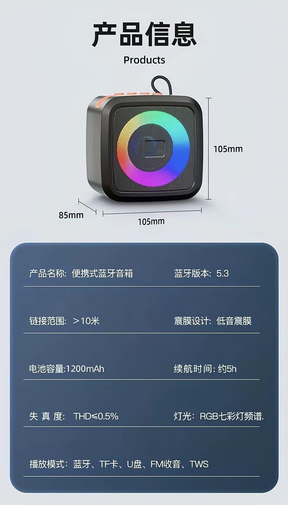 Altavoz Bluetooth X911 Audio Bluetooth Inalámbrico Altavoz Portátil para Exteriores Luz de Respiración Subwoofer