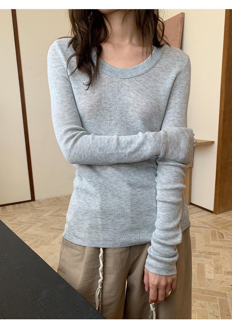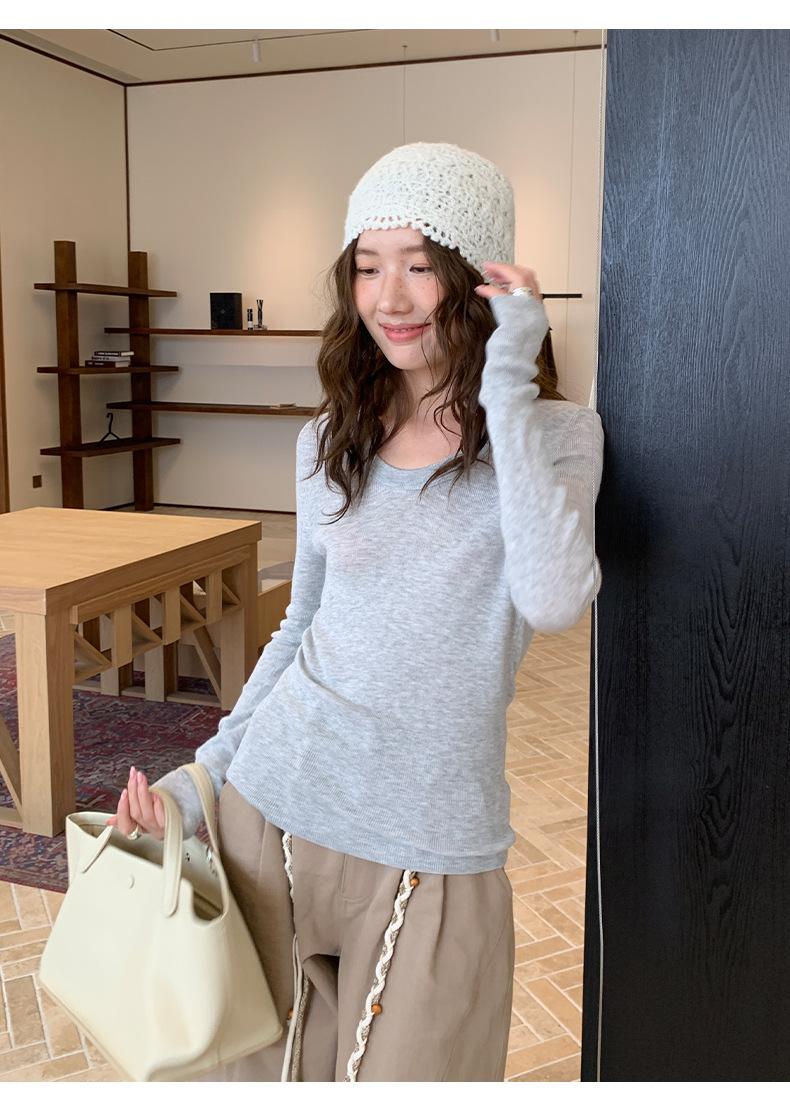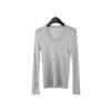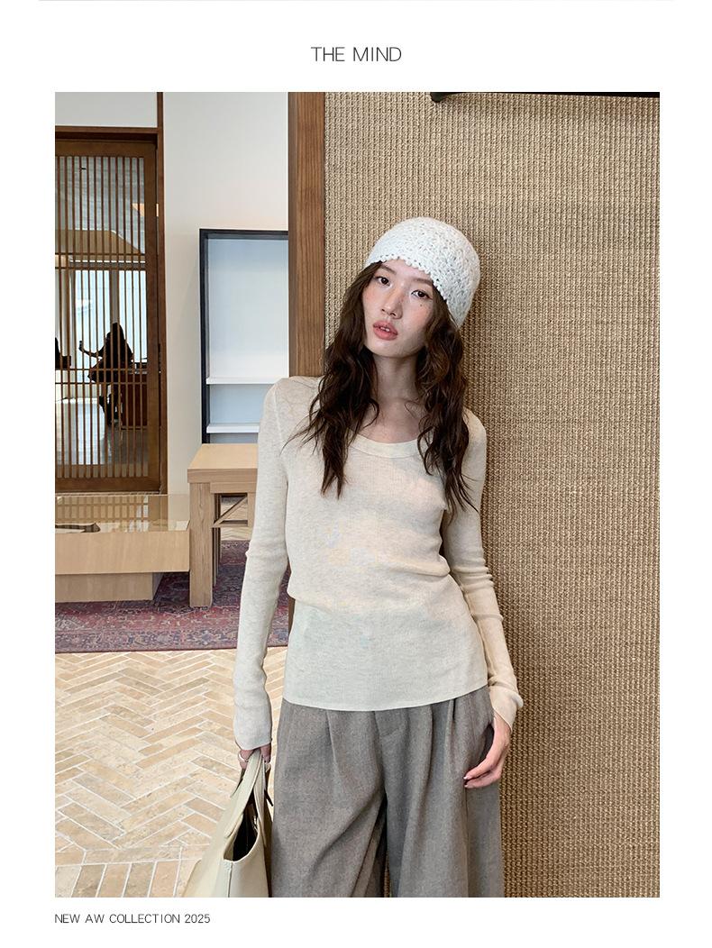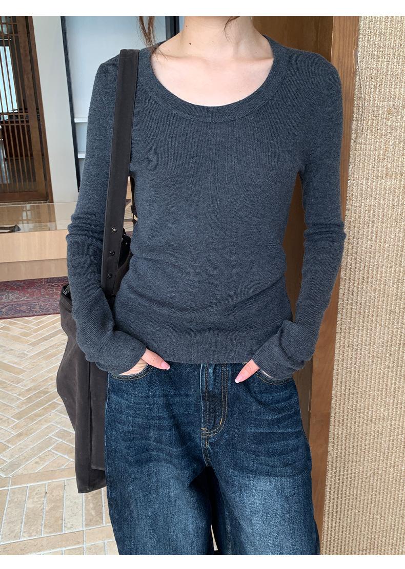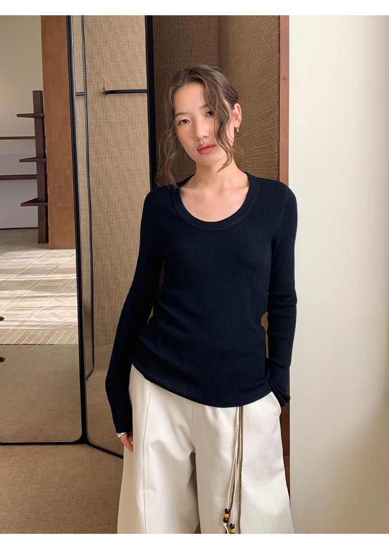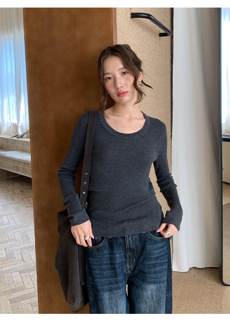 Playera Básica de Color Sólido de Lana de Seis Metros de Guangzhou para Mujer Otoño/Invierno 2025 Versátil Top de Punto de Manga Larga T5701Q