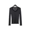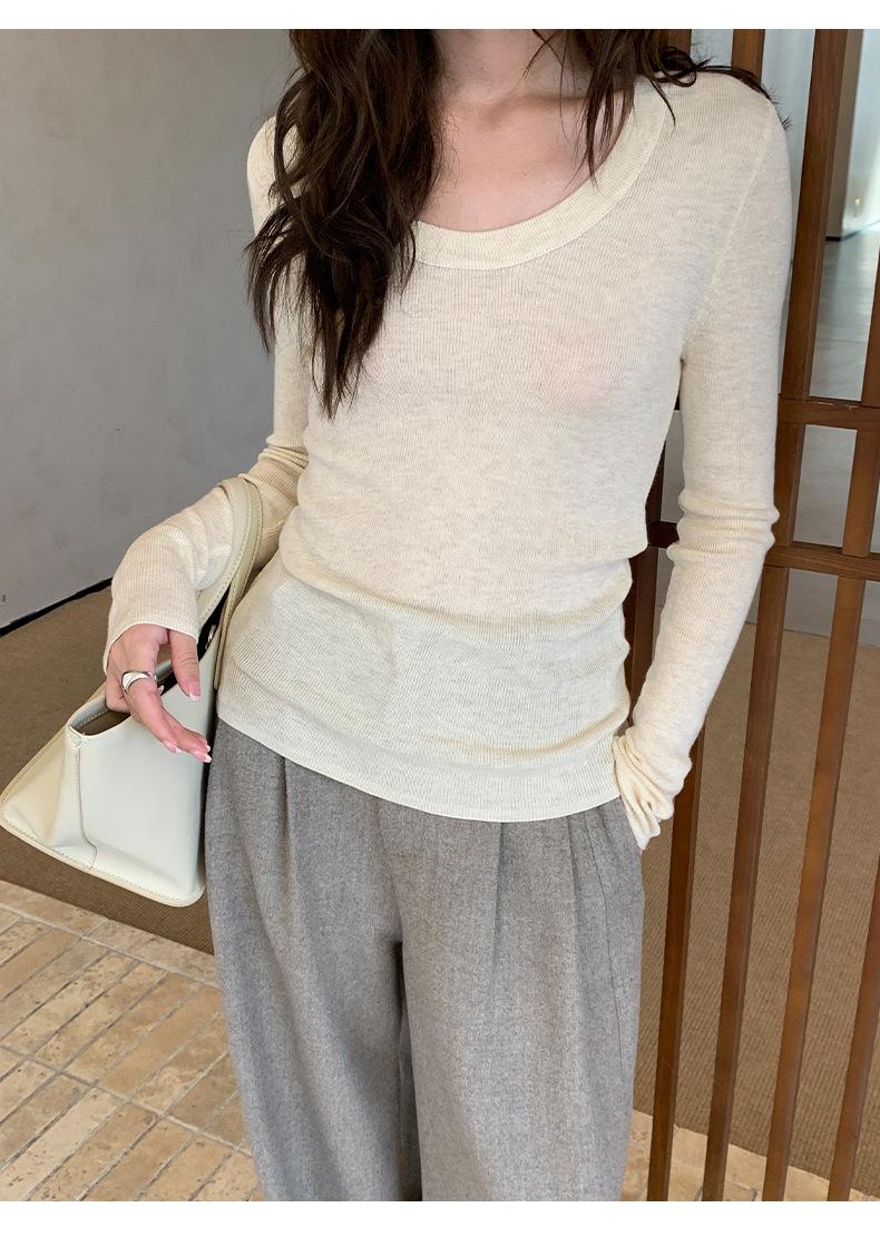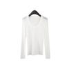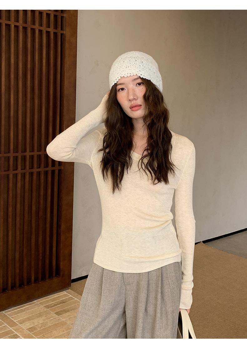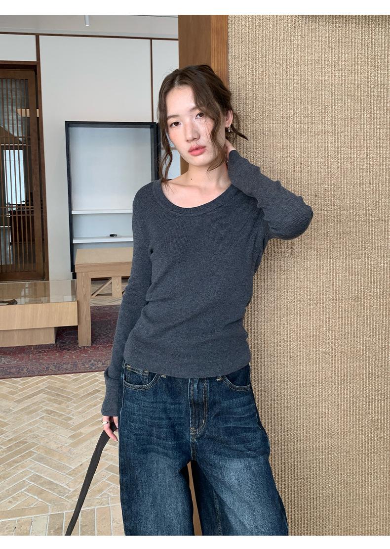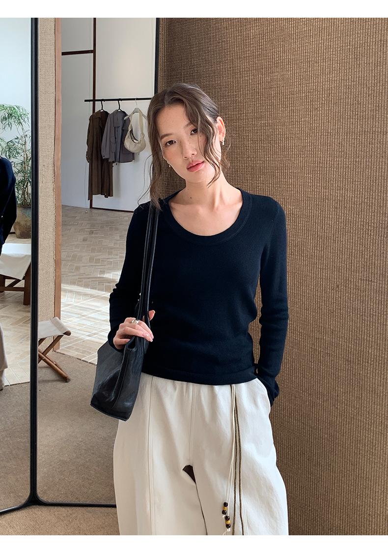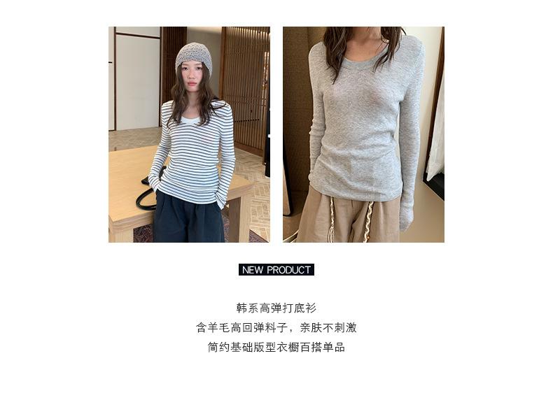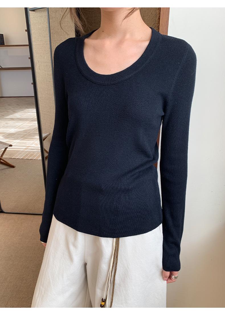 Playera Básica de Color Sólido de Lana de Seis Metros de Guangzhou para Mujer Otoño/Invierno 2025 Versátil Top de Punto de Manga Larga T5701Q