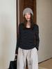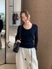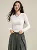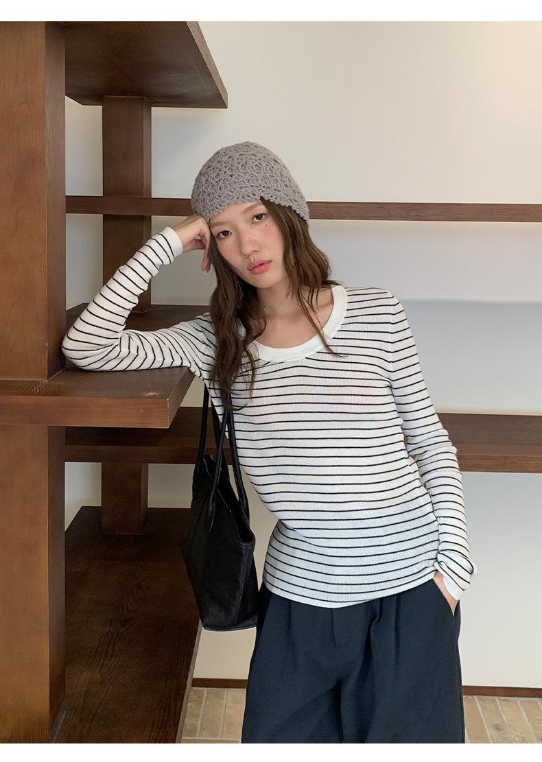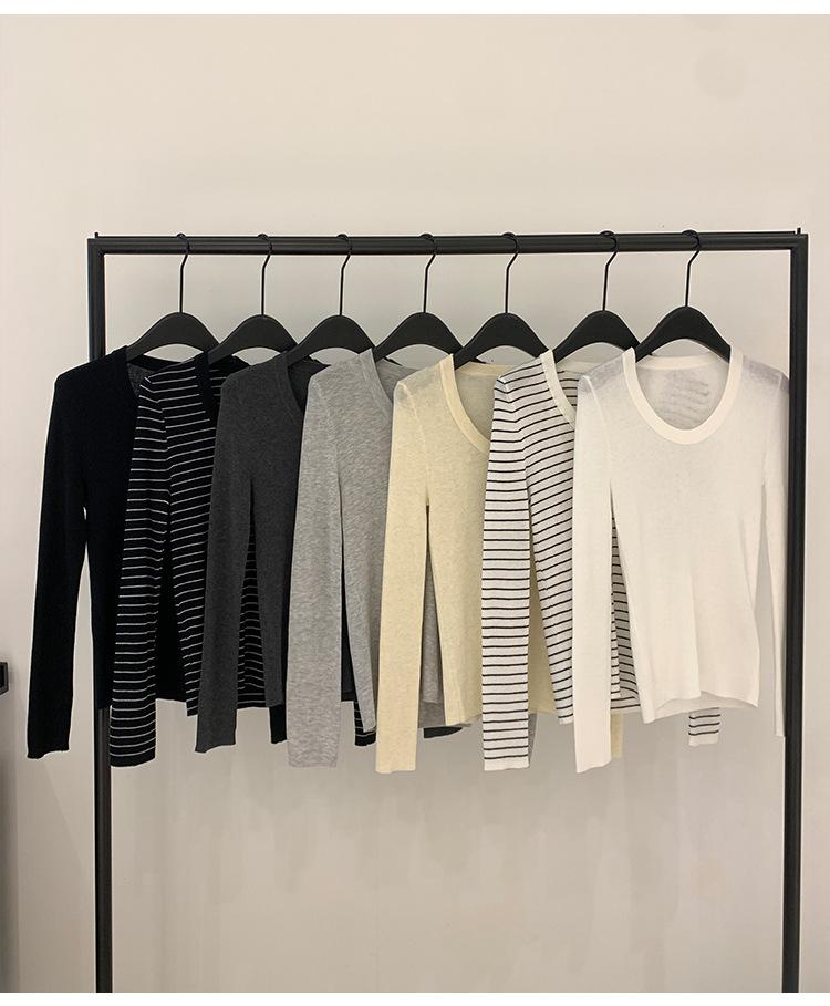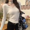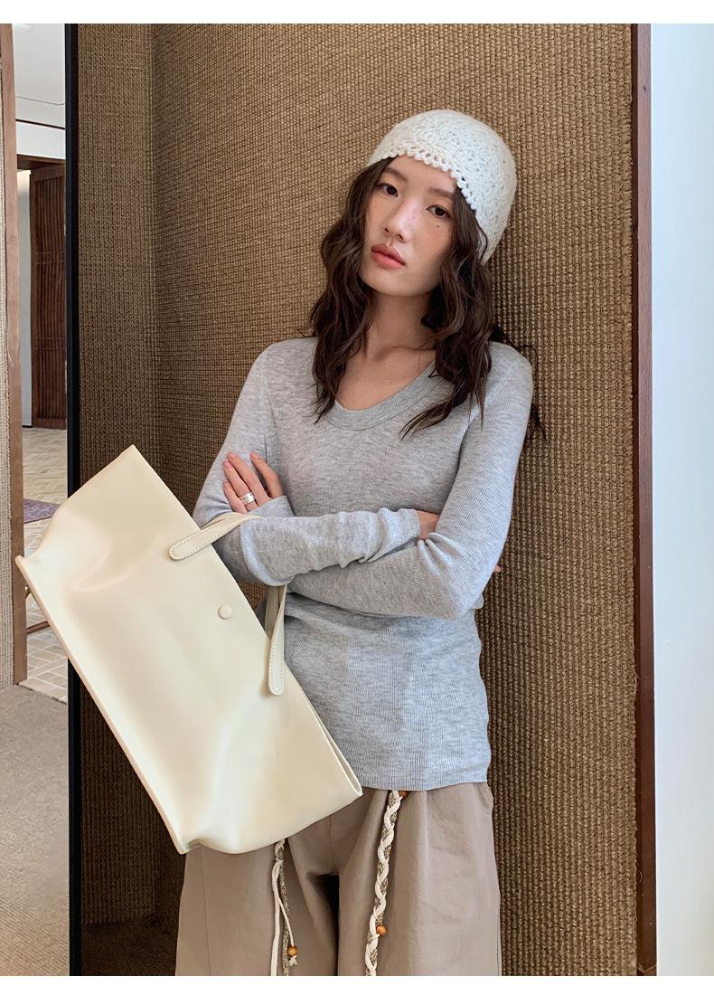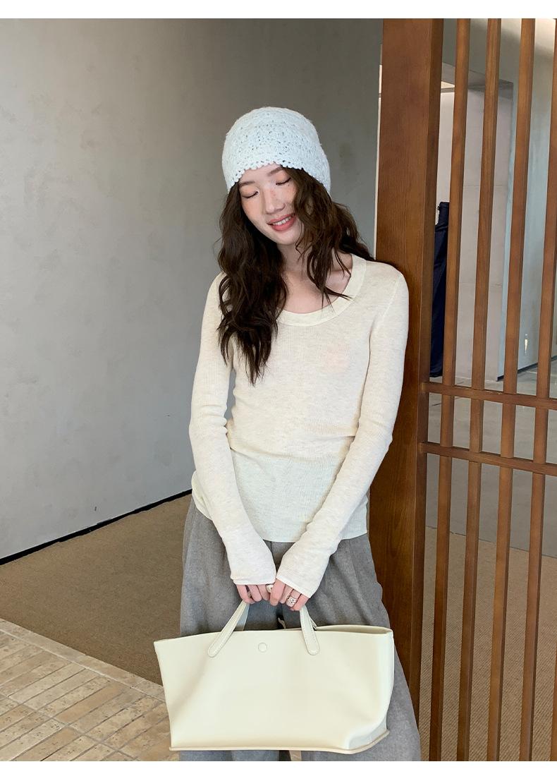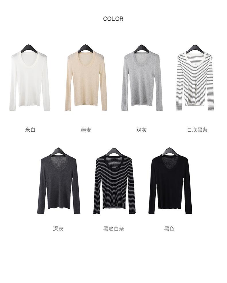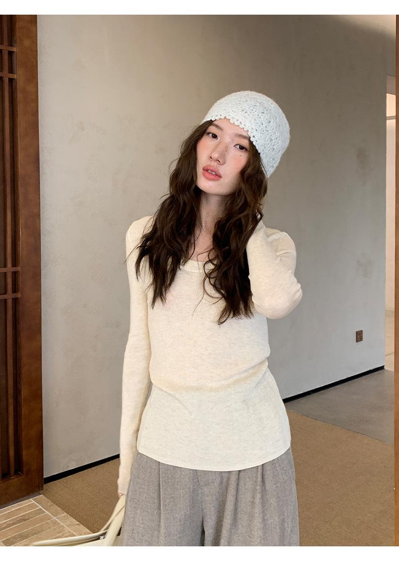 Playera Básica de Color Sólido de Lana de Seis Metros de Guangzhou para Mujer Otoño/Invierno 2025 Versátil Top de Punto de Manga Larga T5701Q