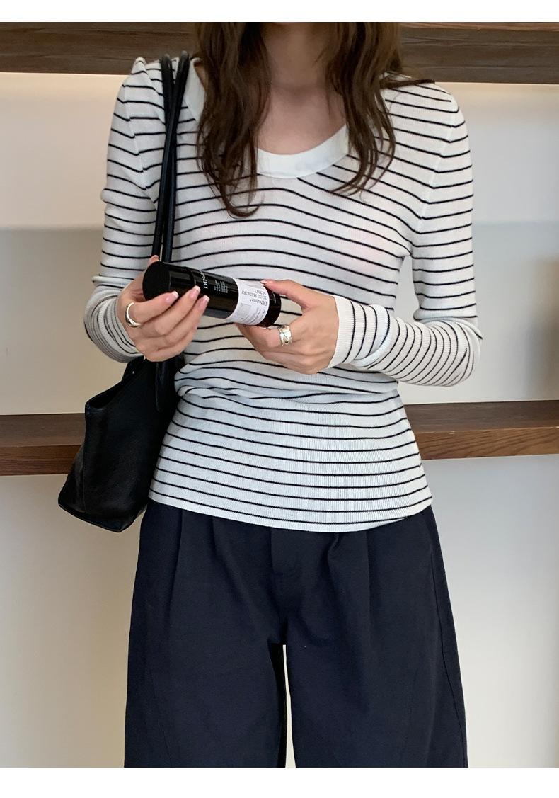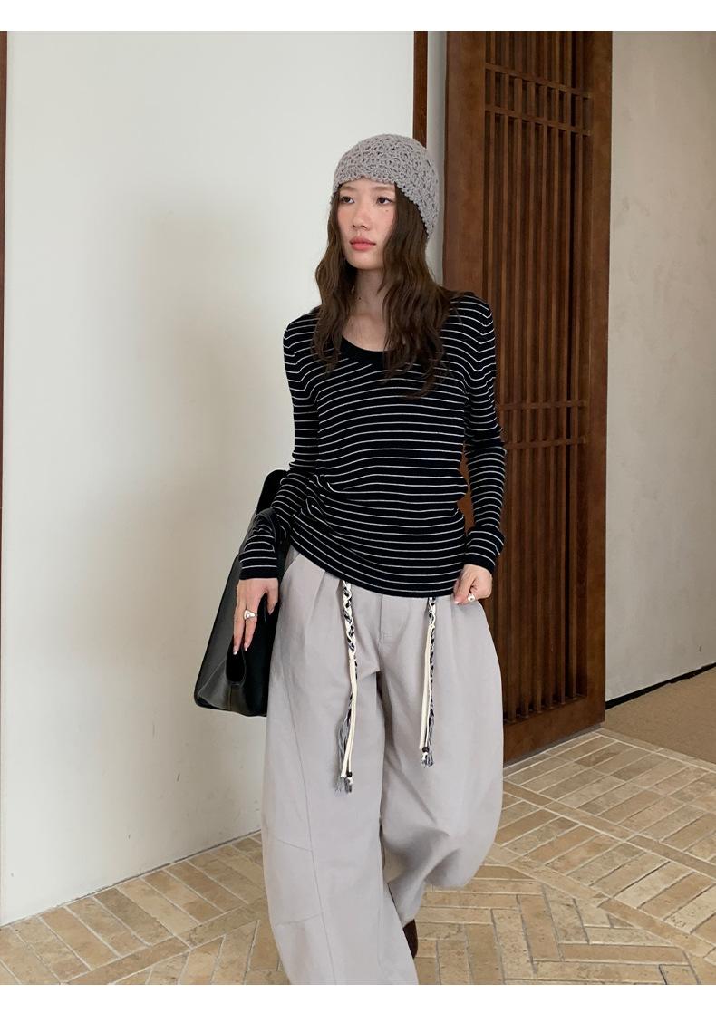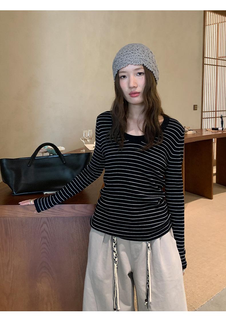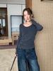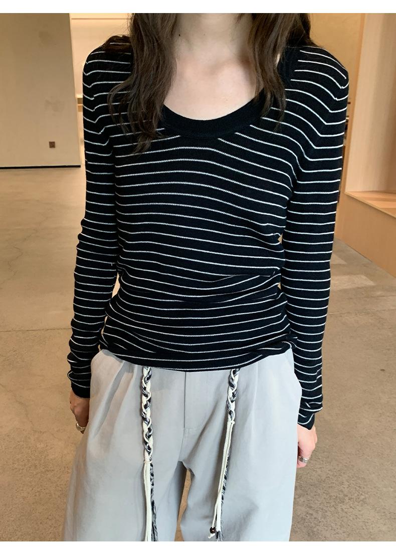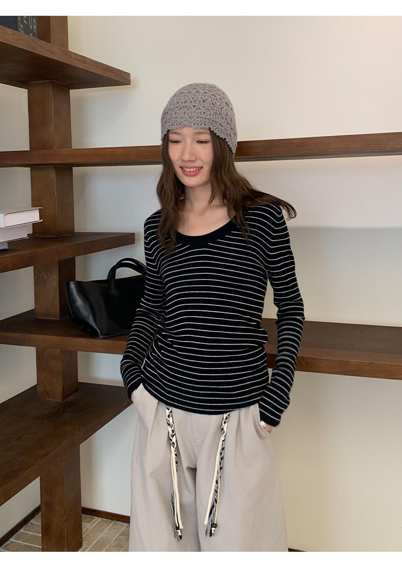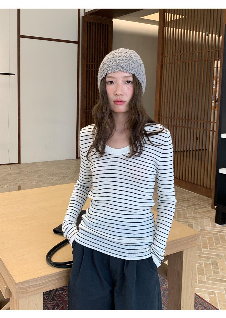 Playera Básica de Color Sólido de Lana de Seis Metros de Guangzhou para Mujer Otoño/Invierno 2025 Versátil Top de Punto de Manga Larga T5701Q