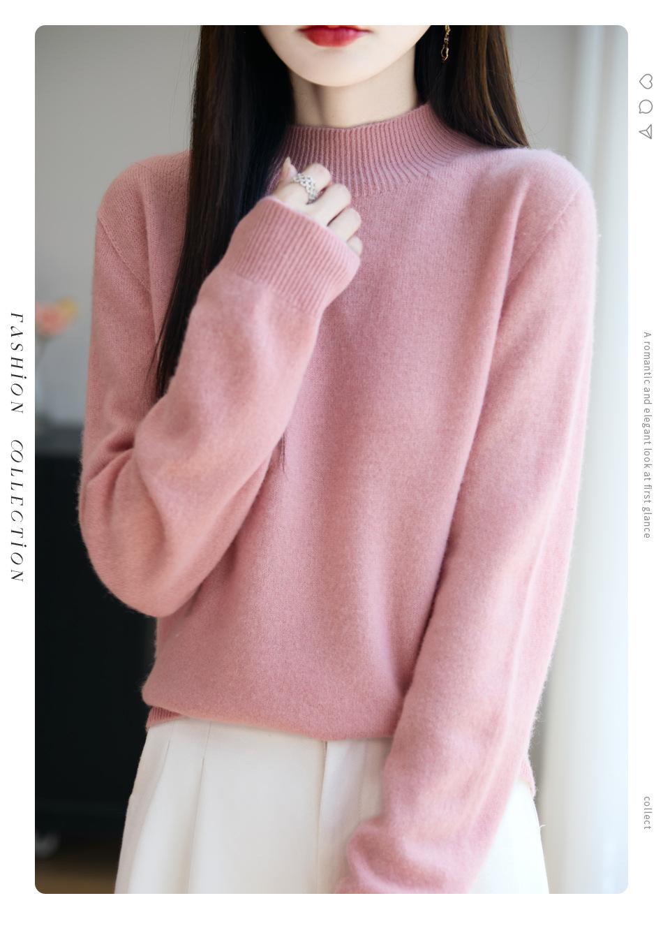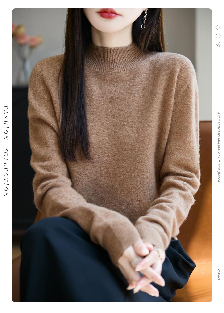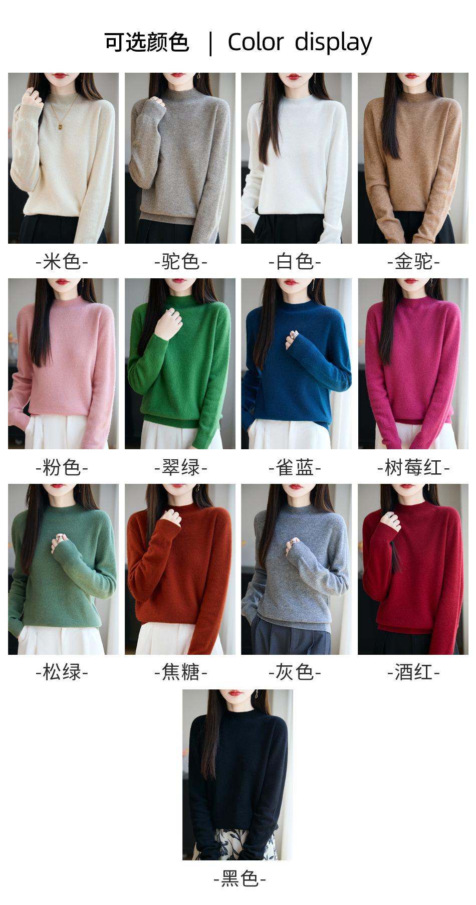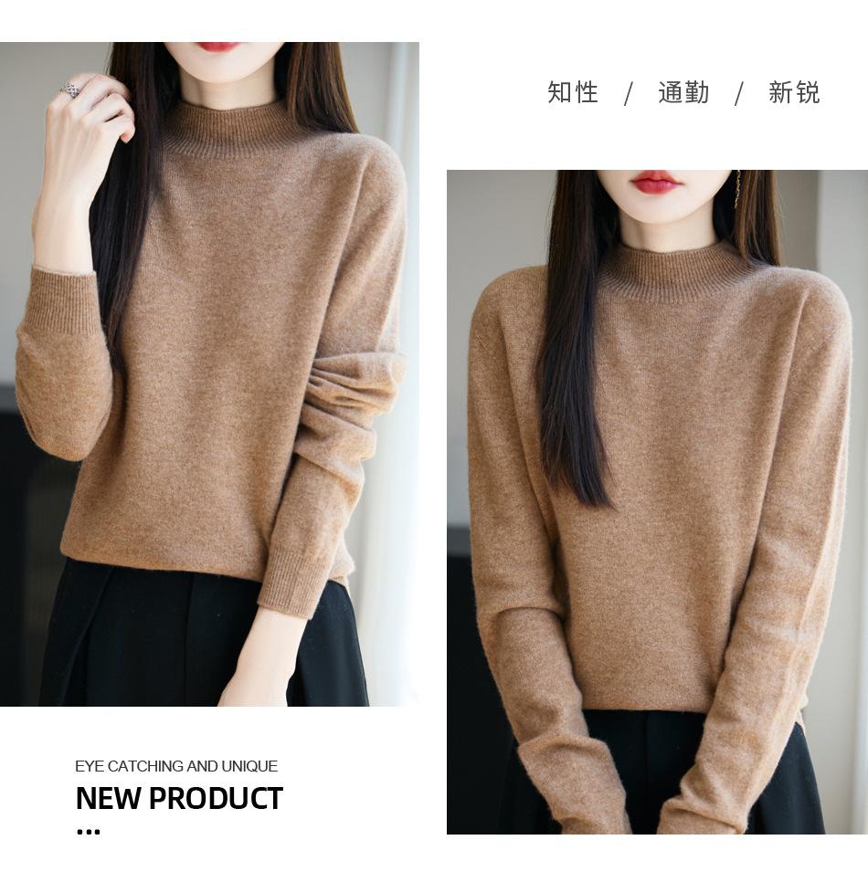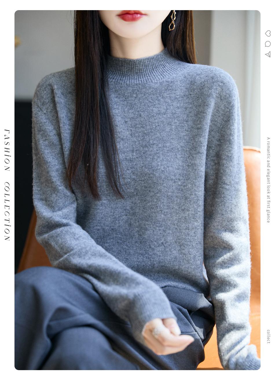 Suéter de Punto 2025 Ropa Interior para Mujer Color Sólido Holgado Nuevo Estilo Cuello Medio Alto Otoño Jersey Suéter Camiseta Base