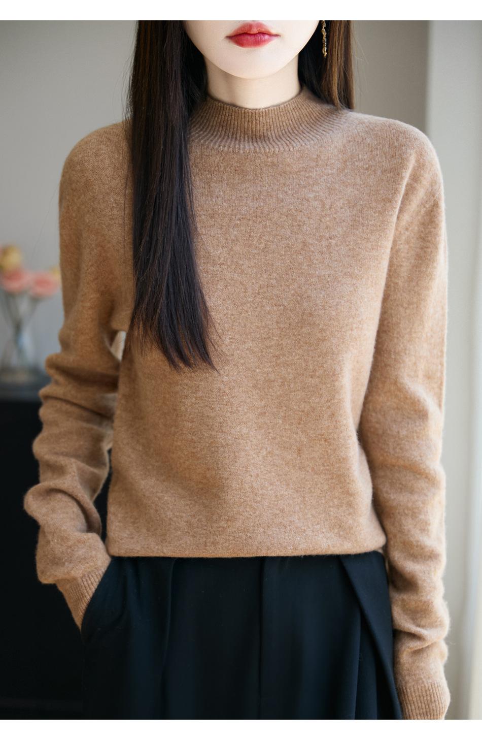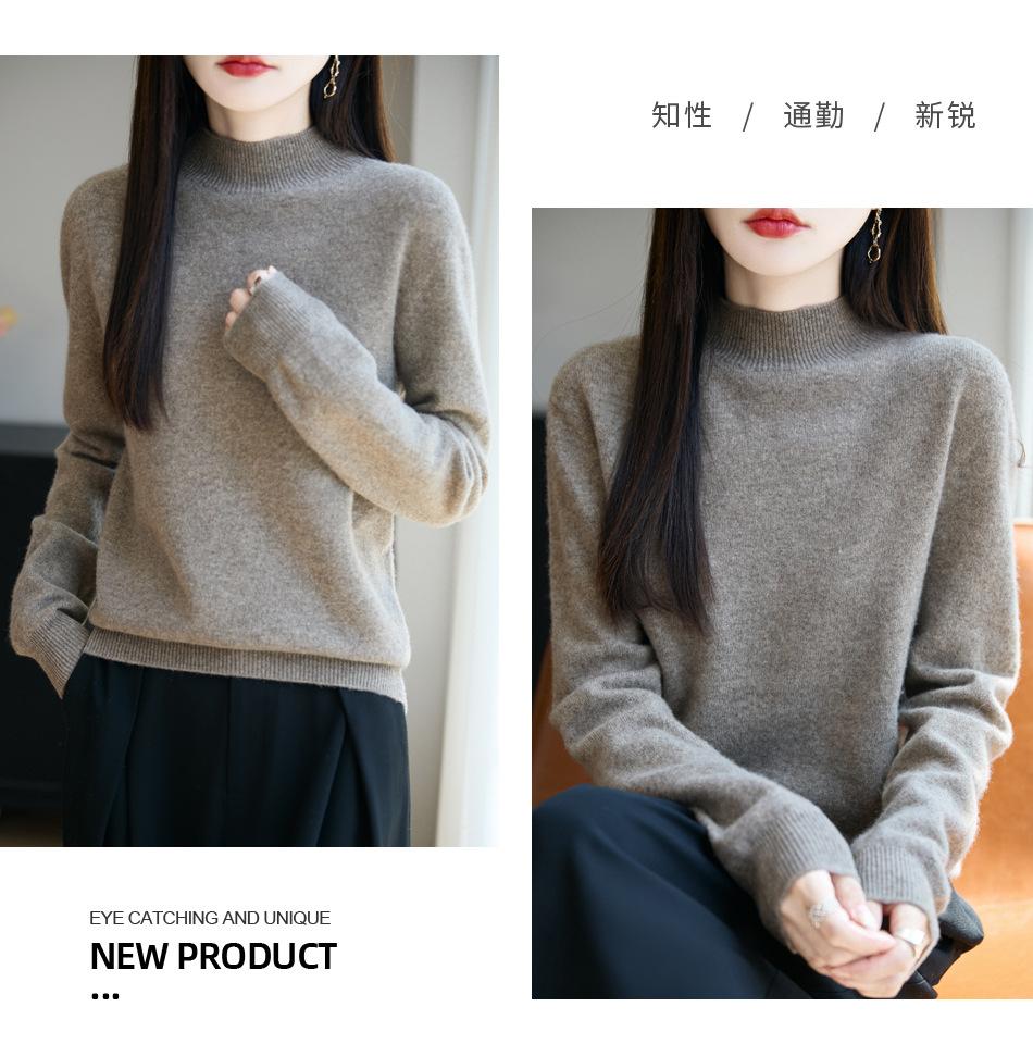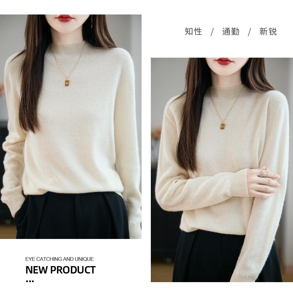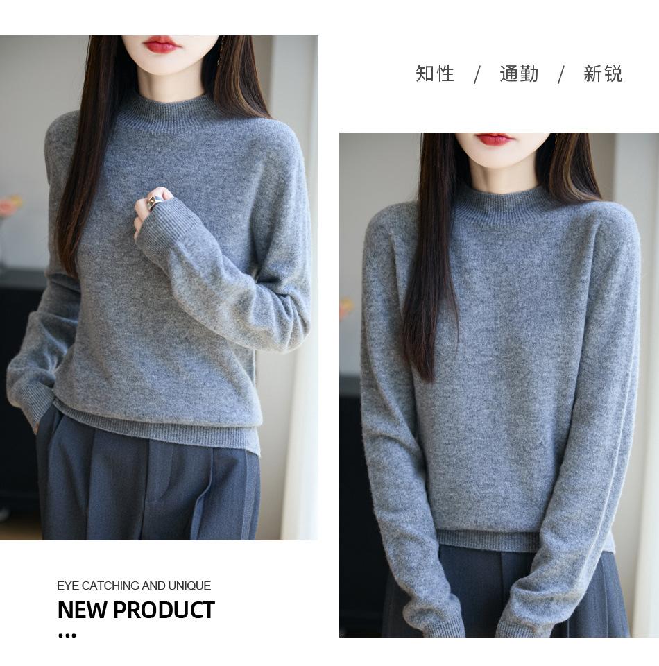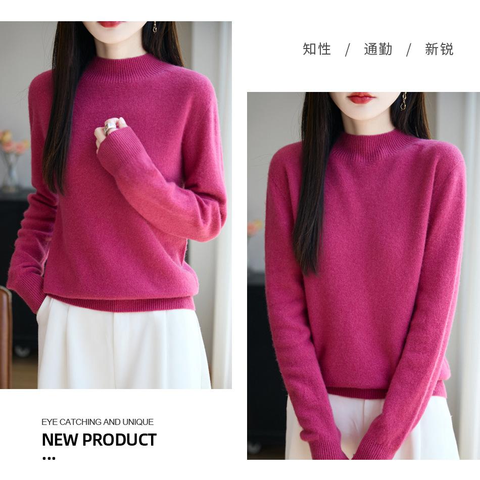 Suéter de Punto 2025 Ropa Interior para Mujer Color Sólido Holgado Nuevo Estilo Cuello Medio Alto Otoño Jersey Suéter Camiseta Base