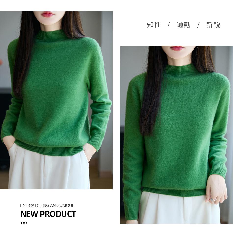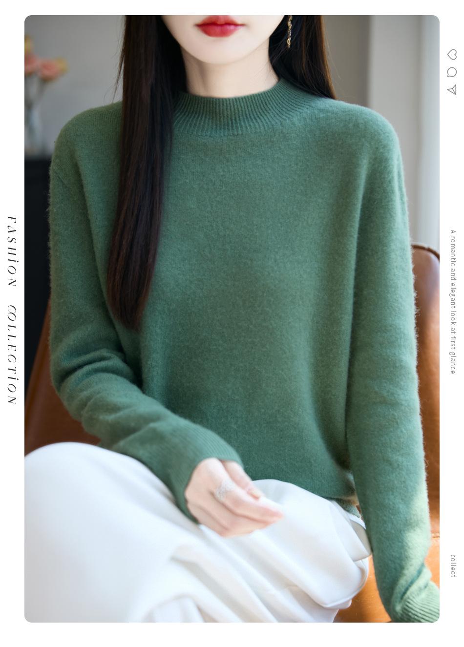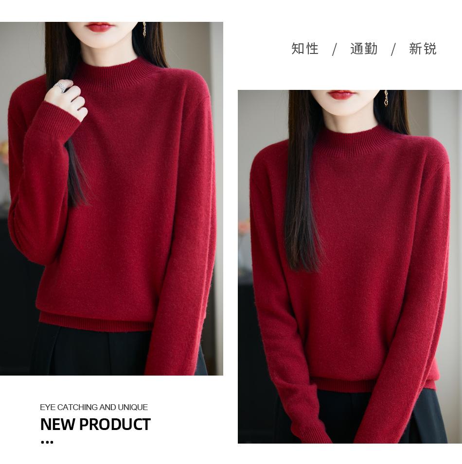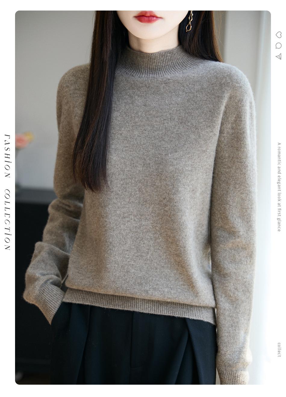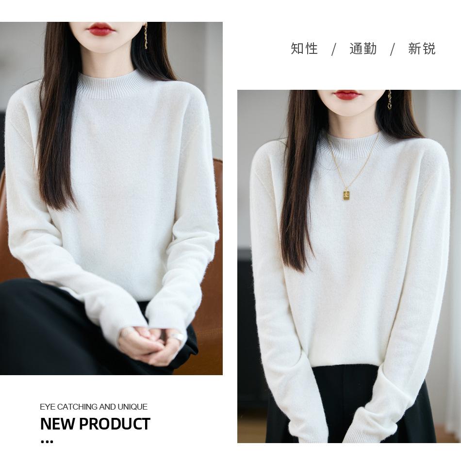 Suéter de Punto 2025 Ropa Interior para Mujer Color Sólido Holgado Nuevo Estilo Cuello Medio Alto Otoño Jersey Suéter Camiseta Base