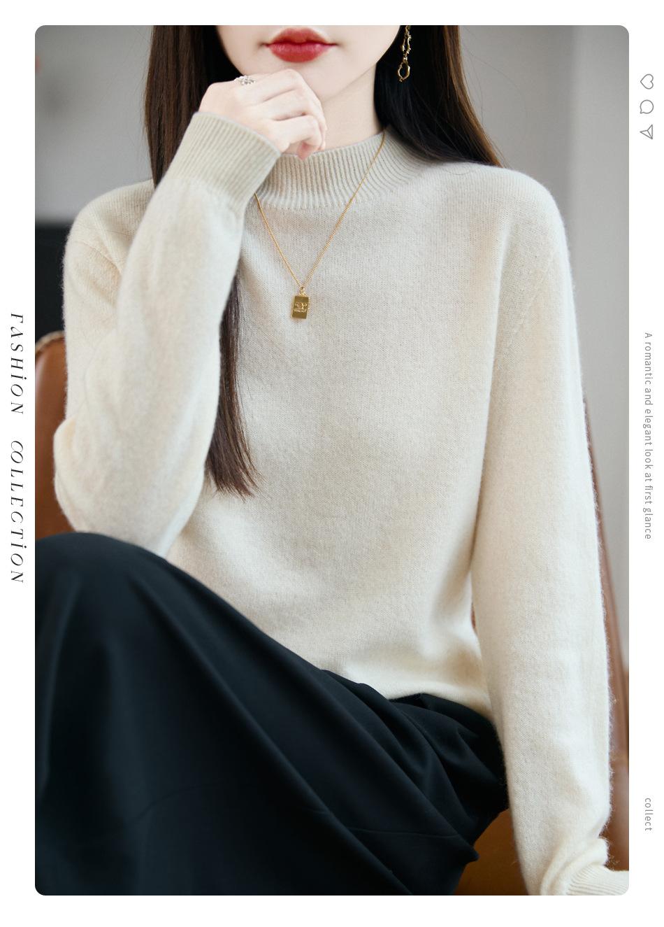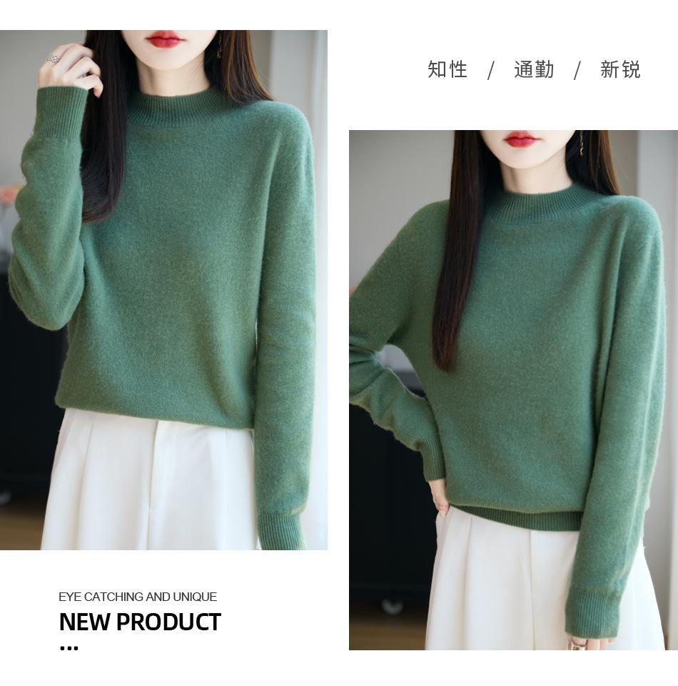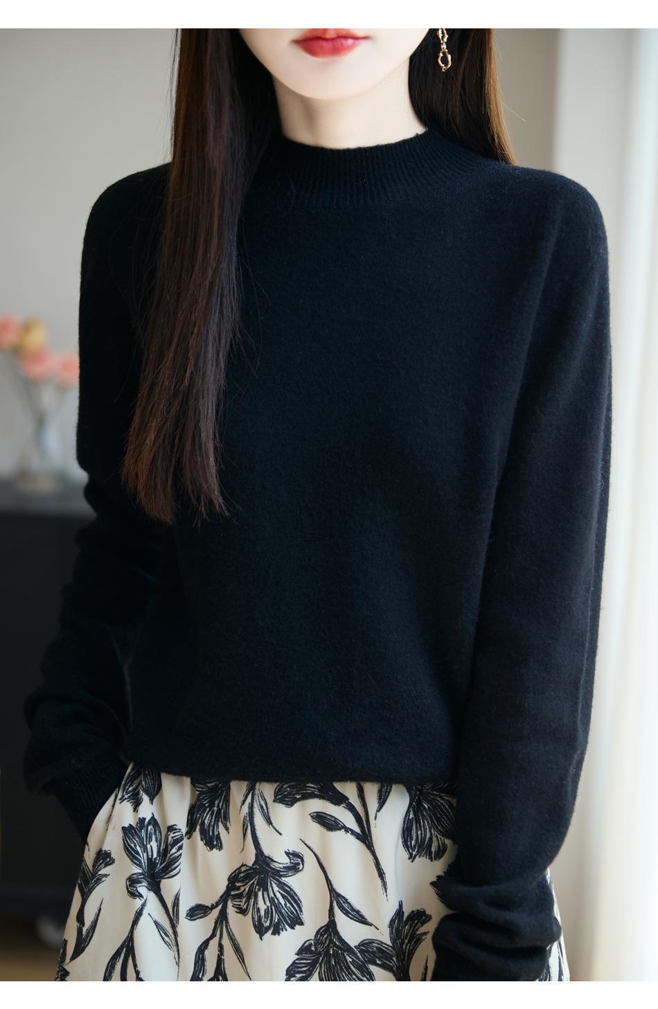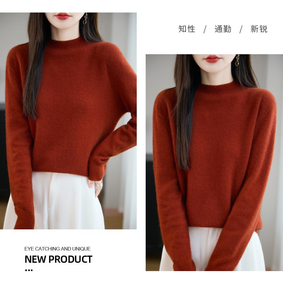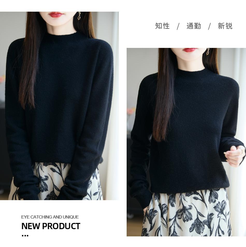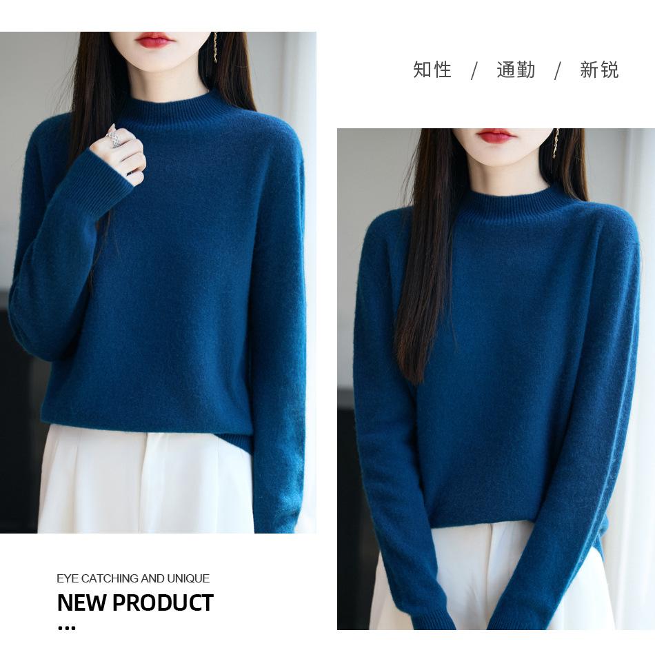 Suéter de Punto 2025 Ropa Interior para Mujer Color Sólido Holgado Nuevo Estilo Cuello Medio Alto Otoño Jersey Suéter Camiseta Base