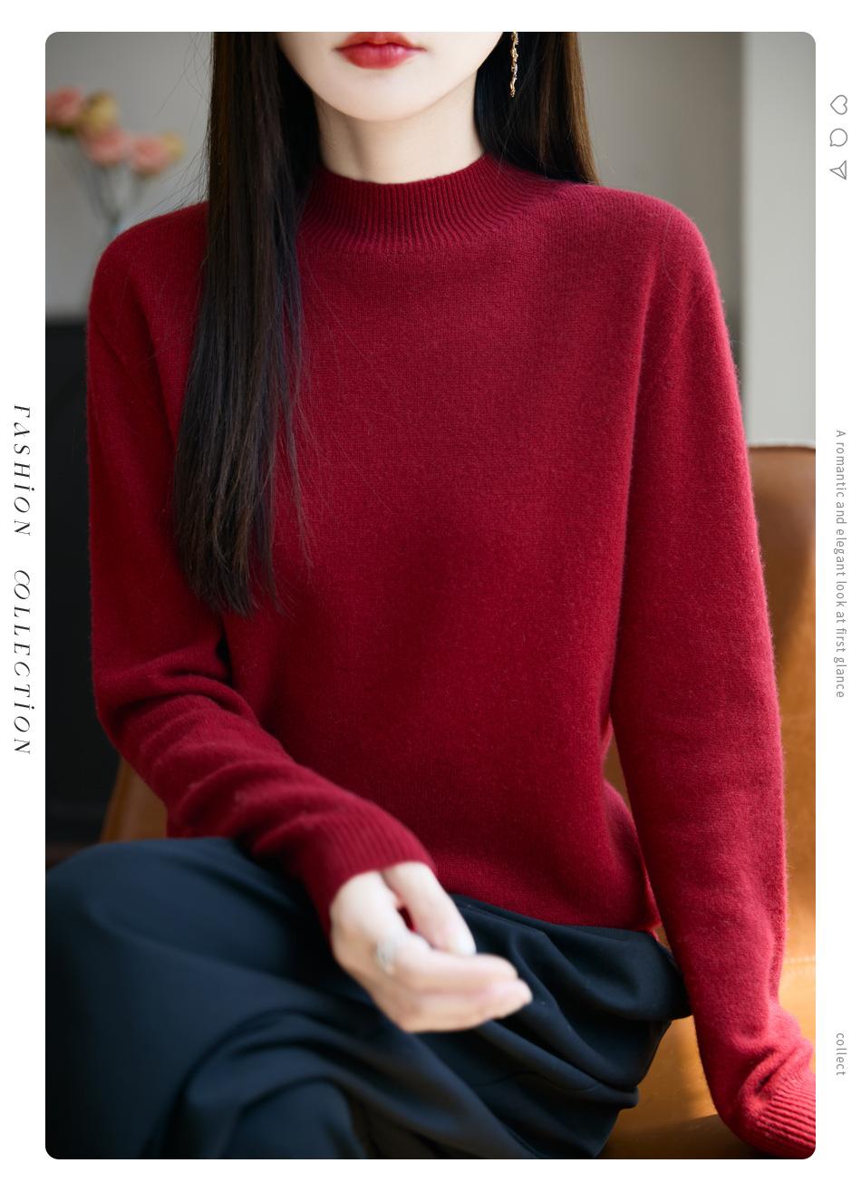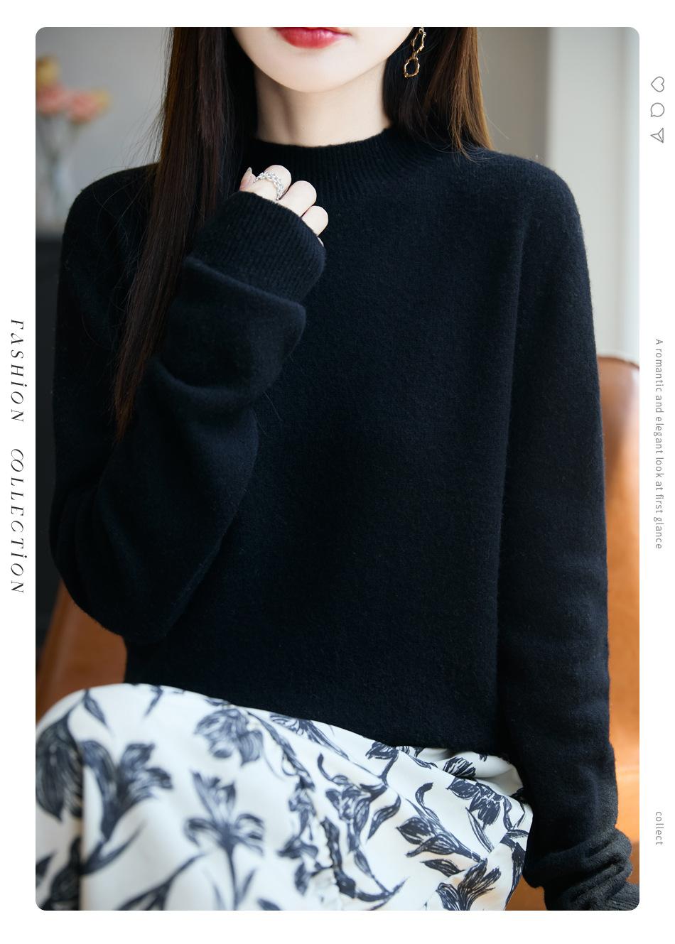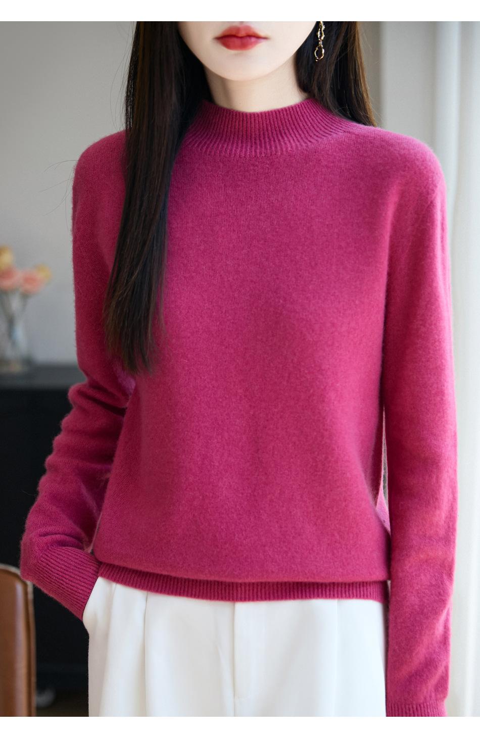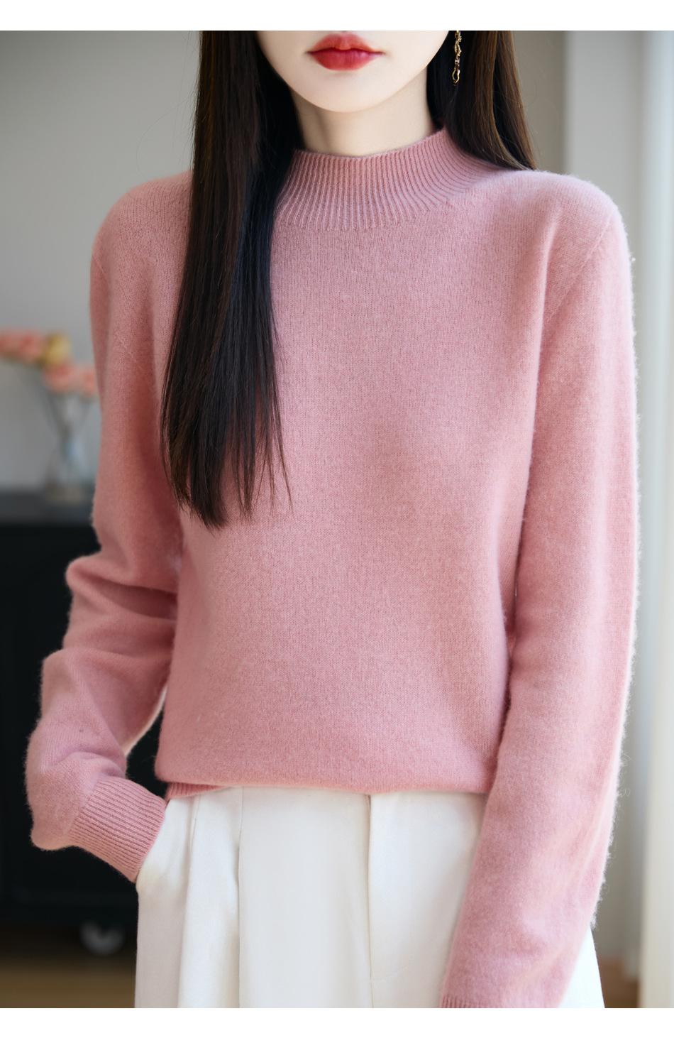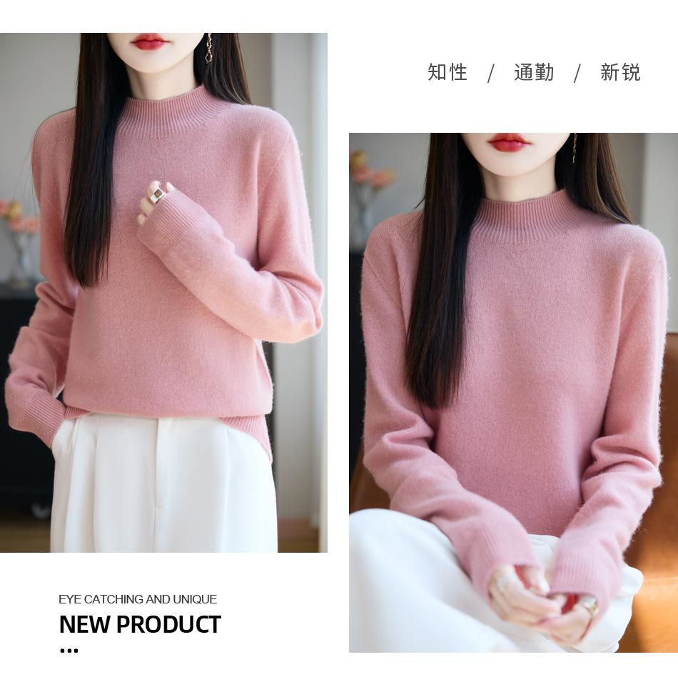 Suéter de Punto 2025 Ropa Interior para Mujer Color Sólido Holgado Nuevo Estilo Cuello Medio Alto Otoño Jersey Suéter Camiseta Base