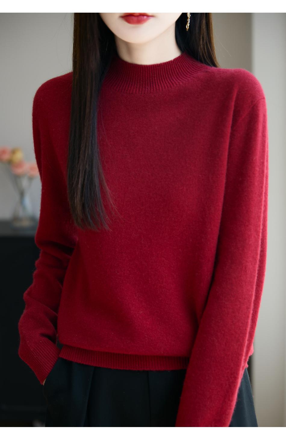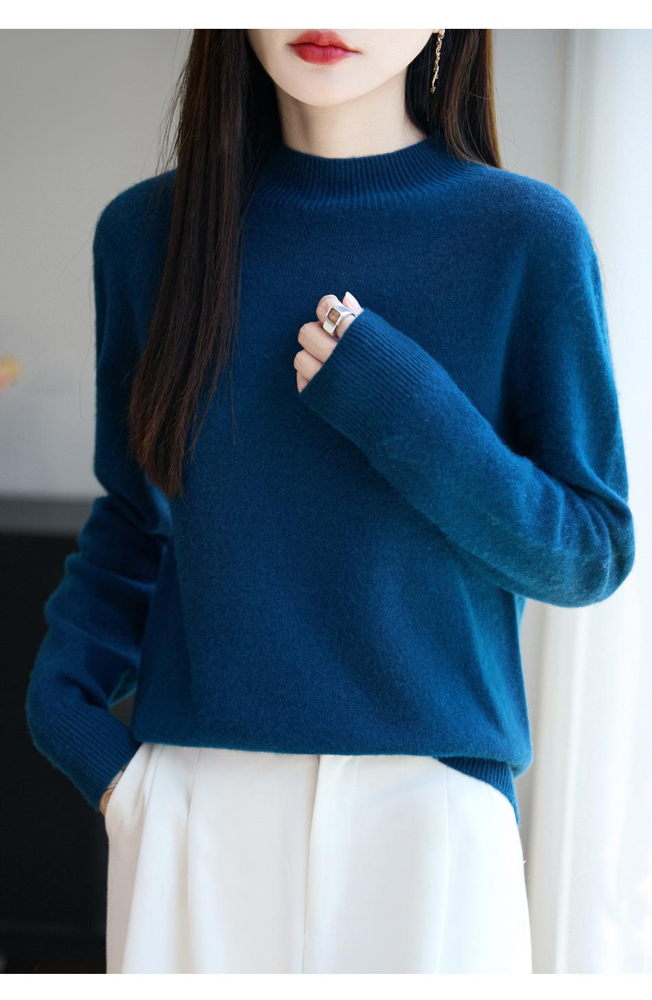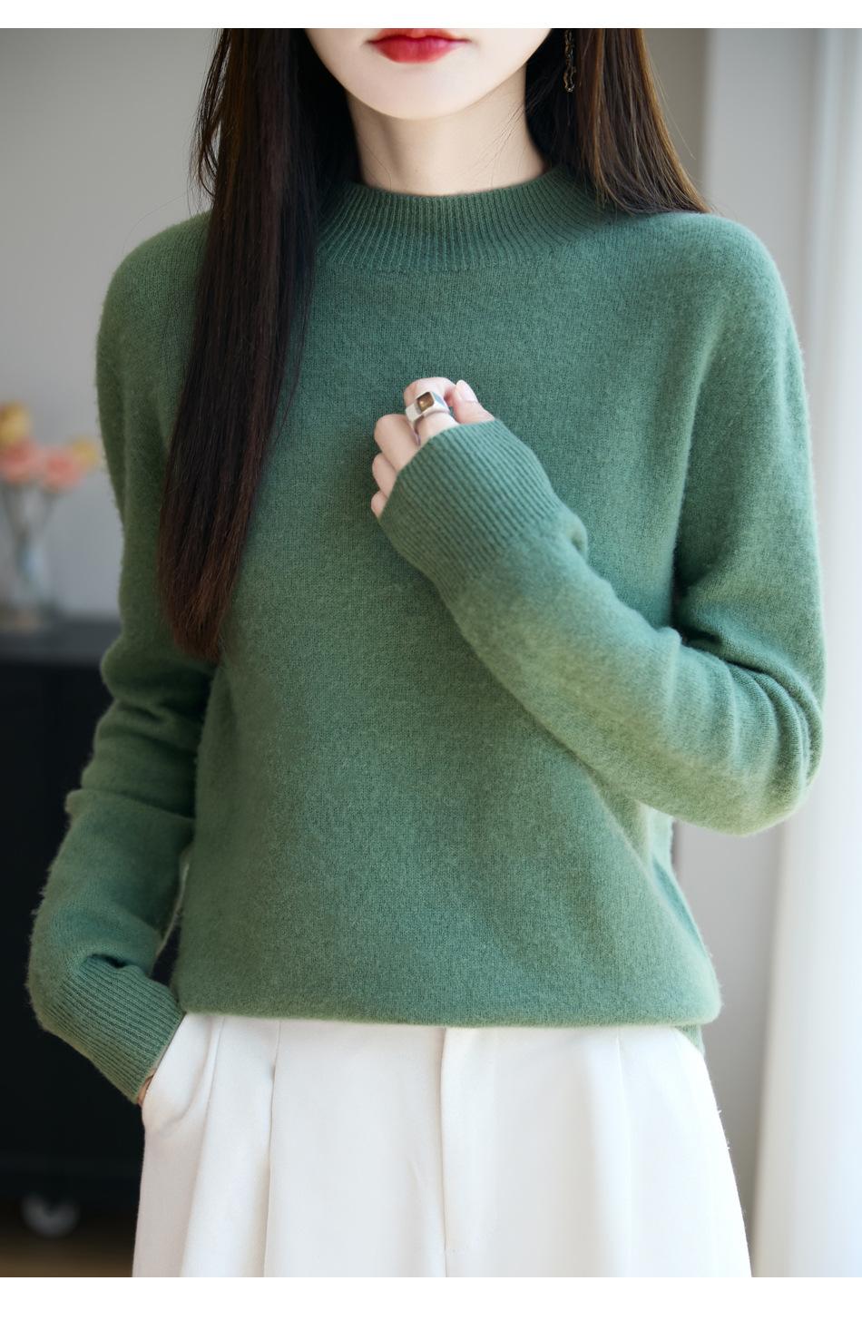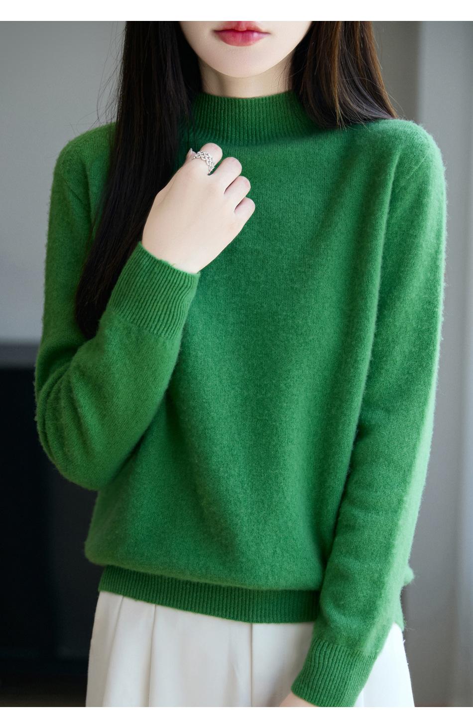 Suéter de Punto 2025 Ropa Interior para Mujer Color Sólido Holgado Nuevo Estilo Cuello Medio Alto Otoño Jersey Suéter Camiseta Base
