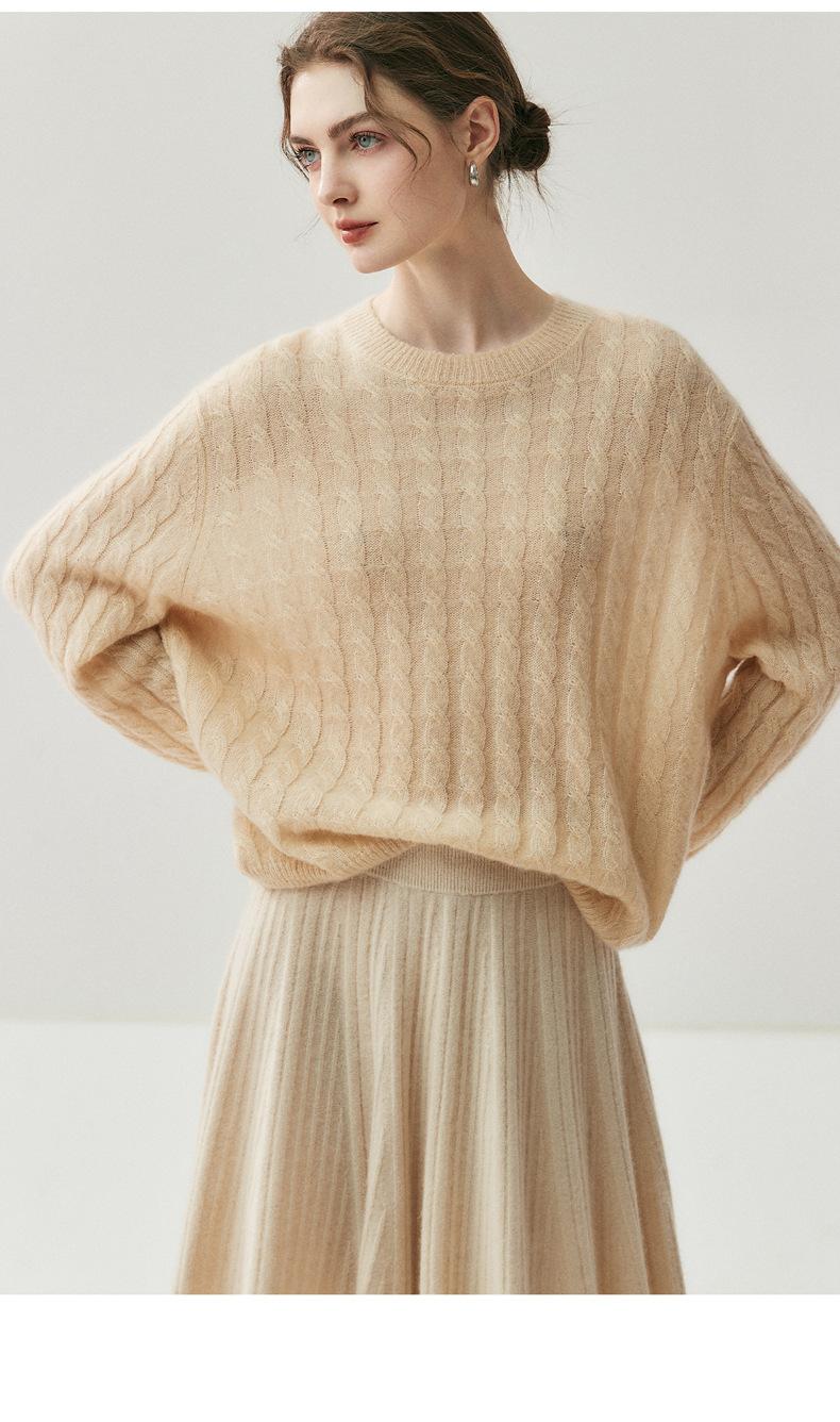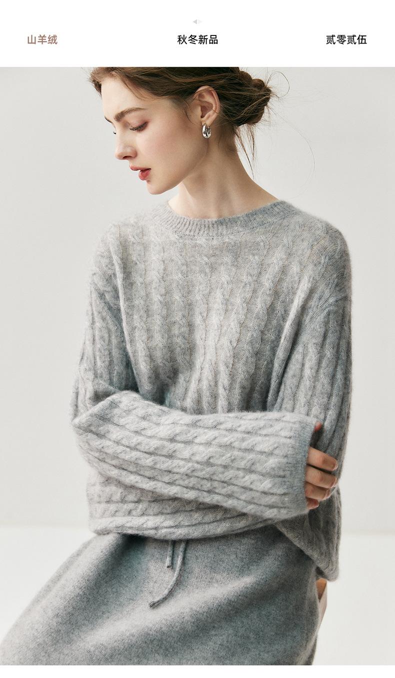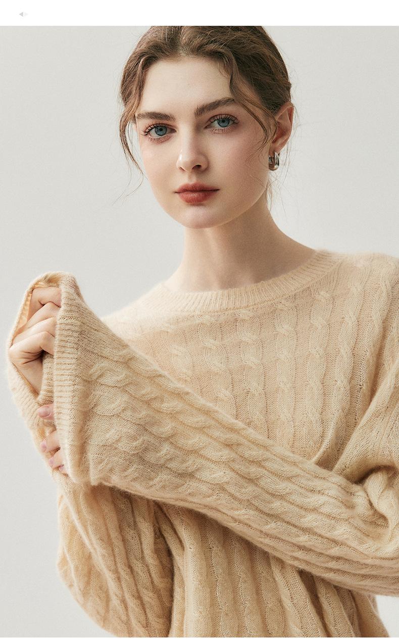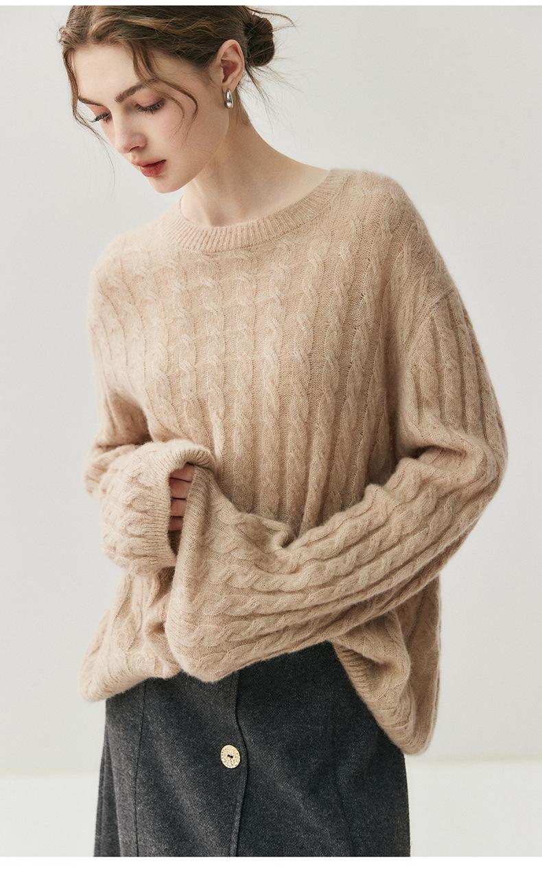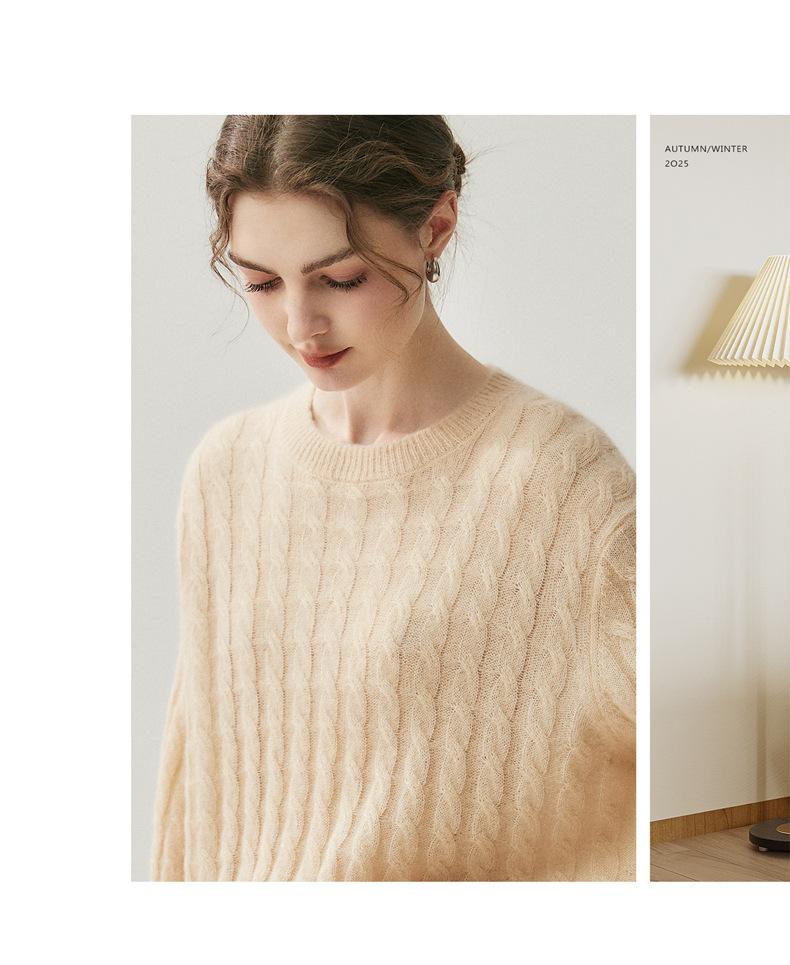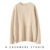 Nuevo Otoño/Invierno Cuello Redondo Cachemira Color Sólido Lana Tejido de Cable Estilo Holgado Relajado Suéter Casual de Mujer