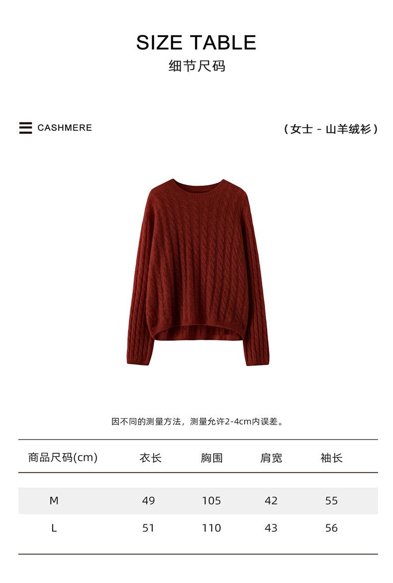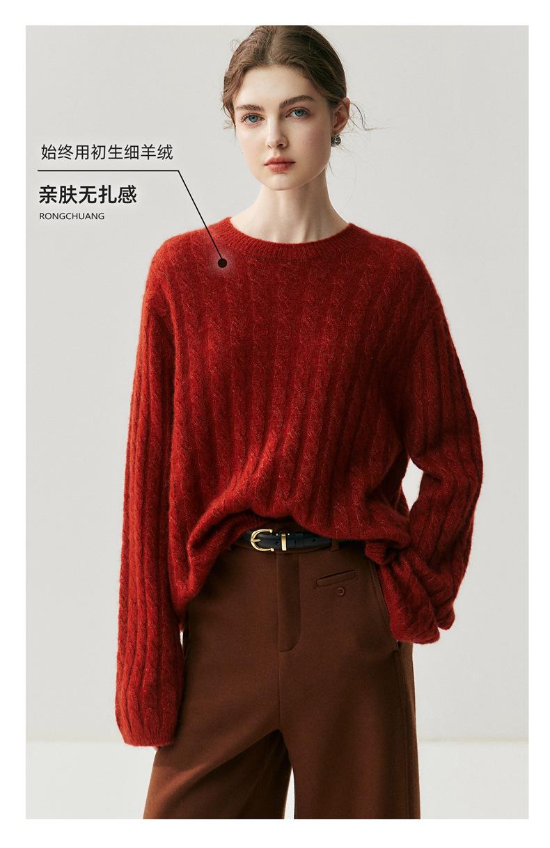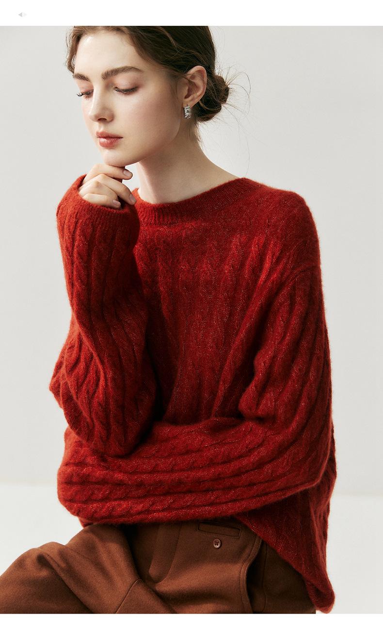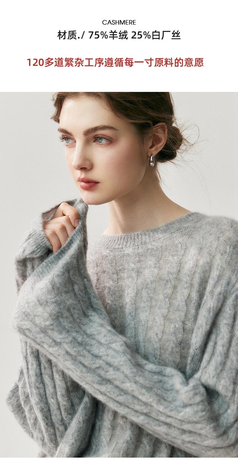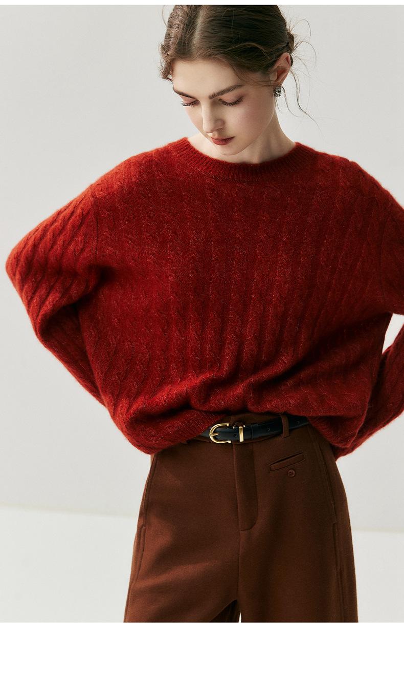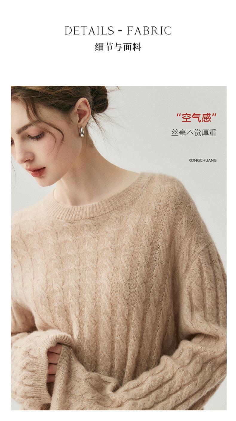 Nuevo Otoño/Invierno Cuello Redondo Cachemira Color Sólido Lana Tejido de Cable Estilo Holgado Relajado Suéter Casual de Mujer