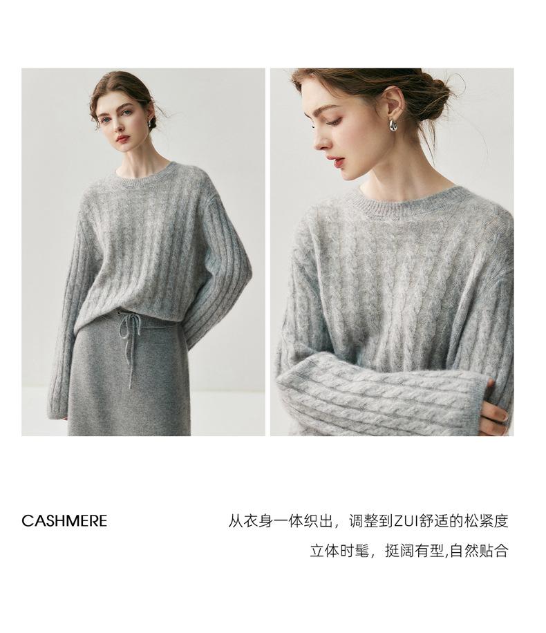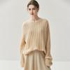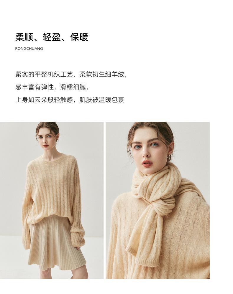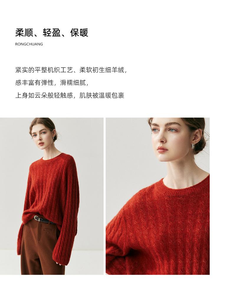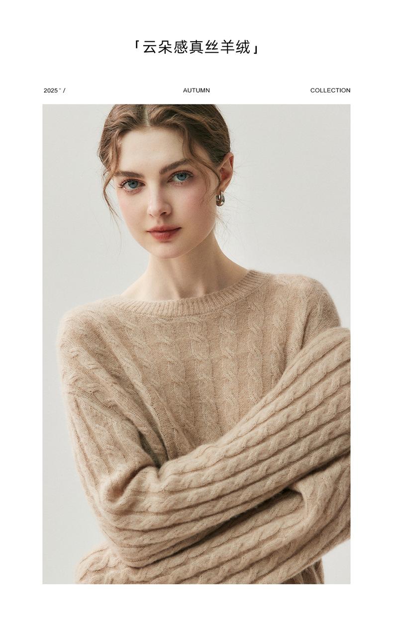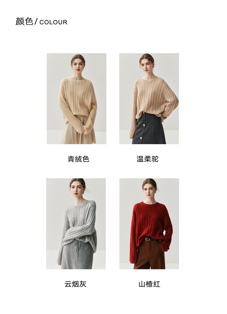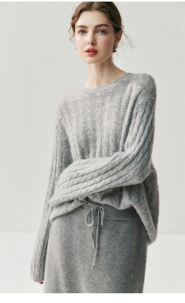 Nuevo Otoño/Invierno Cuello Redondo Cachemira Color Sólido Lana Tejido de Cable Estilo Holgado Relajado Suéter Casual de Mujer