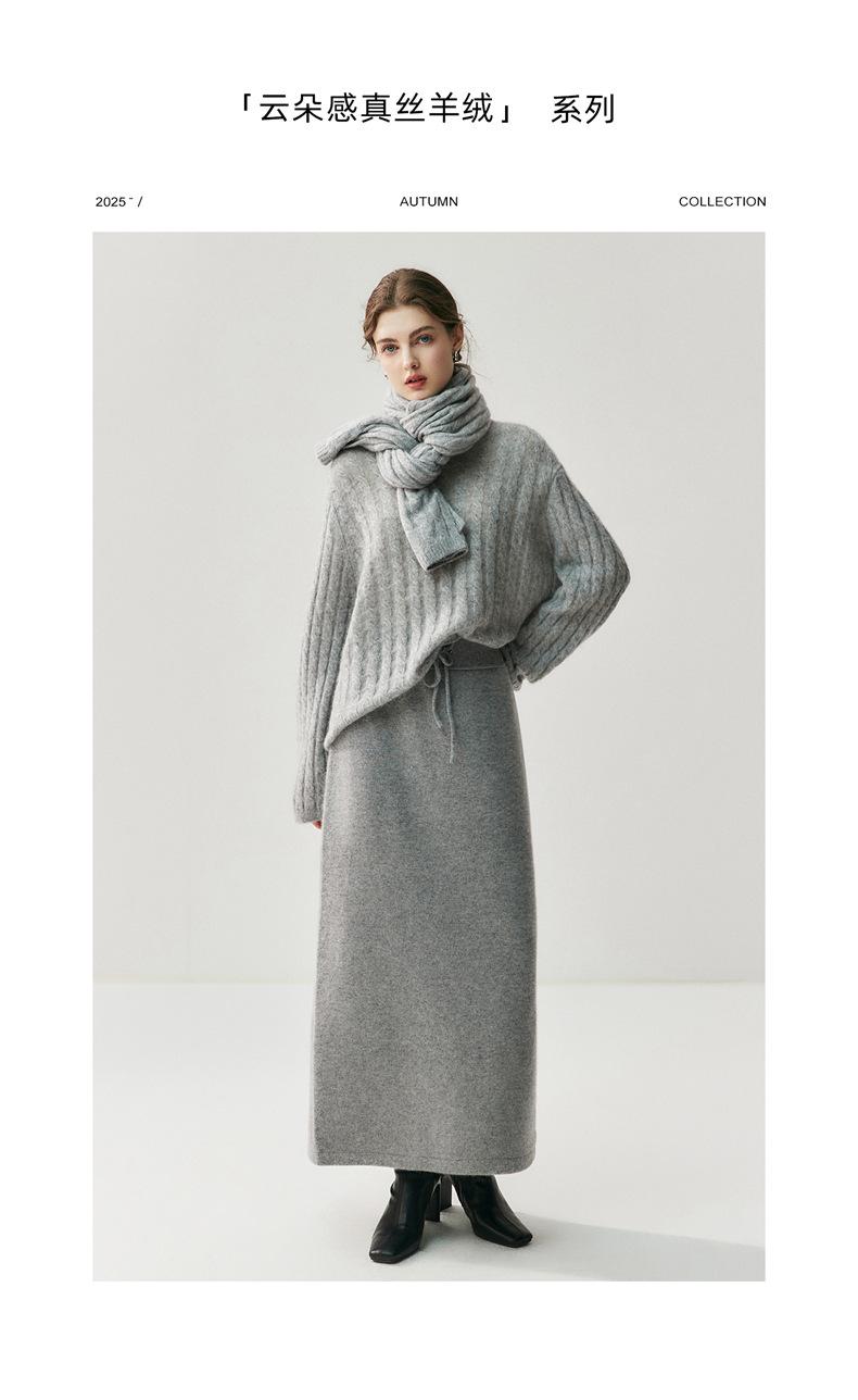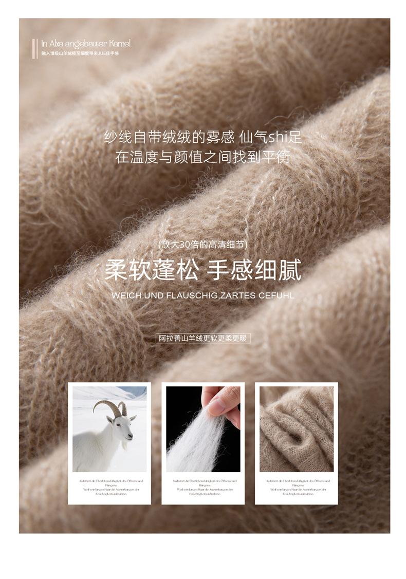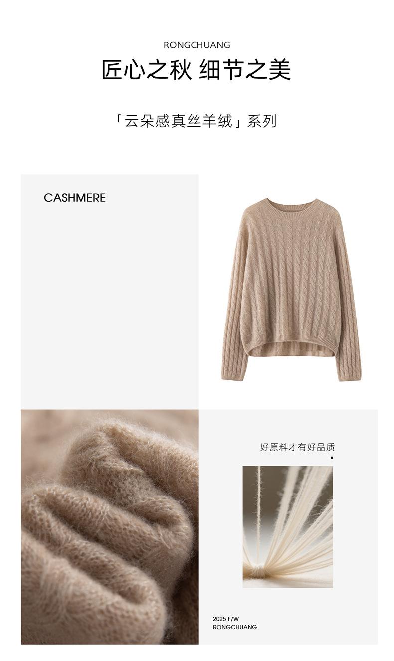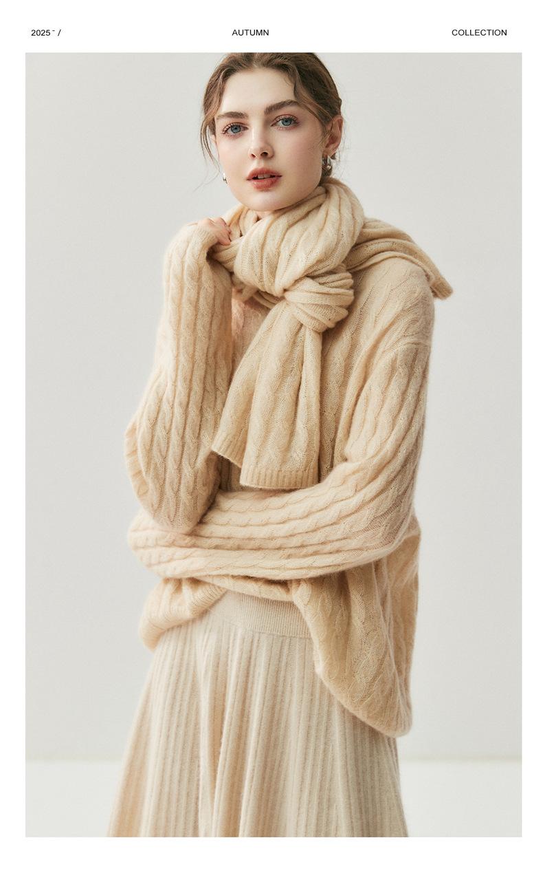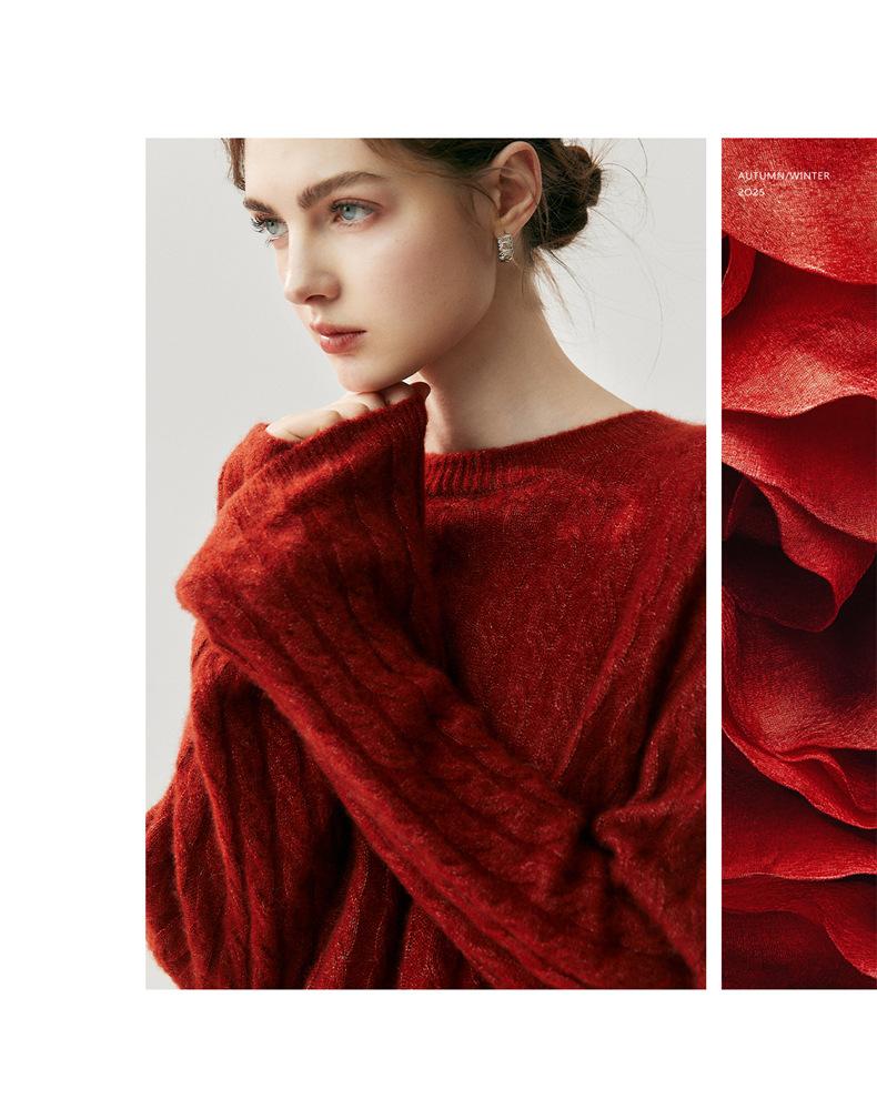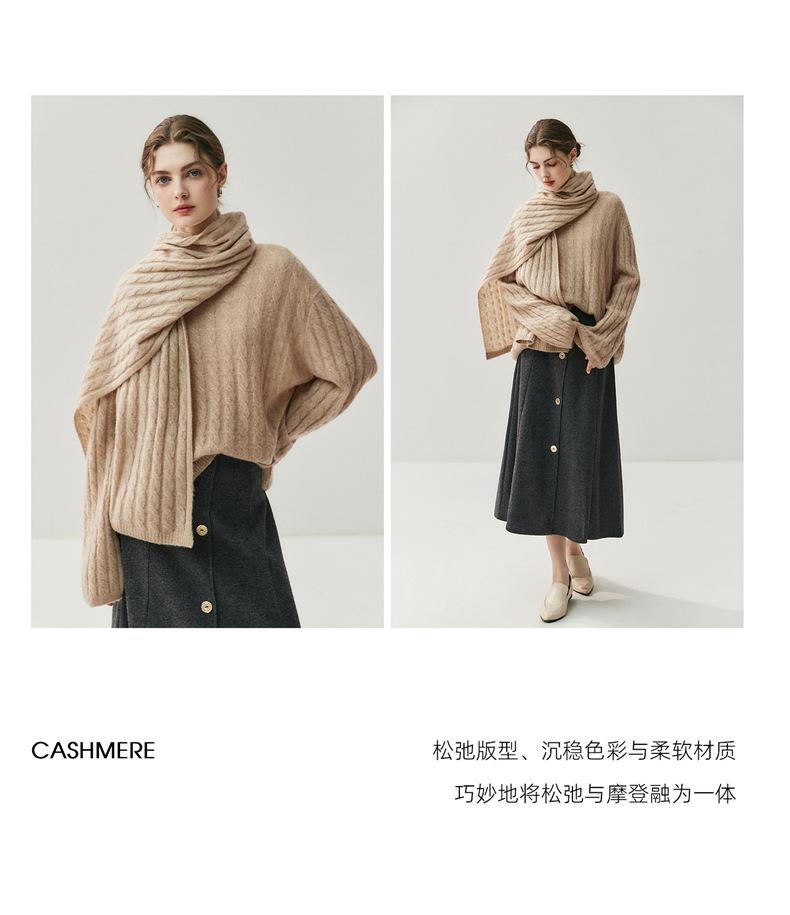 Nuevo Otoño/Invierno Cuello Redondo Cachemira Color Sólido Lana Tejido de Cable Estilo Holgado Relajado Suéter Casual de Mujer