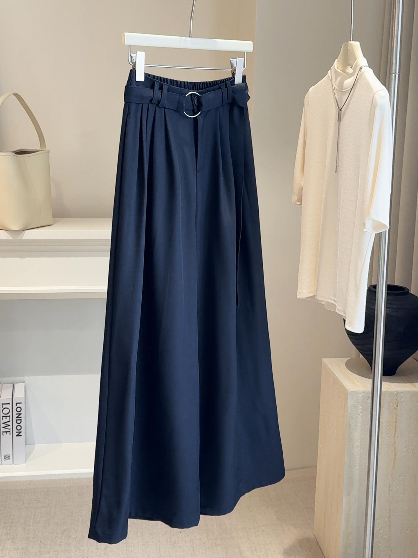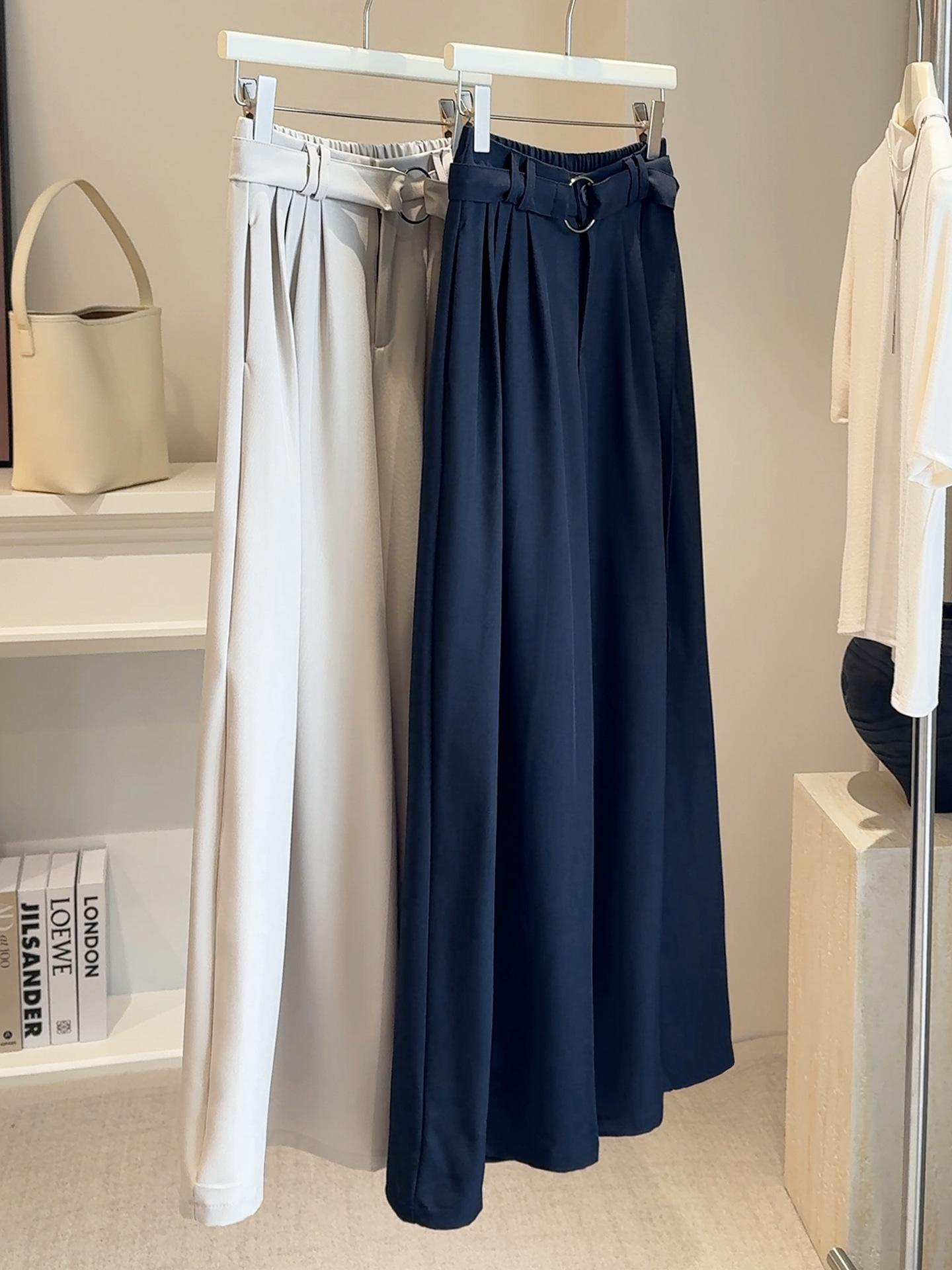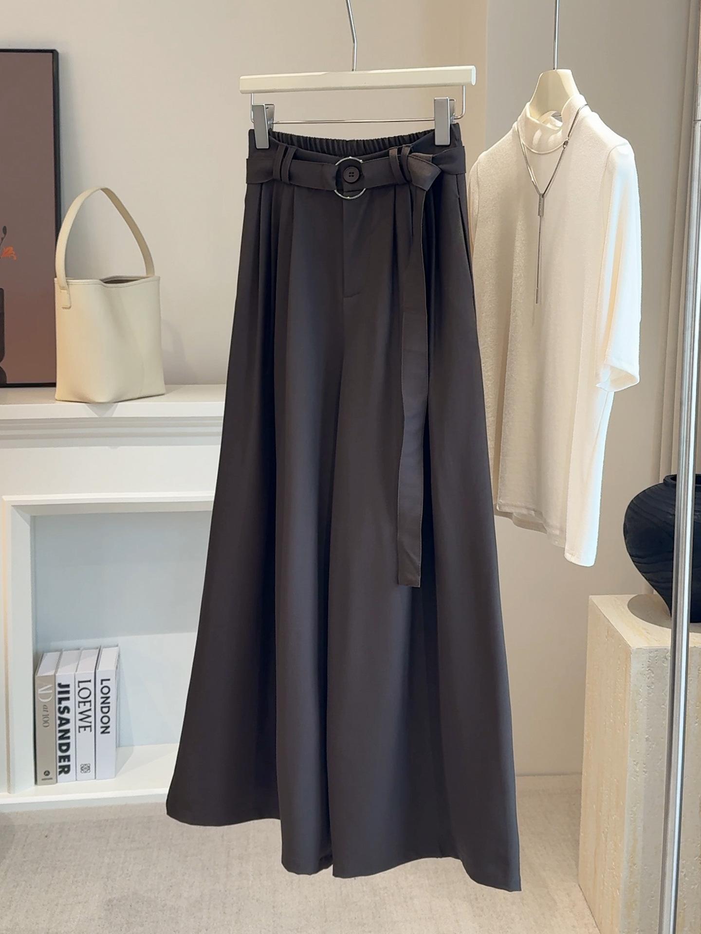 Pantalones de traje americanos de alta gama de pierna ancha para mujer 2025 primavera y otoño modernos pantalones casuales sueltos tiro alto drapeados hasta el suelo pantalones culottes
