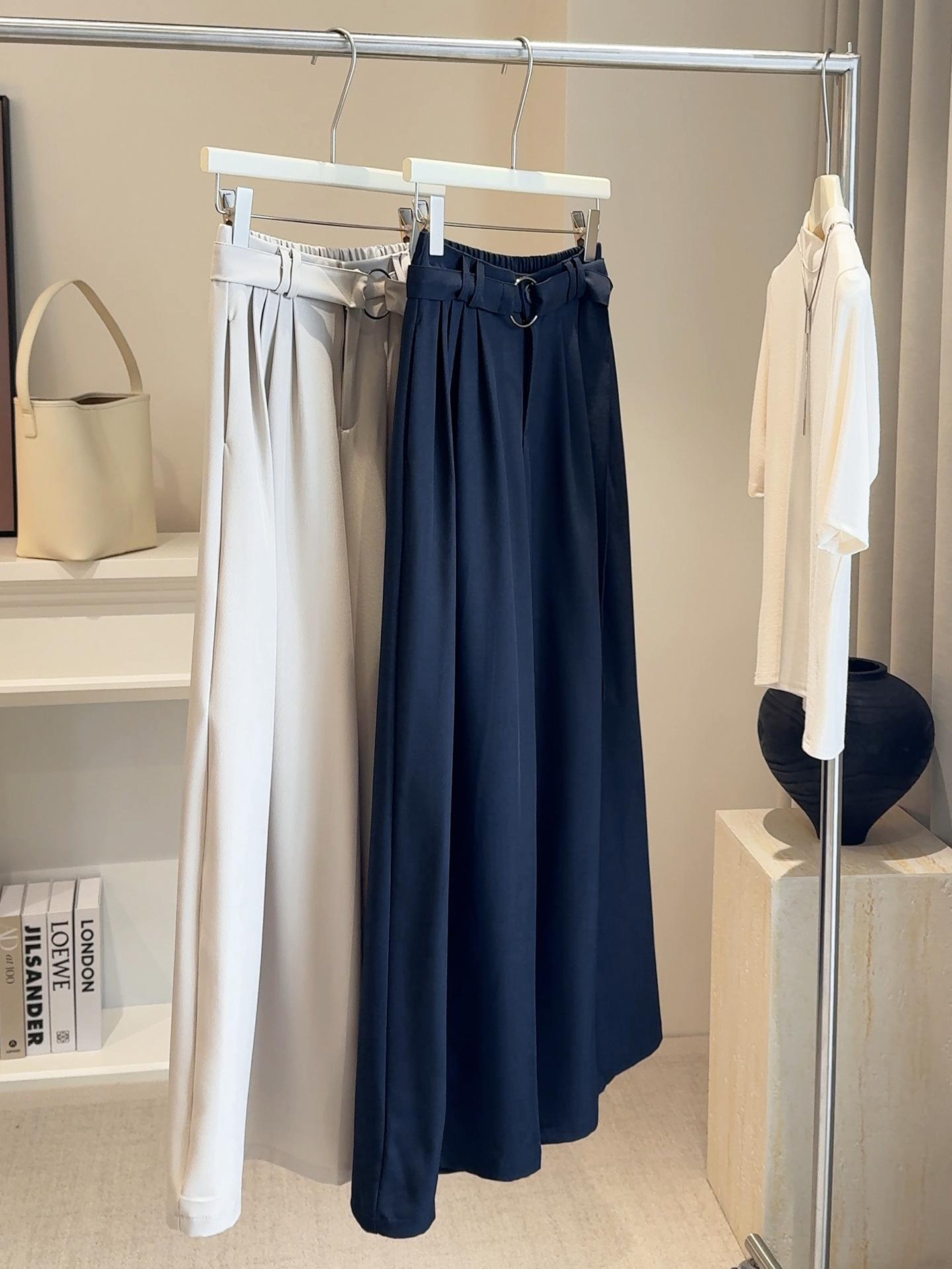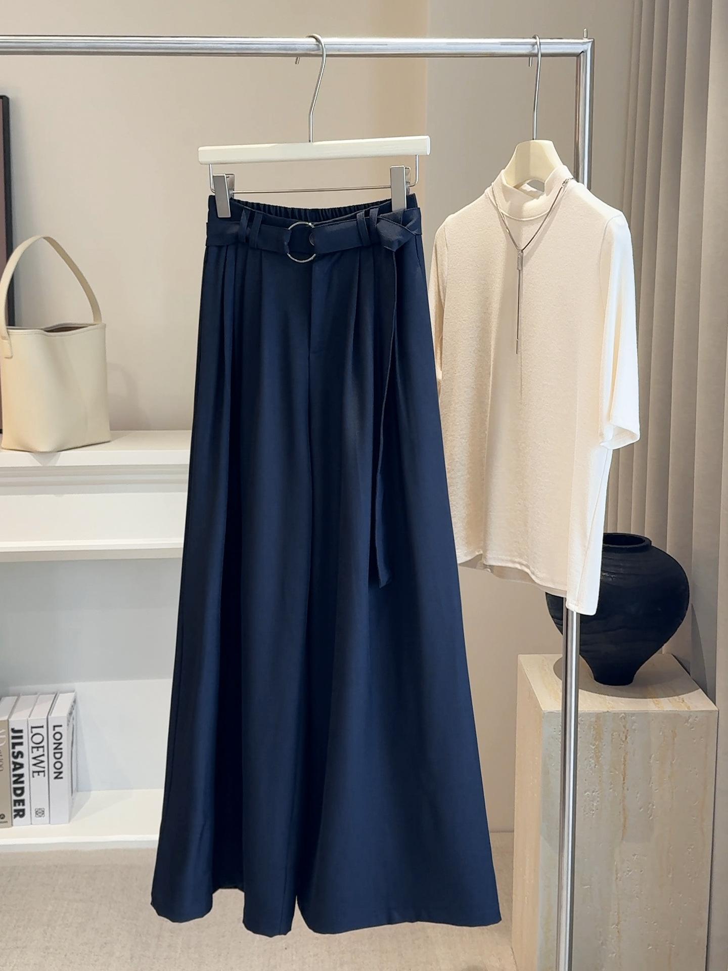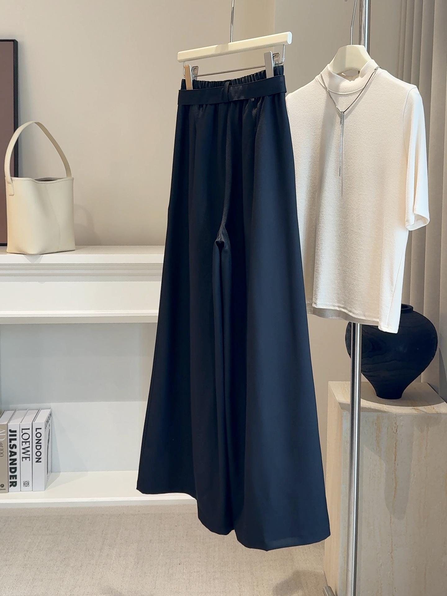 Pantalones de traje americanos de alta gama de pierna ancha para mujer 2025 primavera y otoño modernos pantalones casuales sueltos tiro alto drapeados hasta el suelo pantalones culottes