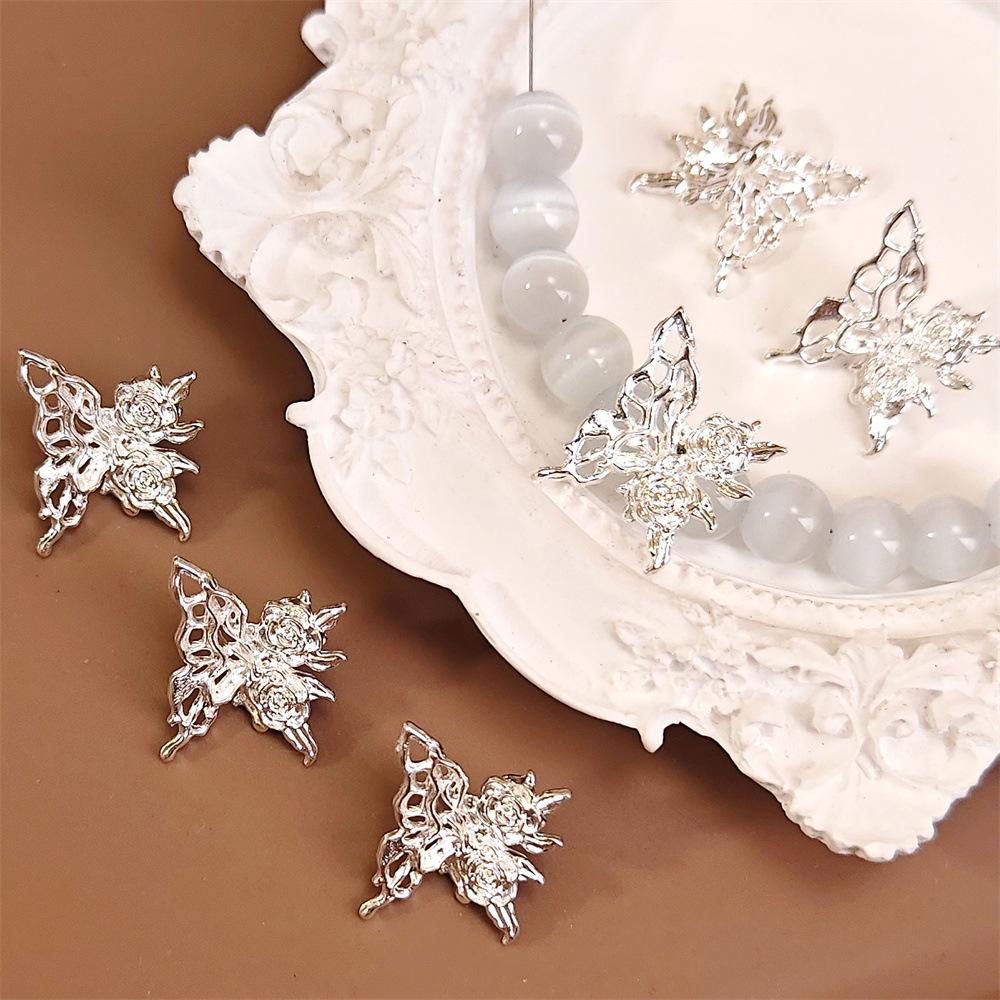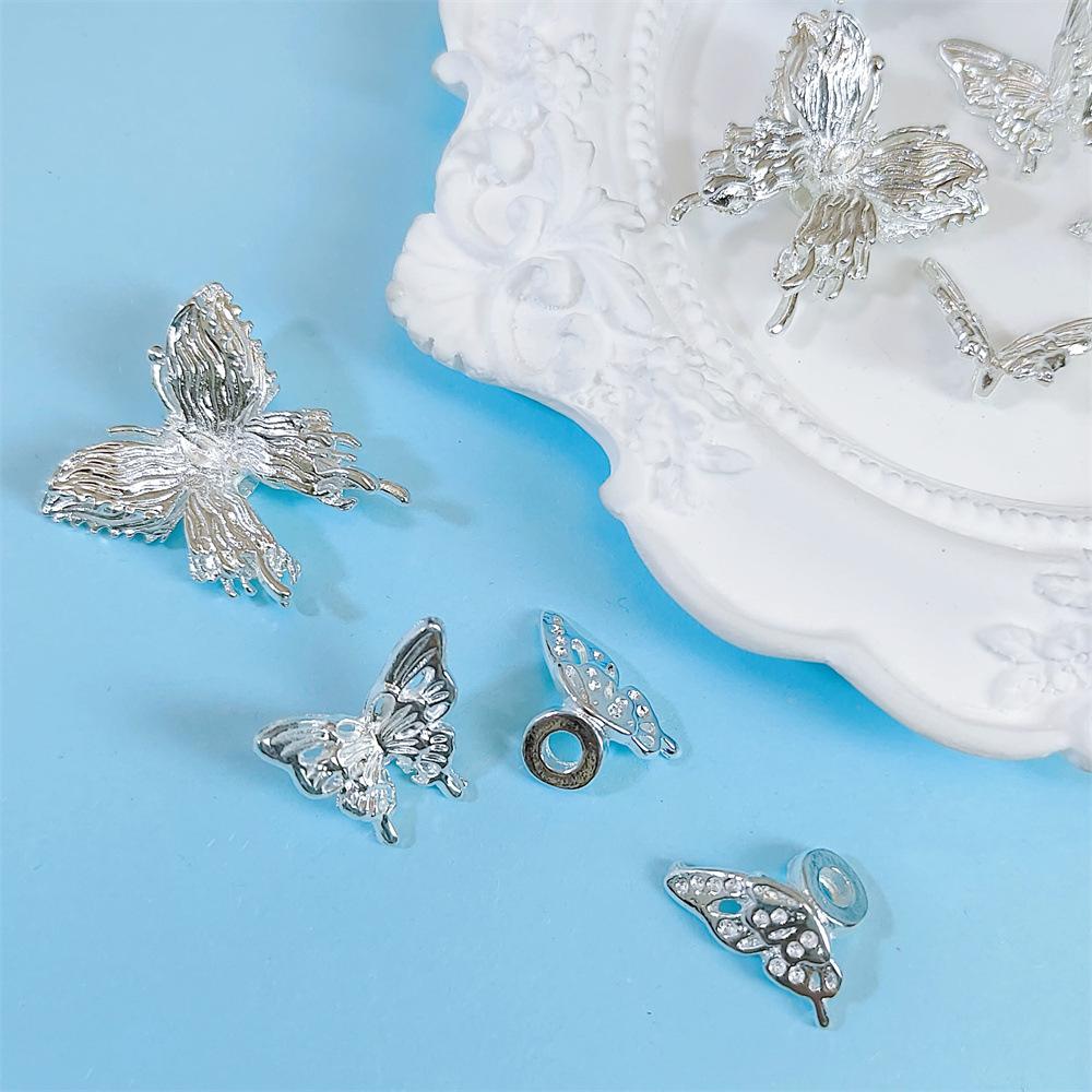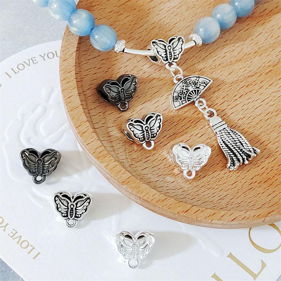 Pulsera diy hecha a mano espaciador de alas de mariposa Mariposa hueca tridimensional a través de un agujero colgante con cuentas accesorios de joyería de aleación