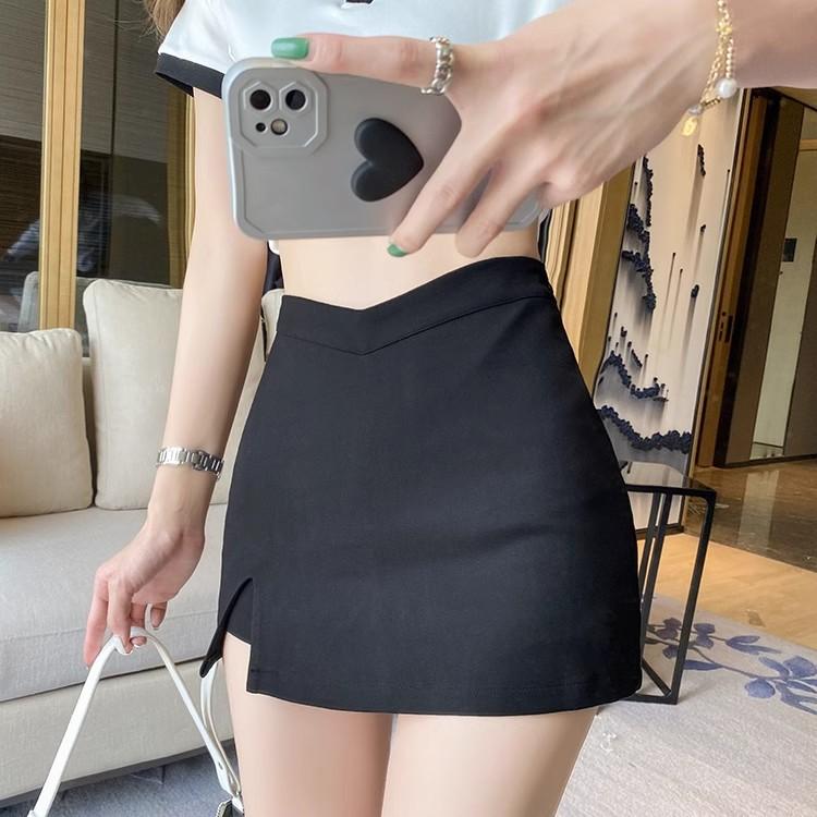 Falda Corta con Abertura 2024 para Mujer Verano Cintura Alta Línea A Falda Midi Verano Combinable Ropa Exterior Adelgazante Pantalones Cortos Anchos de Pierna Calientes