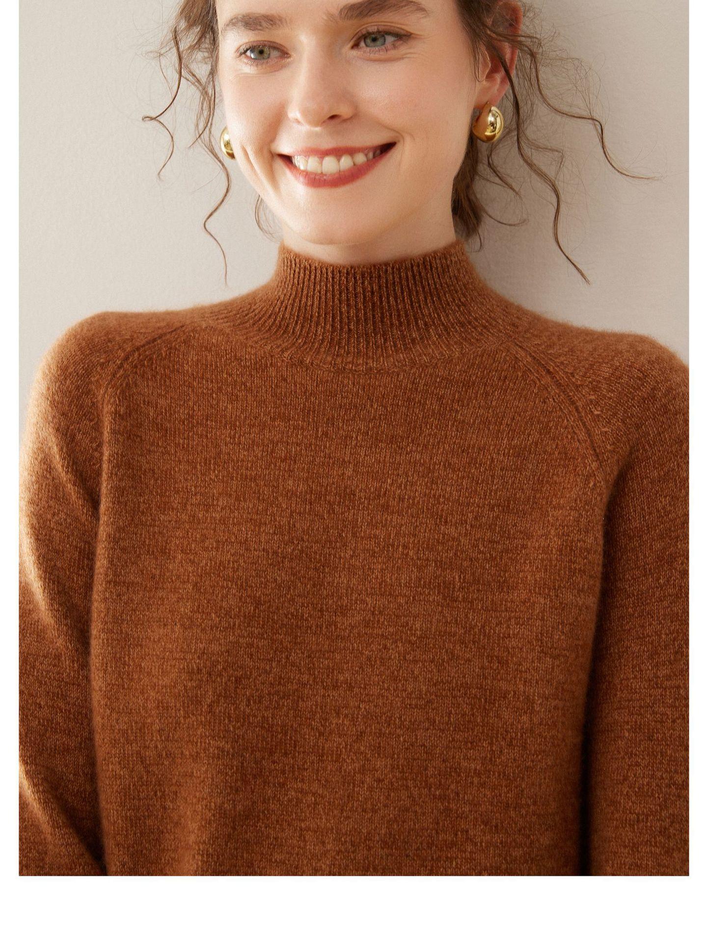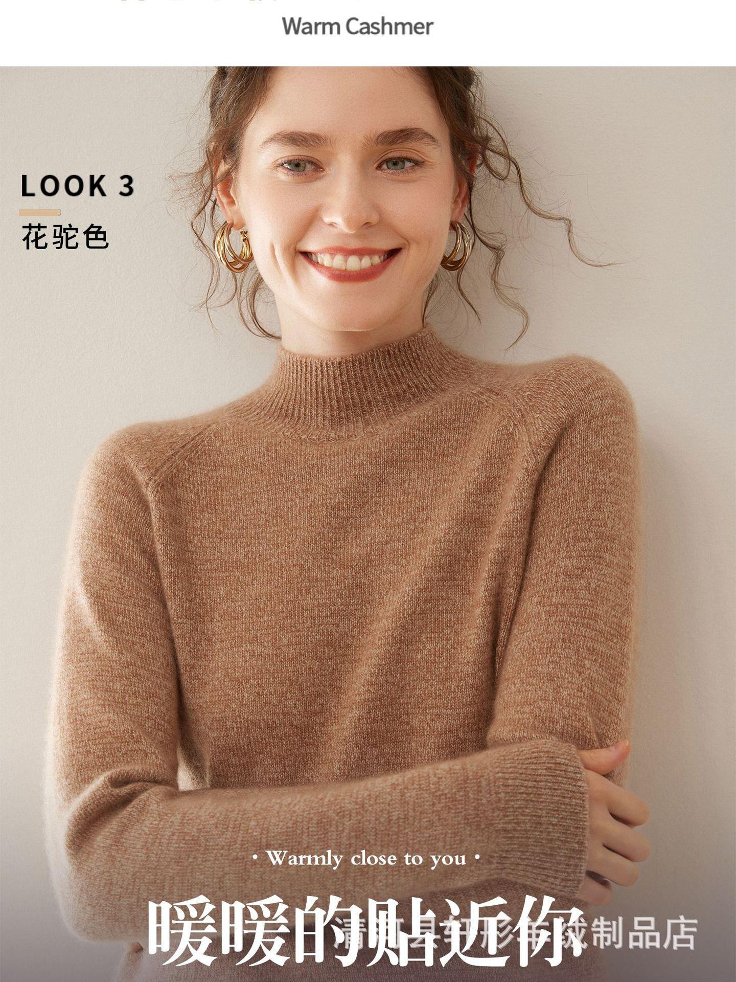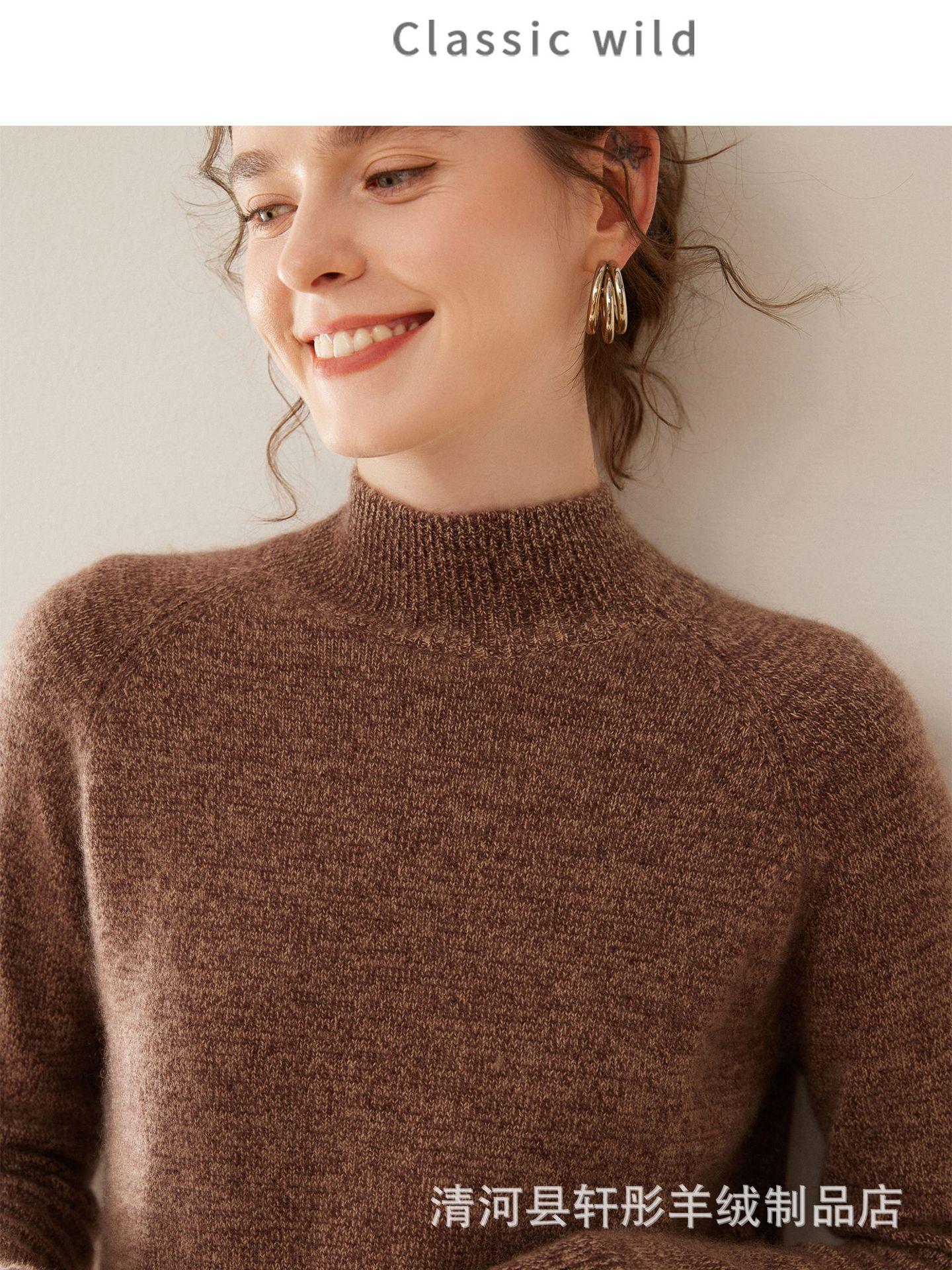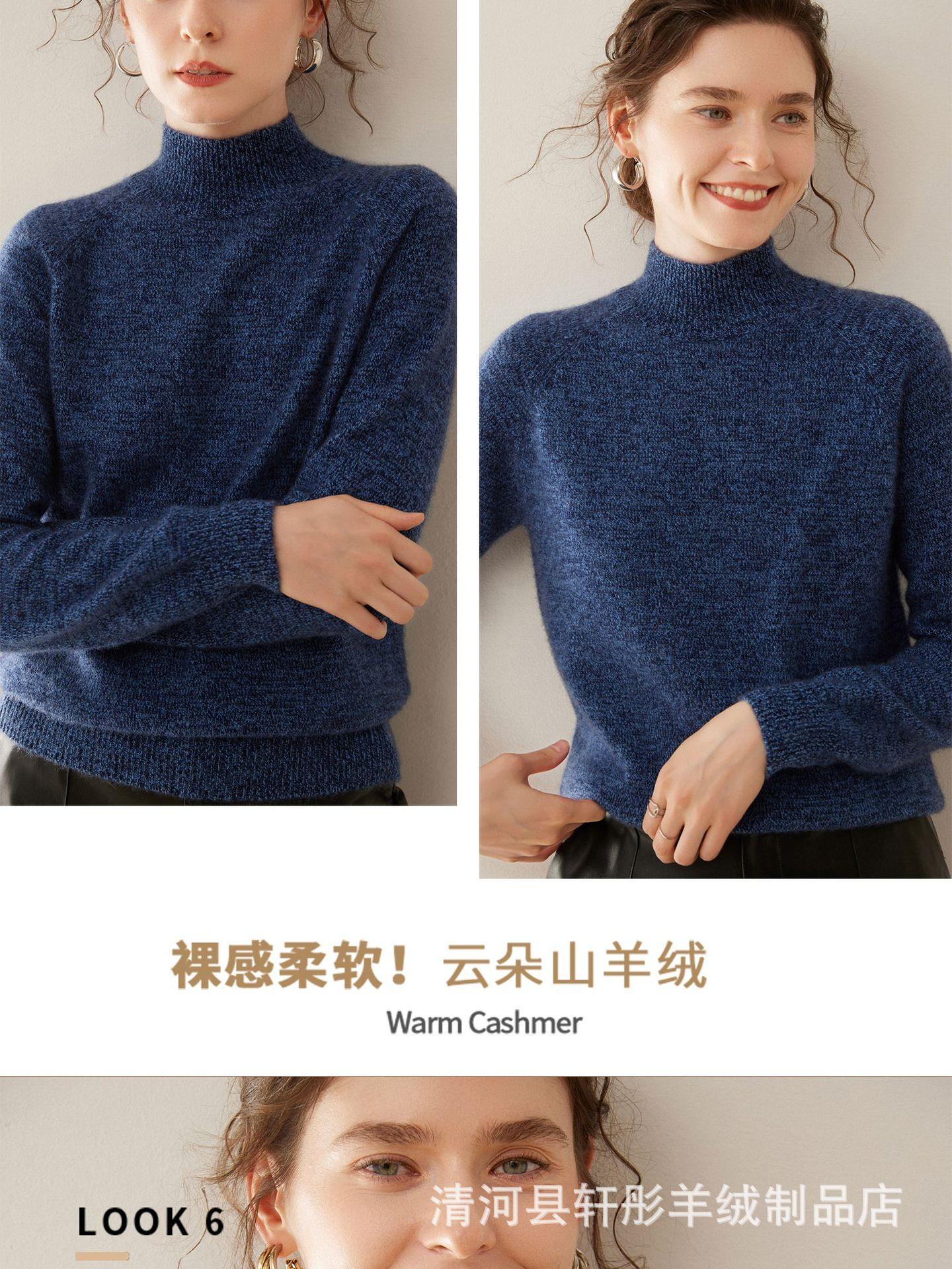 Nueva Camiseta Base de Punto de Cachemira Otoño/Invierno Moda Commute Versátil Holgada Adelgazante Cuello Medio Alto para Mujer Perezosa