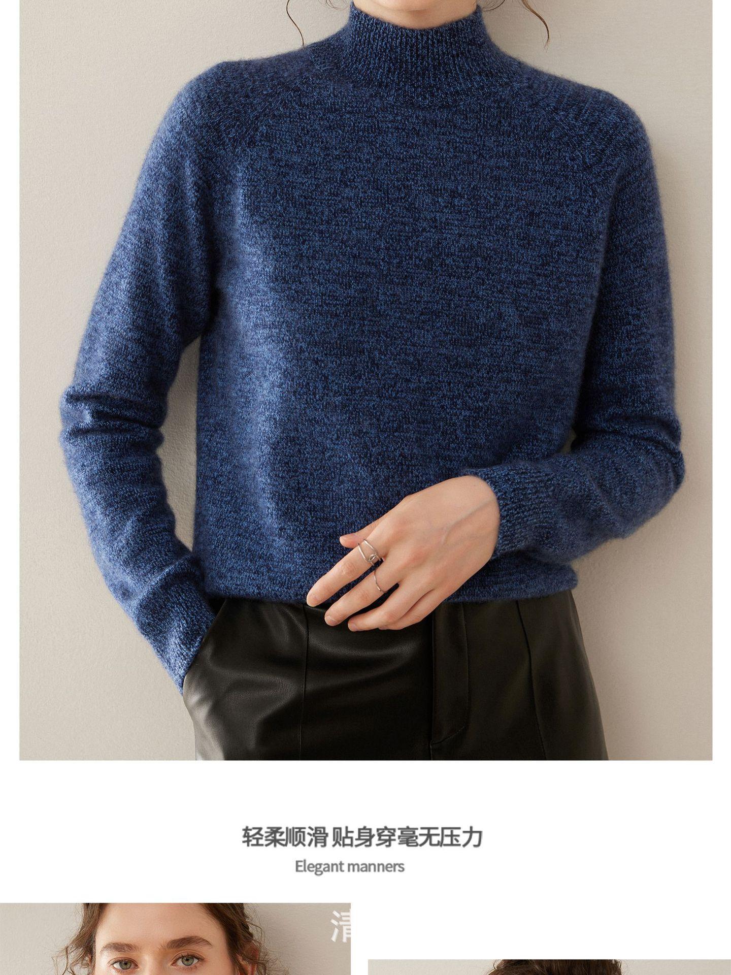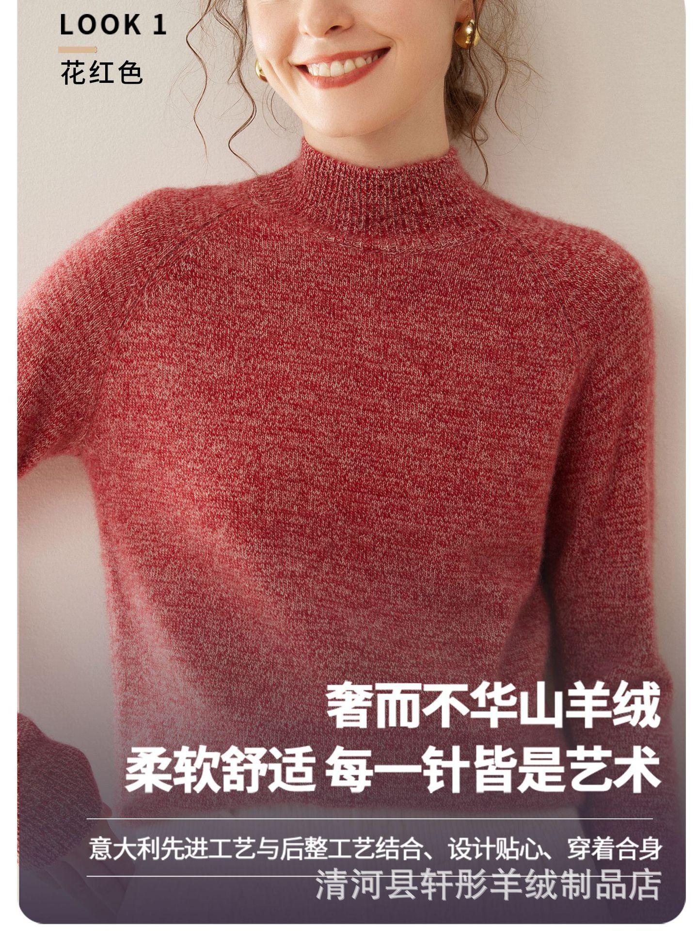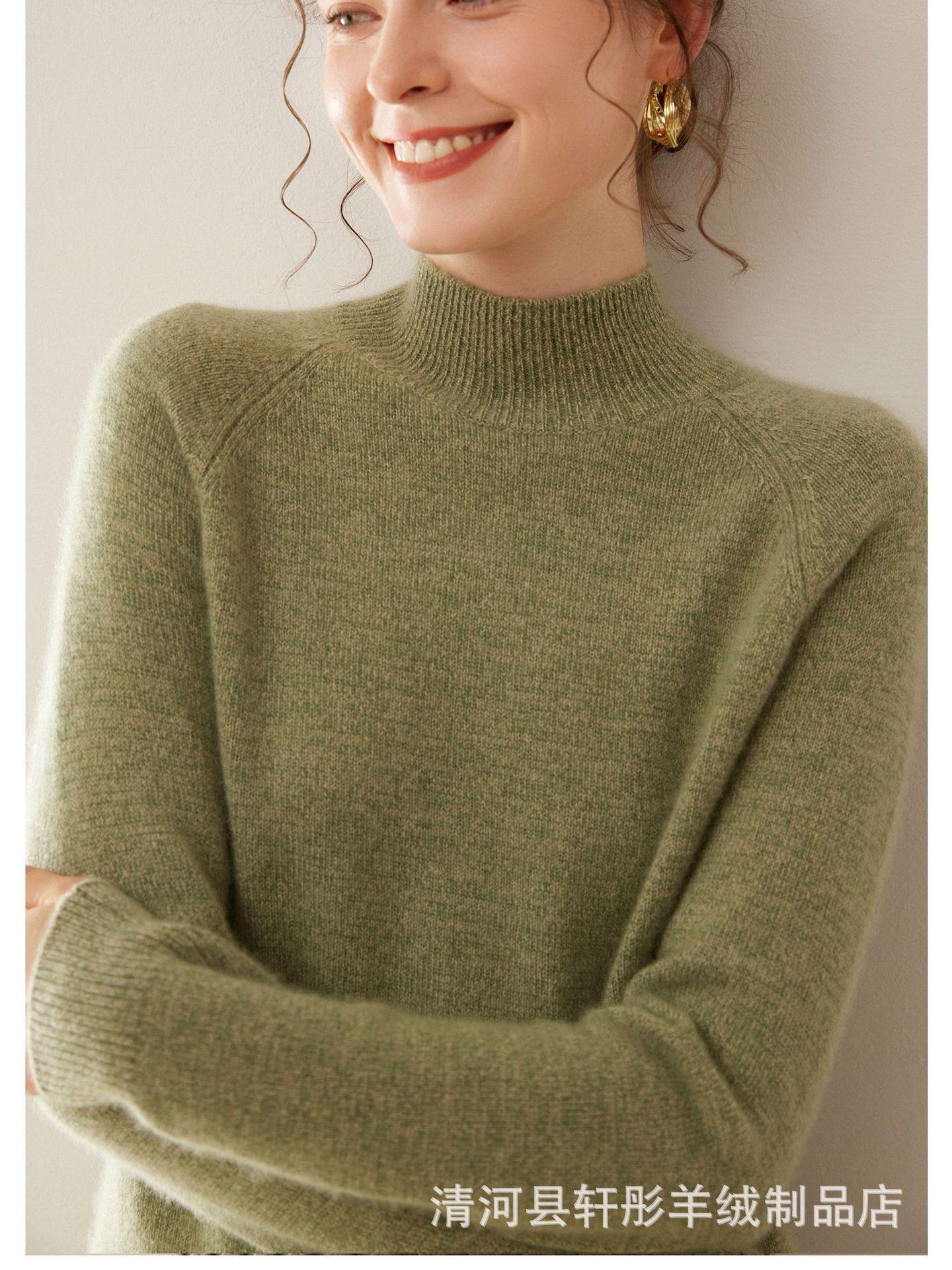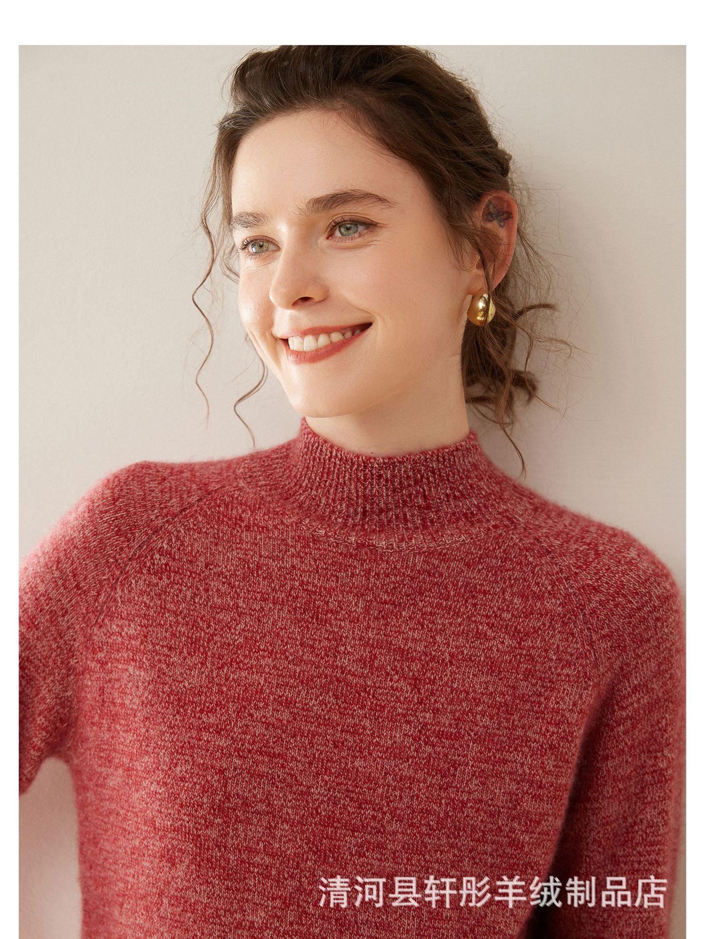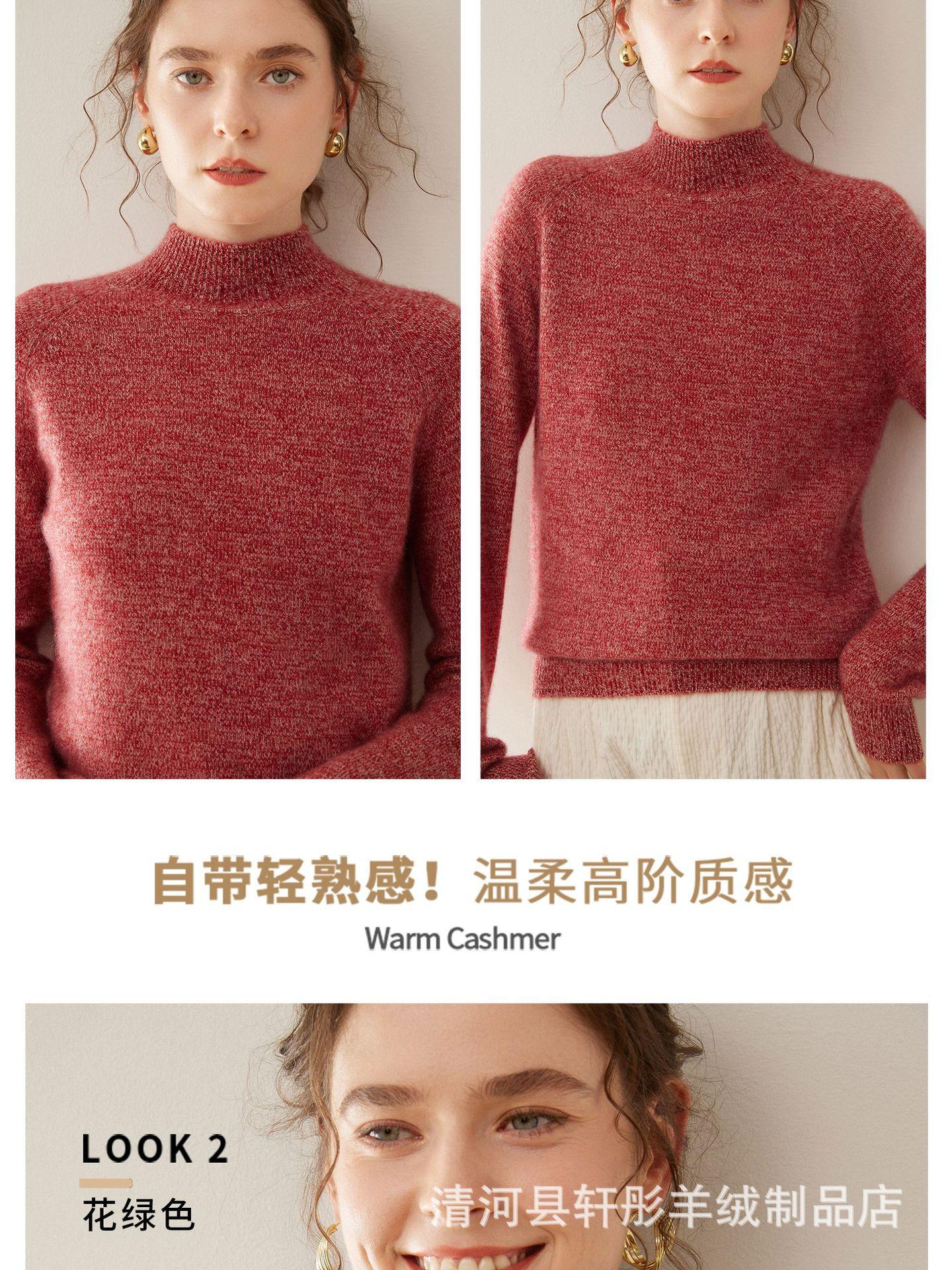 Nueva Camiseta Base de Punto de Cachemira Otoño/Invierno Moda Commute Versátil Holgada Adelgazante Cuello Medio Alto para Mujer Perezosa