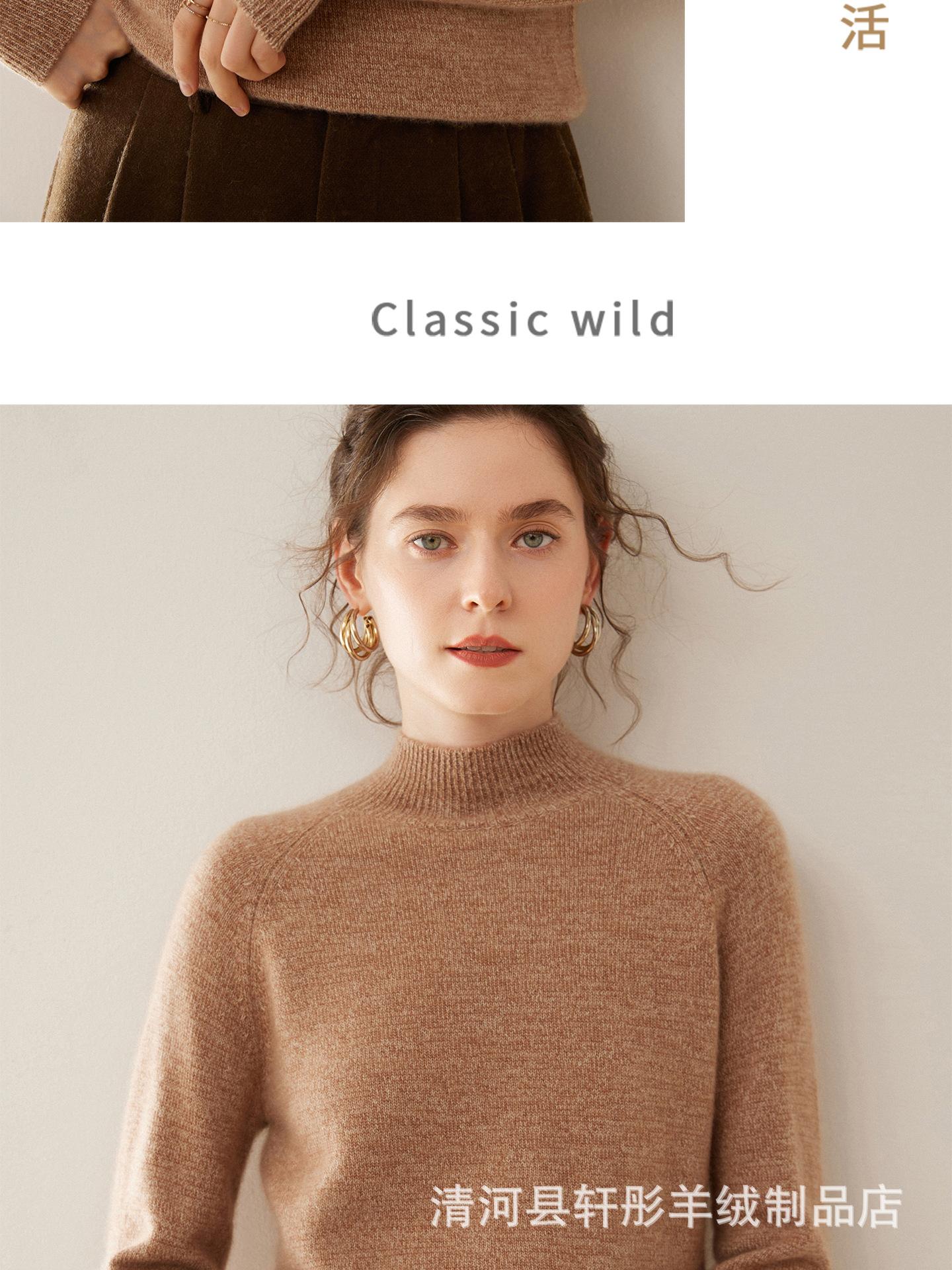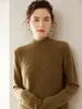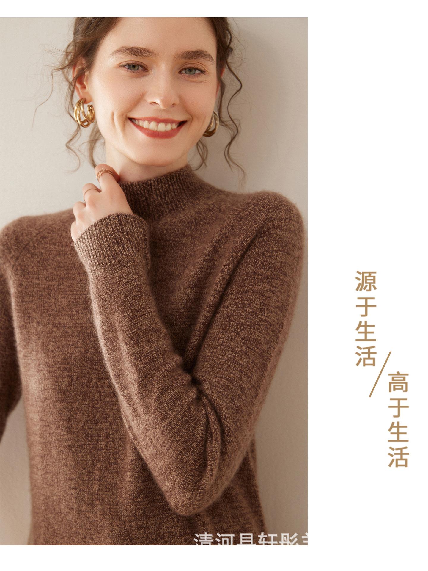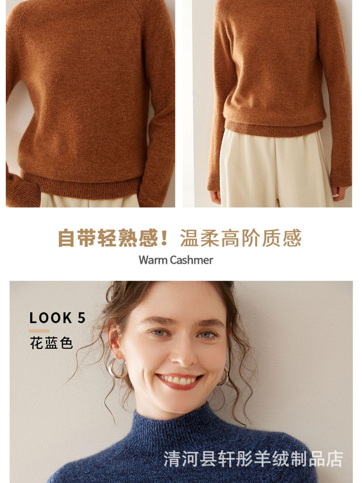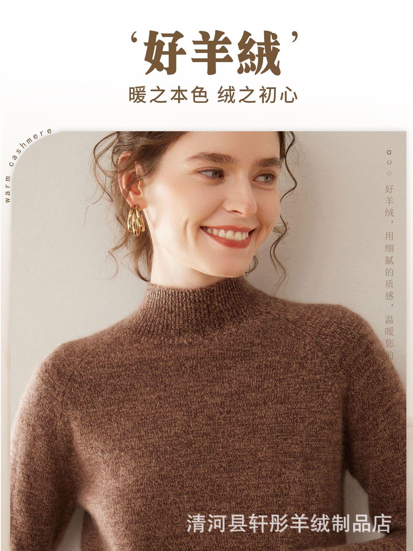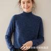 Nueva Camiseta Base de Punto de Cachemira Otoño/Invierno Moda Commute Versátil Holgada Adelgazante Cuello Medio Alto para Mujer Perezosa