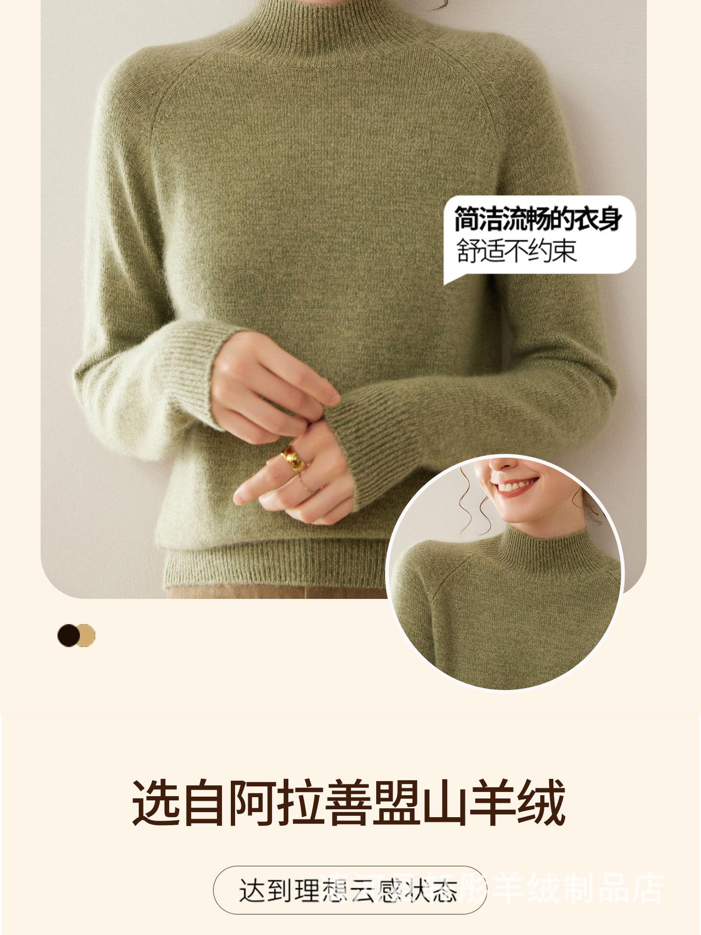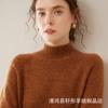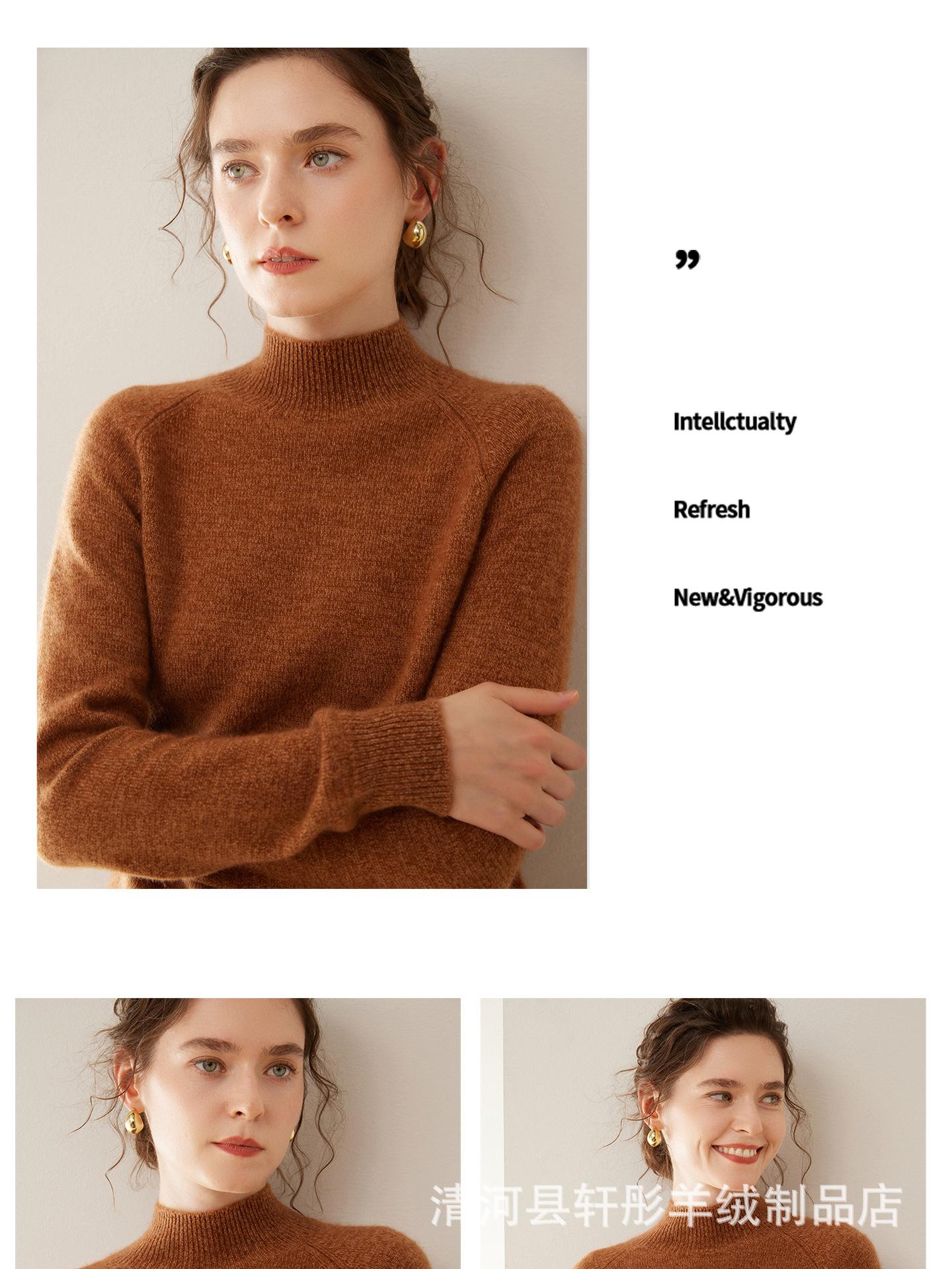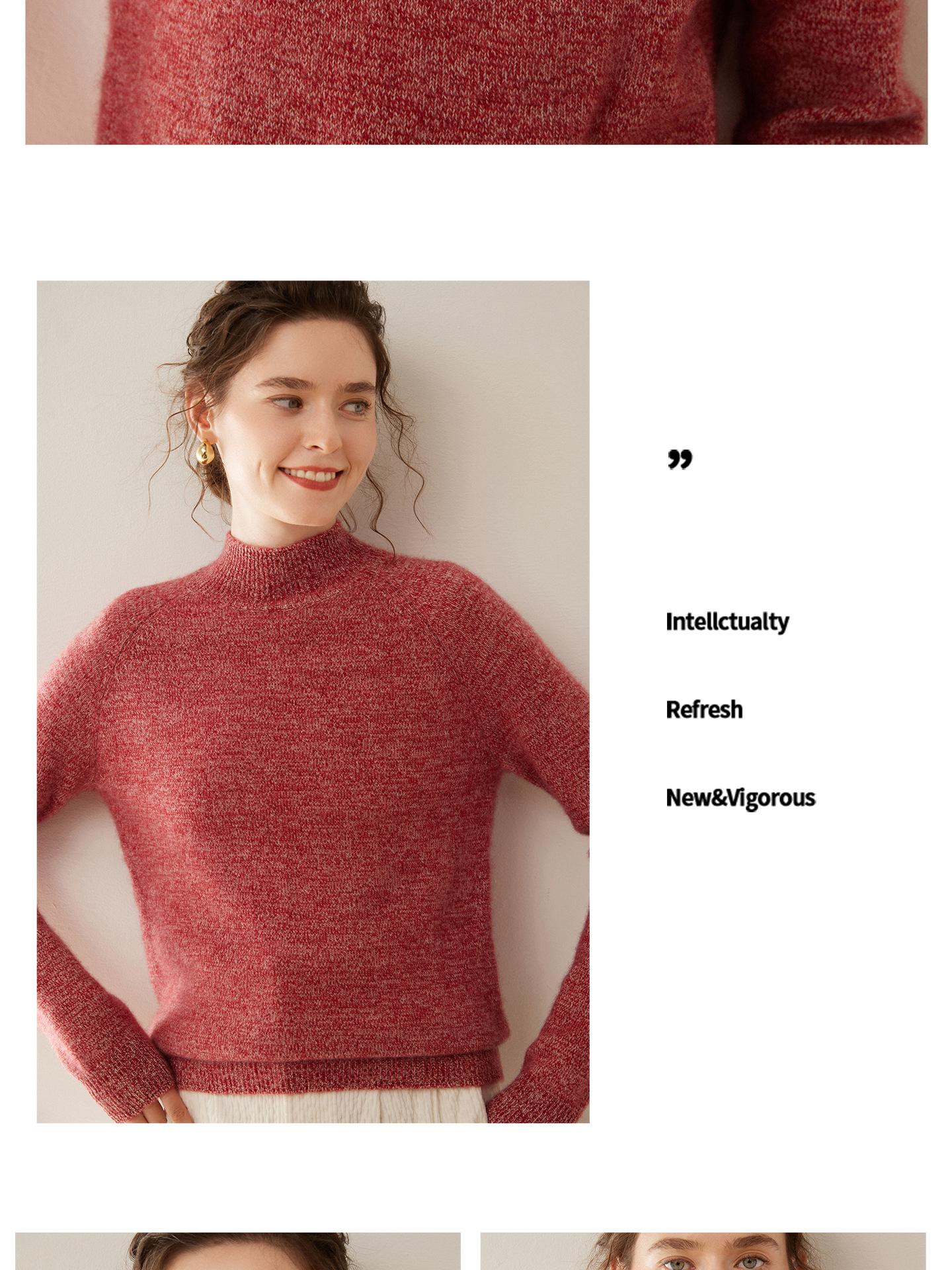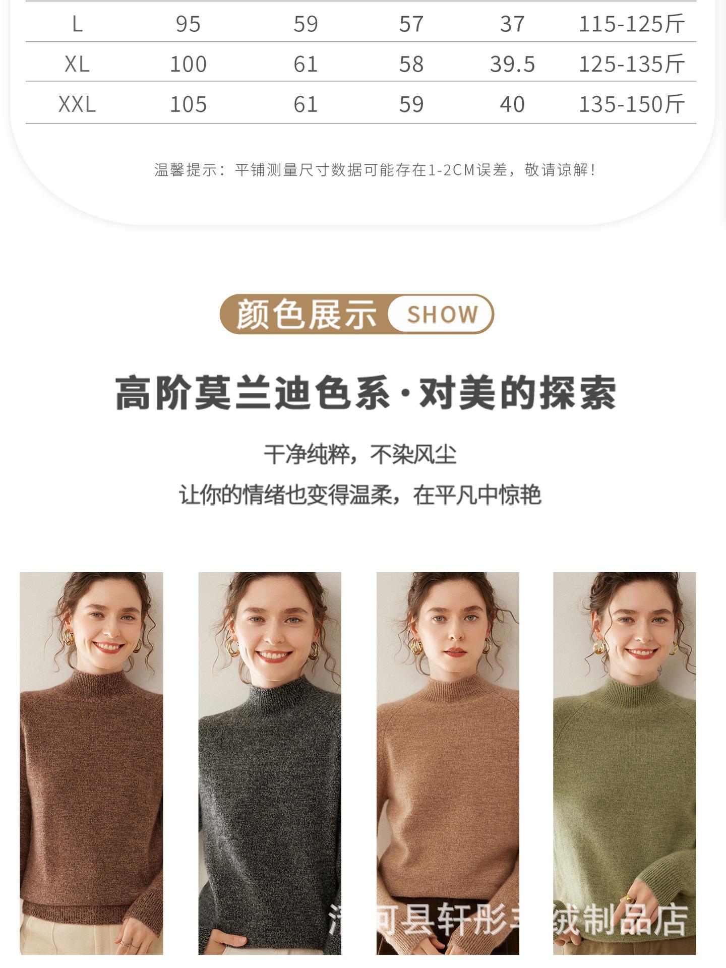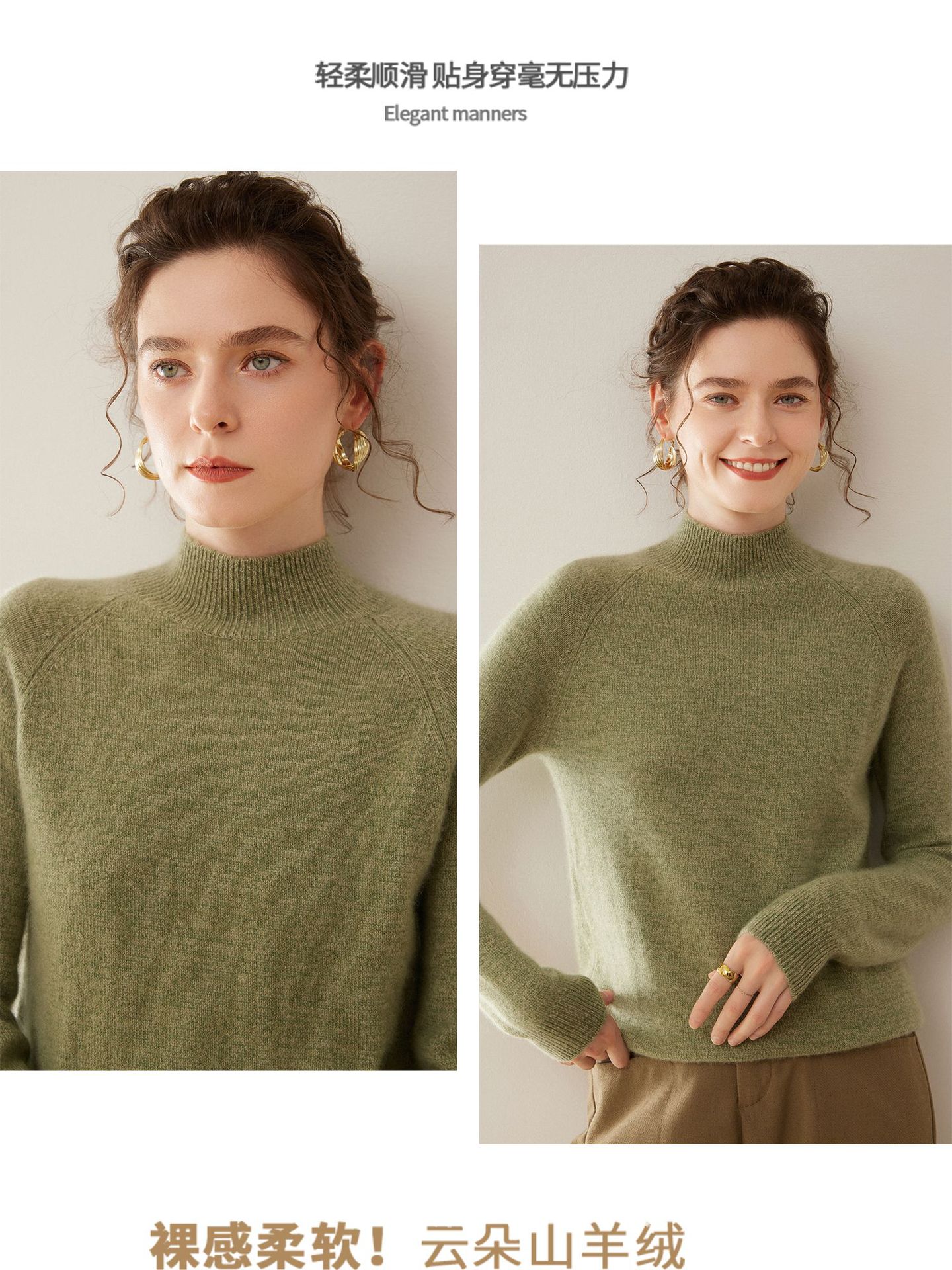 Nueva Camiseta Base de Punto de Cachemira Otoño/Invierno Moda Commute Versátil Holgada Adelgazante Cuello Medio Alto para Mujer Perezosa