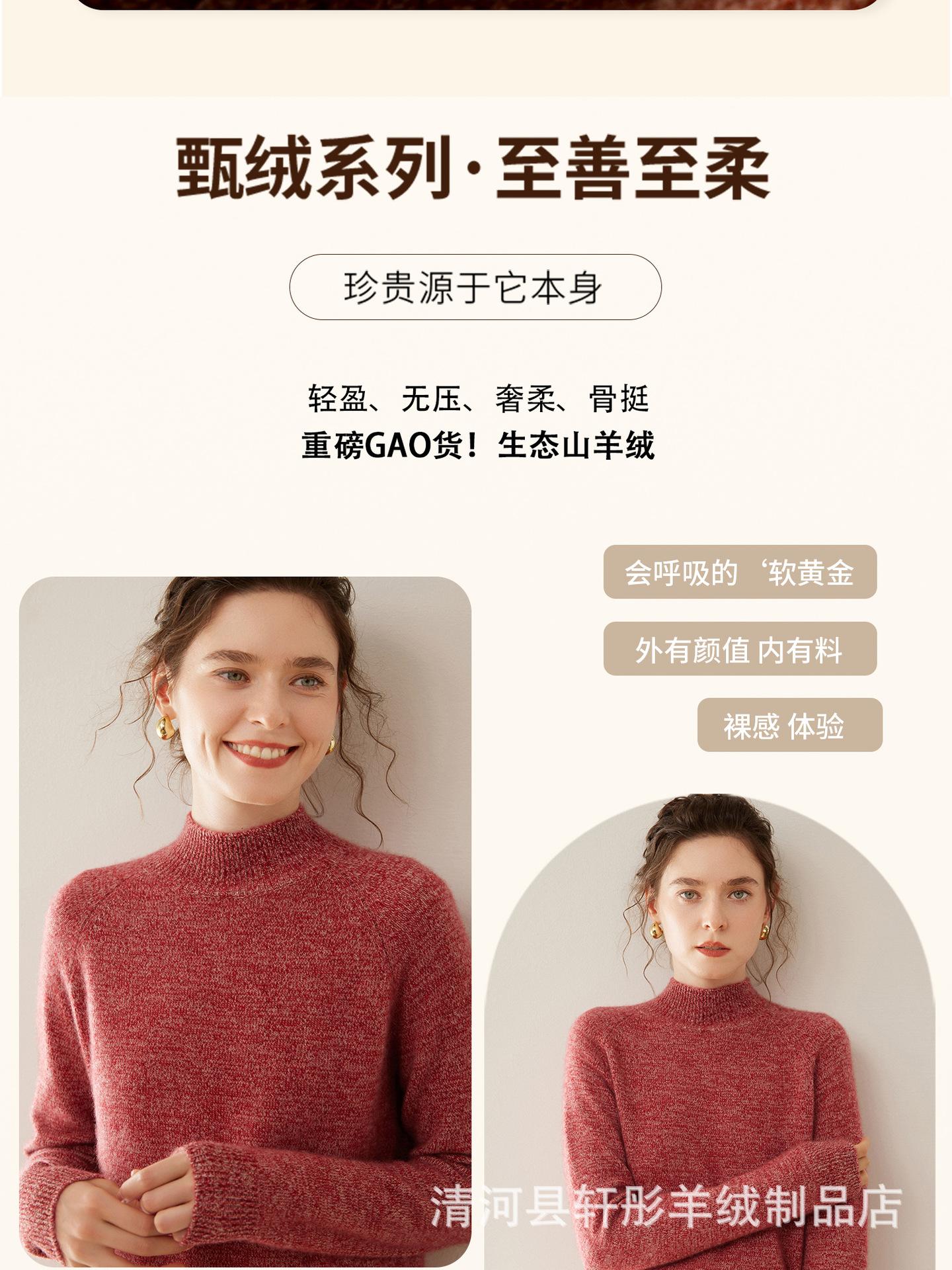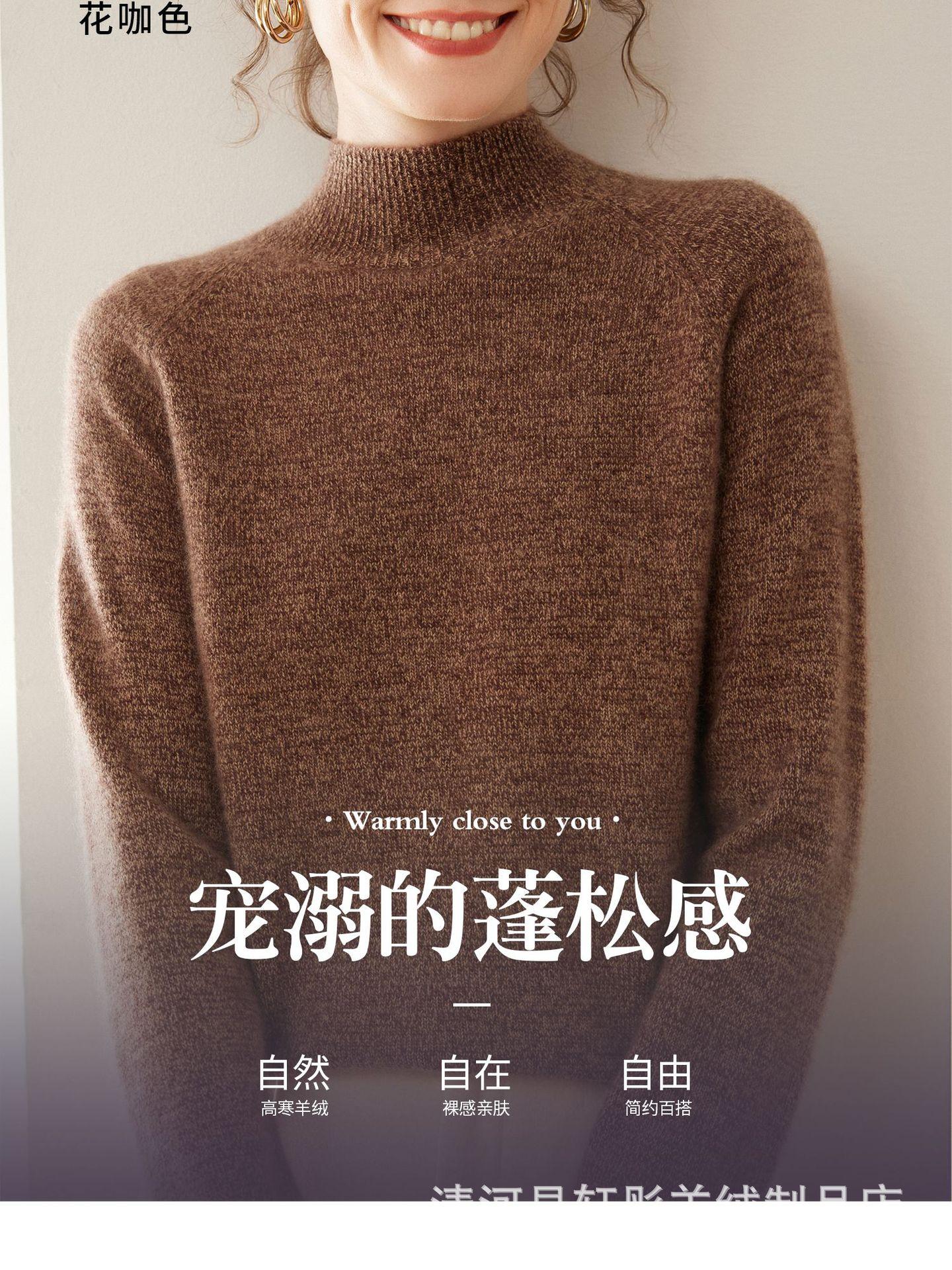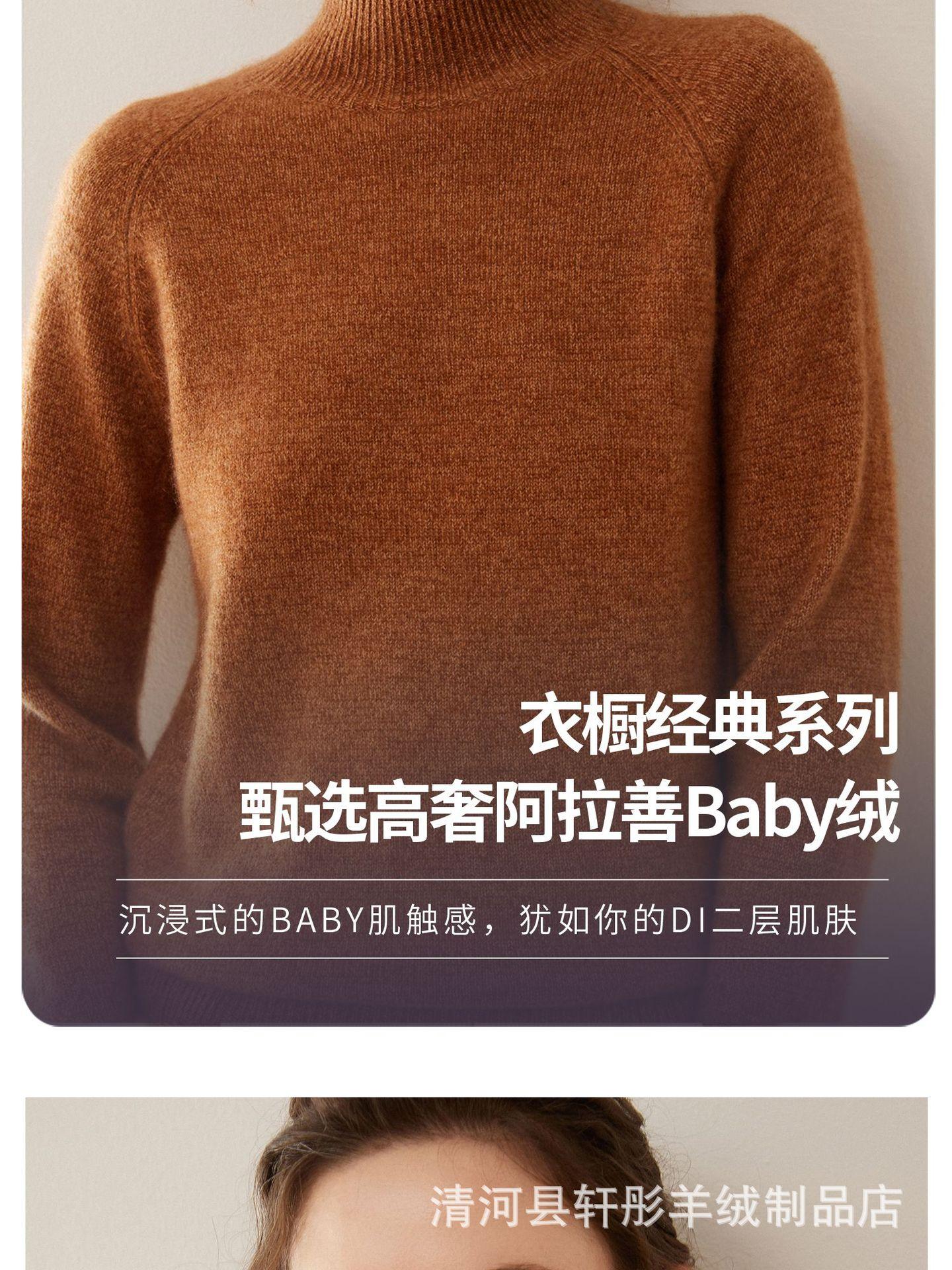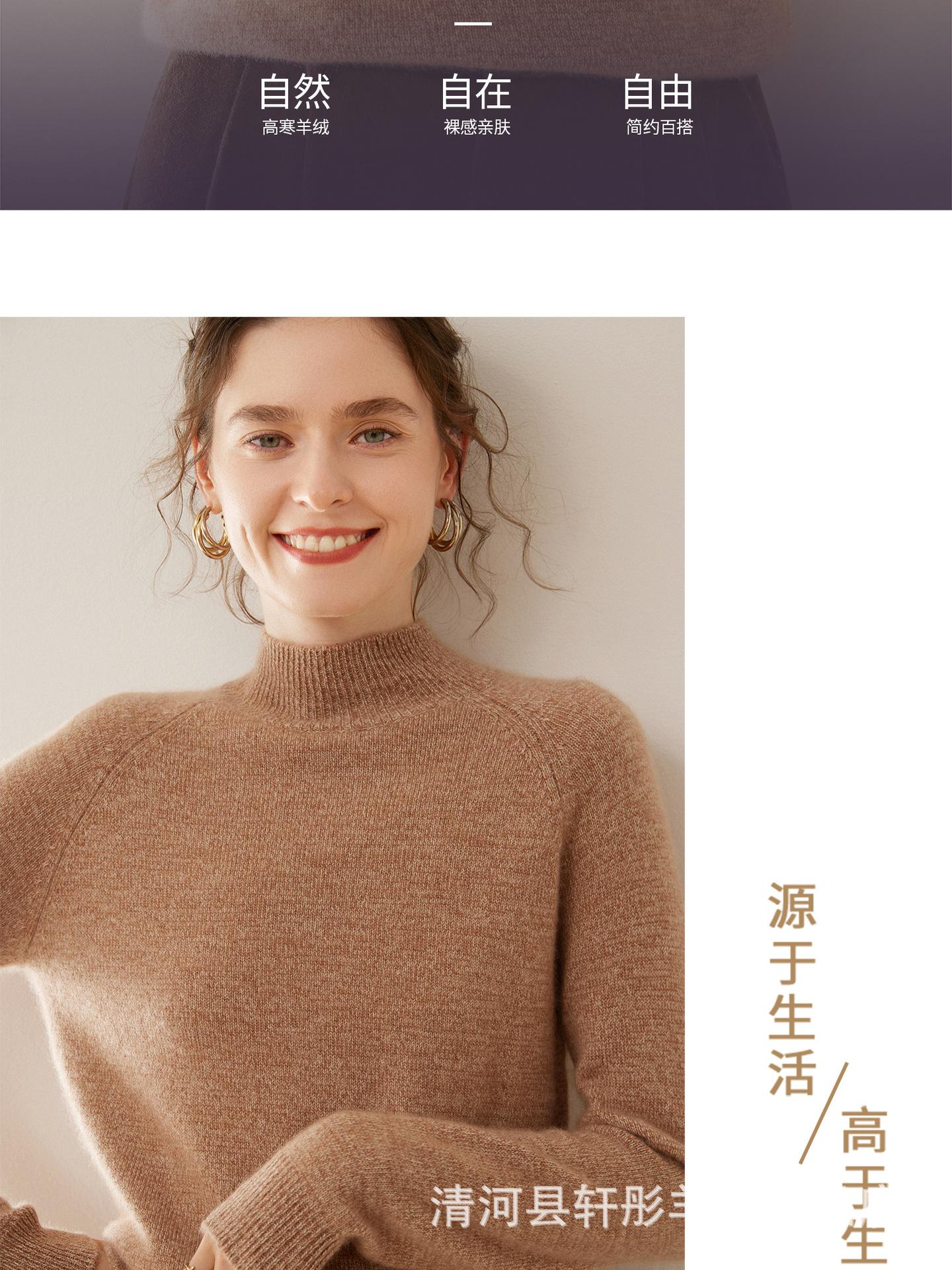Nueva Camiseta Base de Punto de Cachemira Otoño/Invierno Moda Commute Versátil Holgada Adelgazante Cuello Medio Alto para Mujer Perezosa
