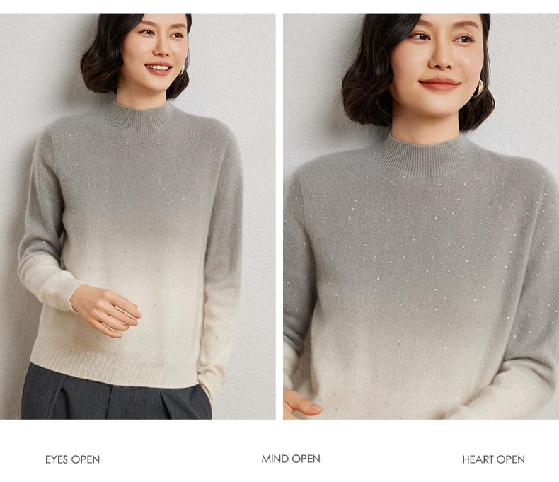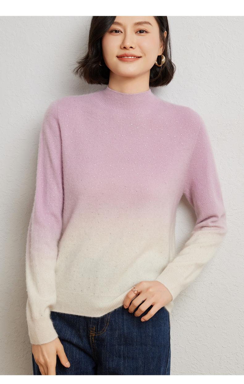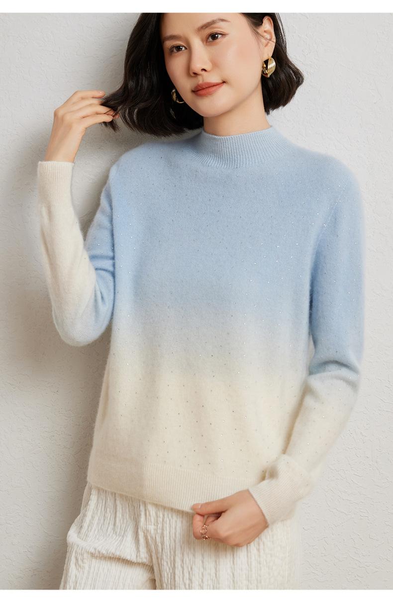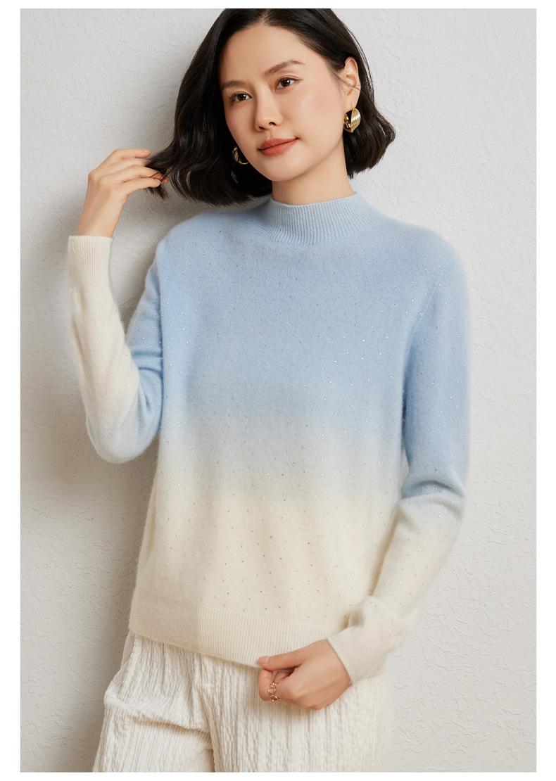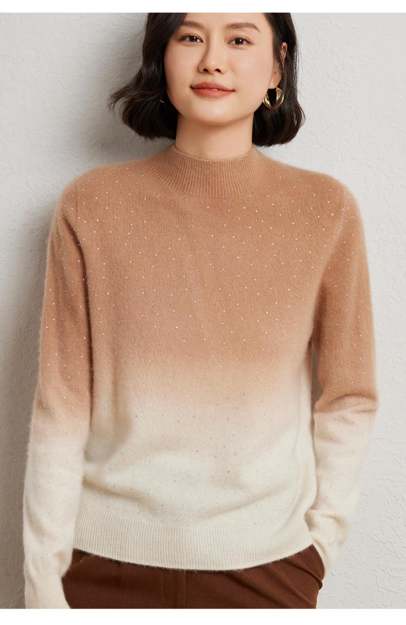 Otoño/Invierno 2025 Nueva Sudadera Tie-Dye con Pedrería para Mujer Primera Línea Prêt-à-Porter Semi-Alta Degradada Tejido de Punto Mezcla de Cachemira Capa Base