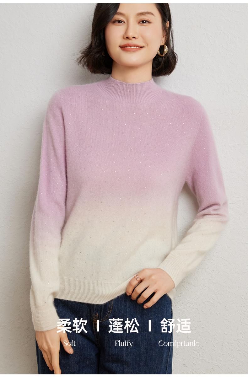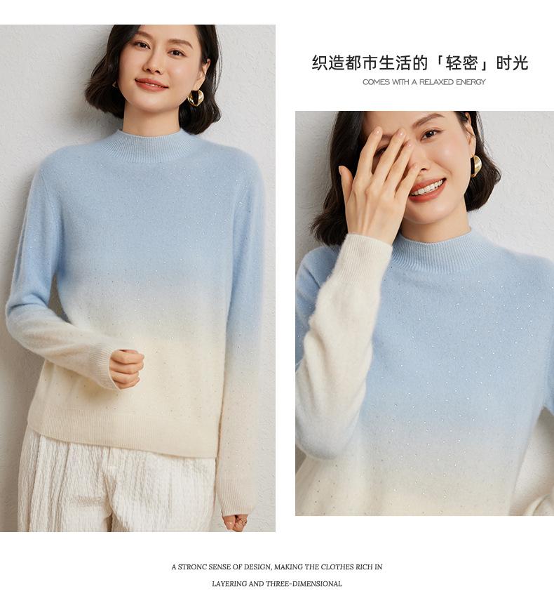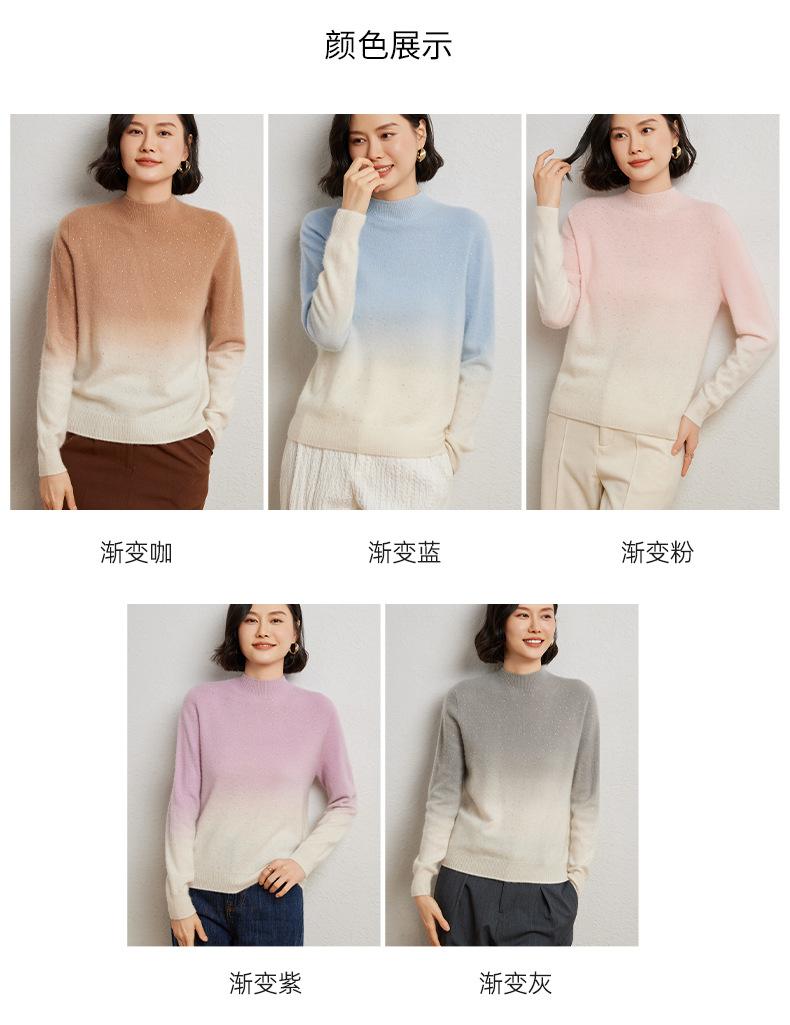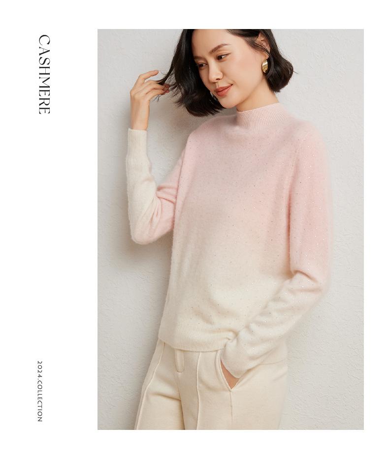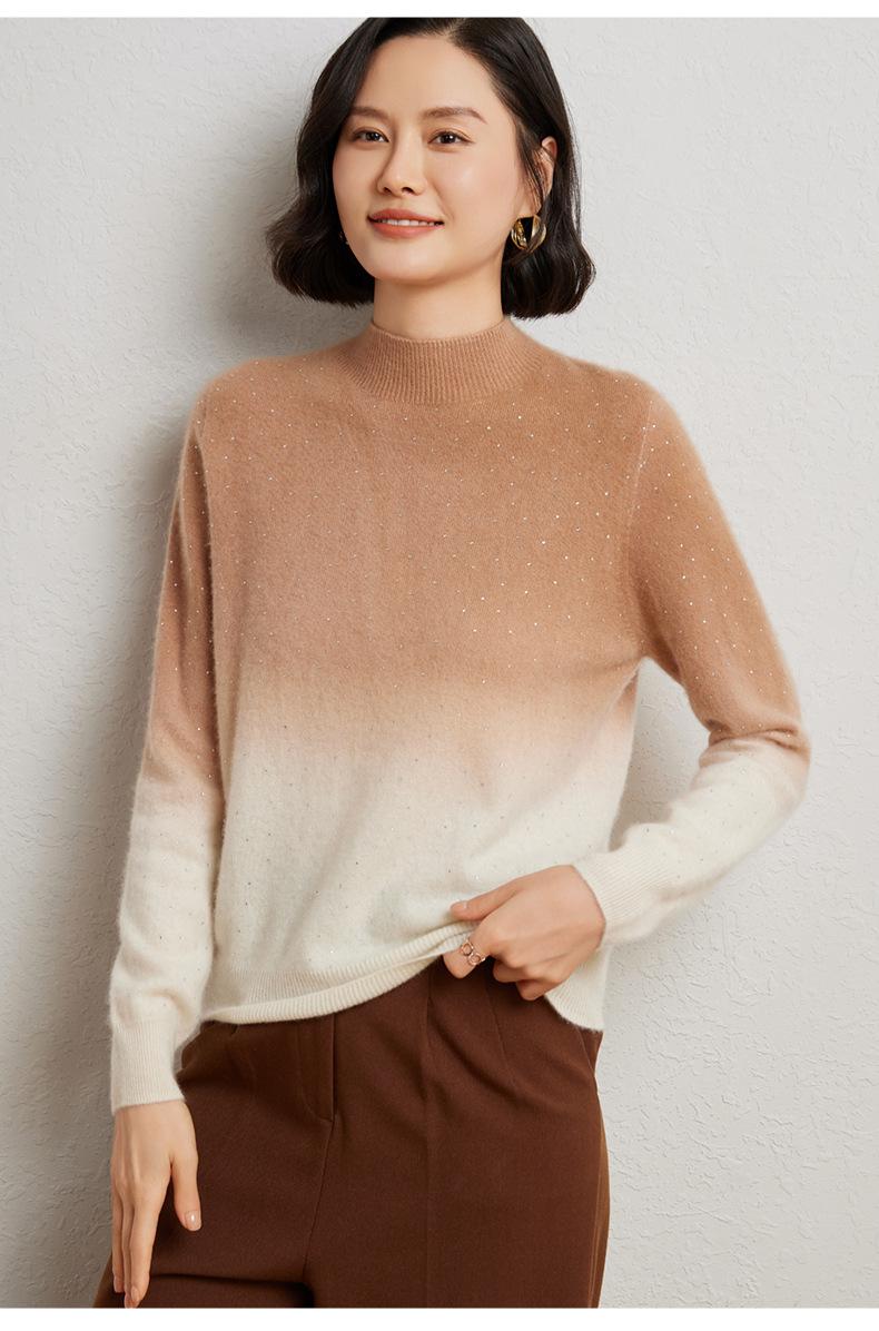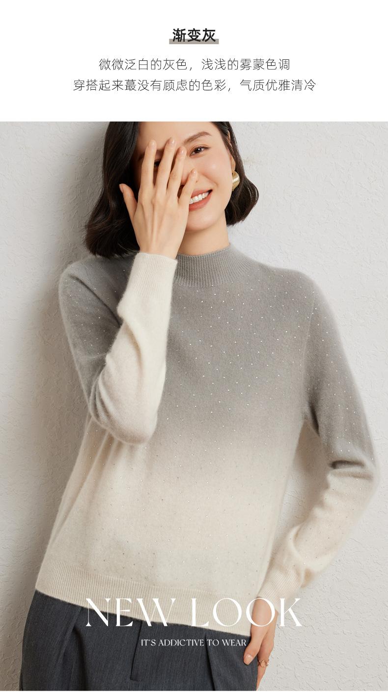 Otoño/Invierno 2025 Nueva Sudadera Tie-Dye con Pedrería para Mujer Primera Línea Prêt-à-Porter Semi-Alta Degradada Tejido de Punto Mezcla de Cachemira Capa Base