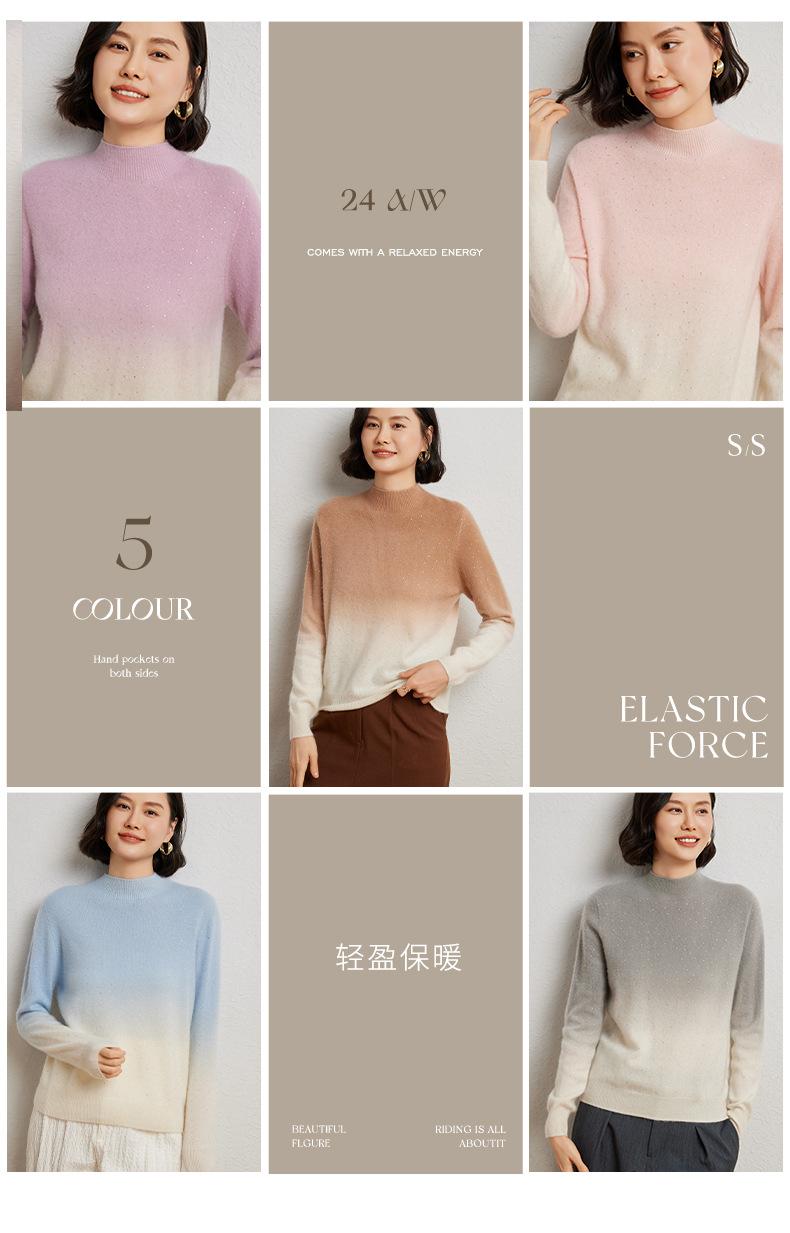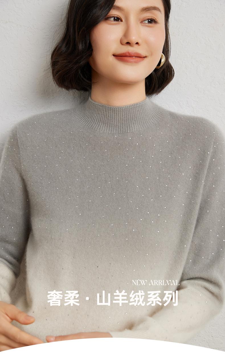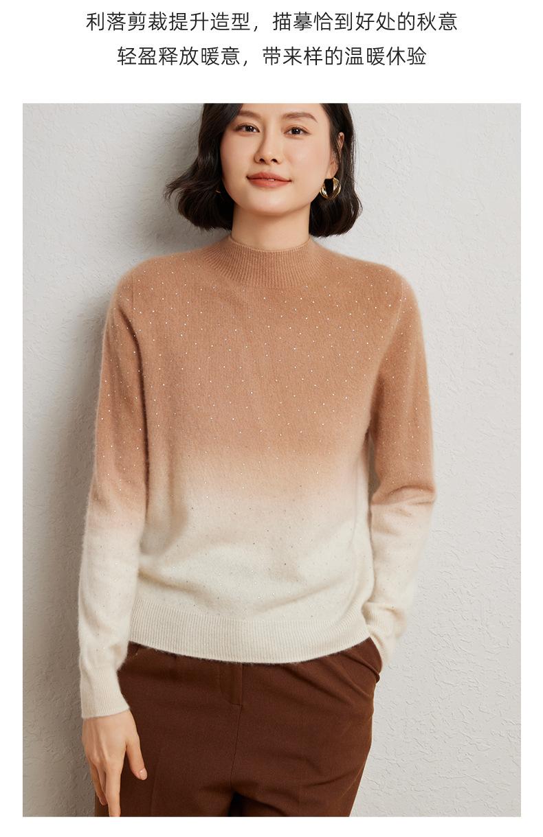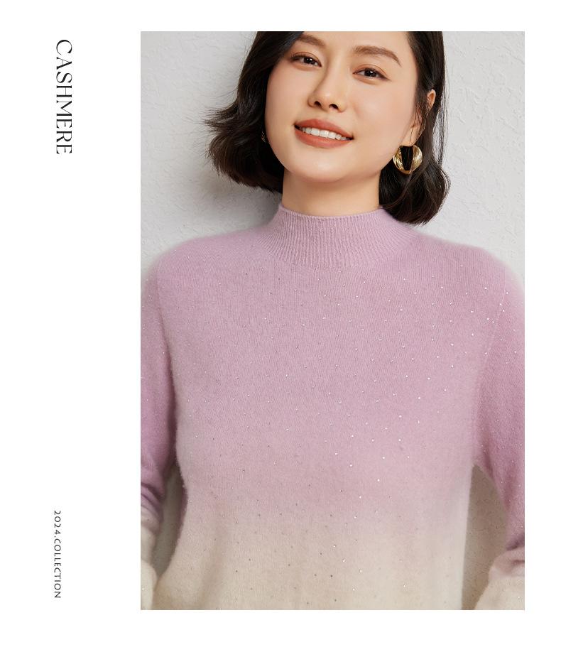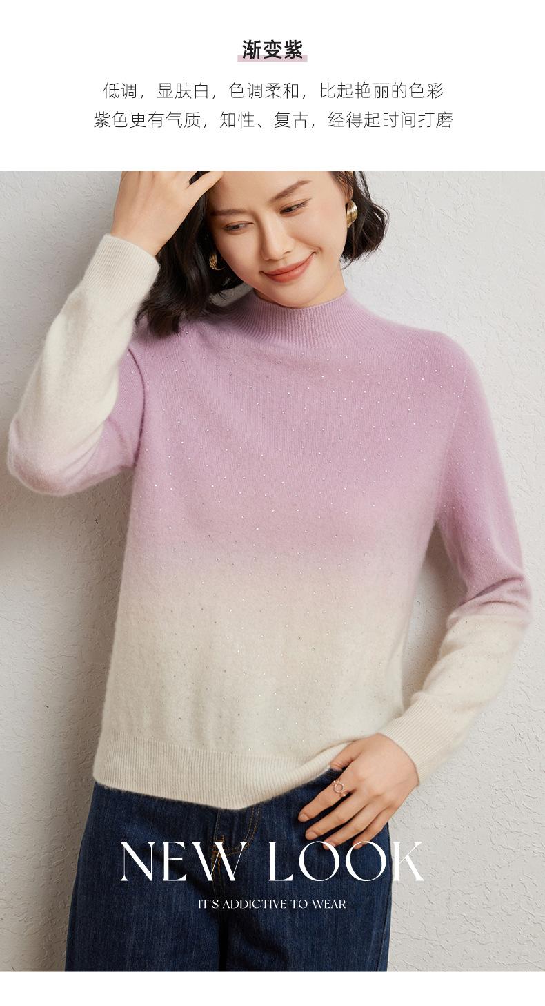 Otoño/Invierno 2025 Nueva Sudadera Tie-Dye con Pedrería para Mujer Primera Línea Prêt-à-Porter Semi-Alta Degradada Tejido de Punto Mezcla de Cachemira Capa Base