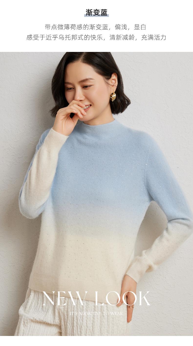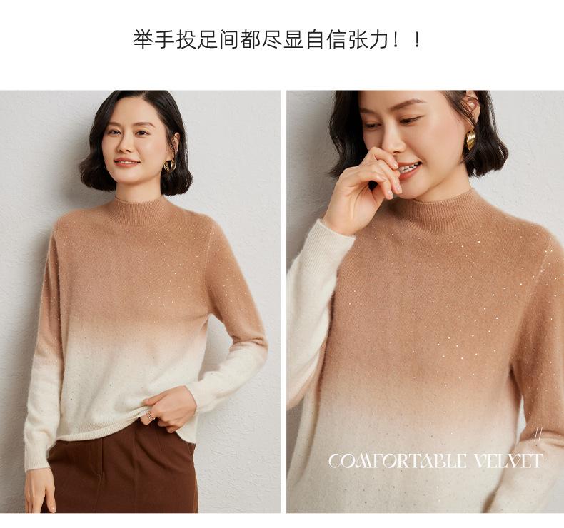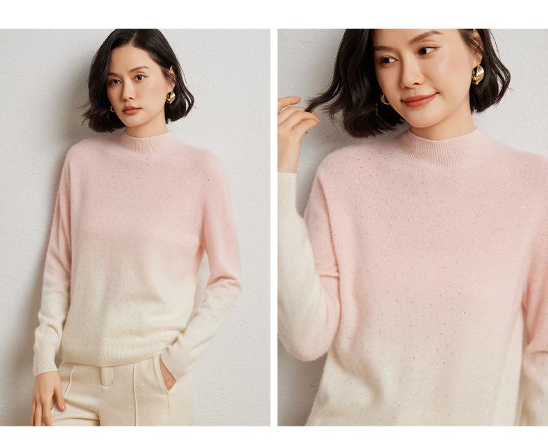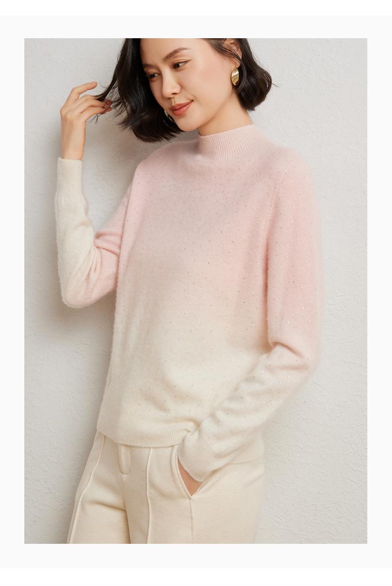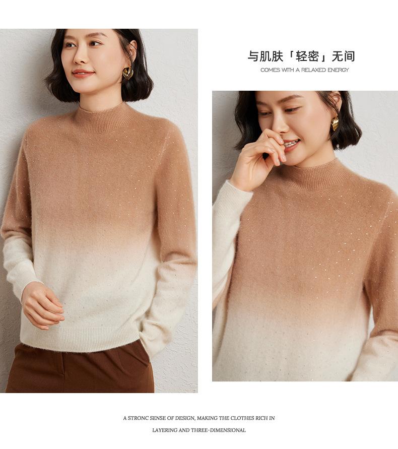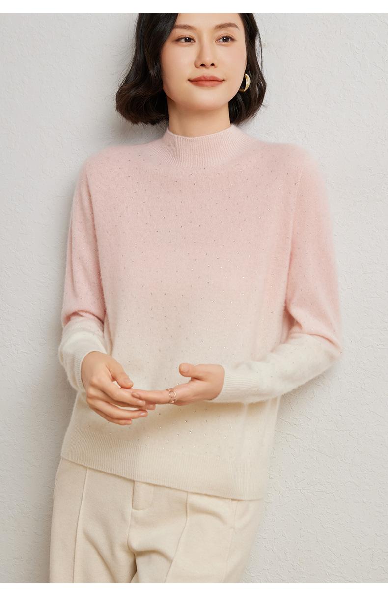 Otoño/Invierno 2025 Nueva Sudadera Tie-Dye con Pedrería para Mujer Primera Línea Prêt-à-Porter Semi-Alta Degradada Tejido de Punto Mezcla de Cachemira Capa Base