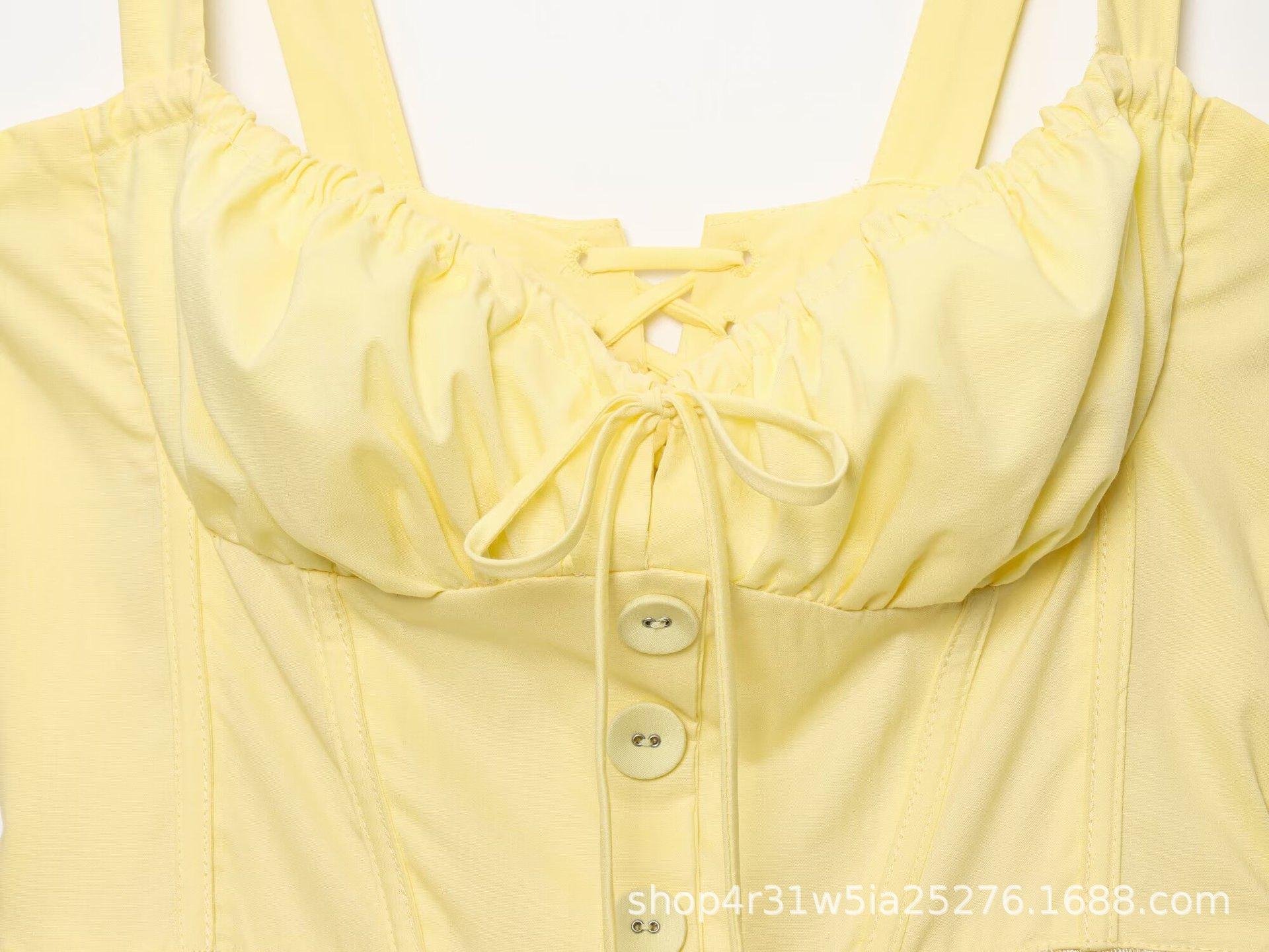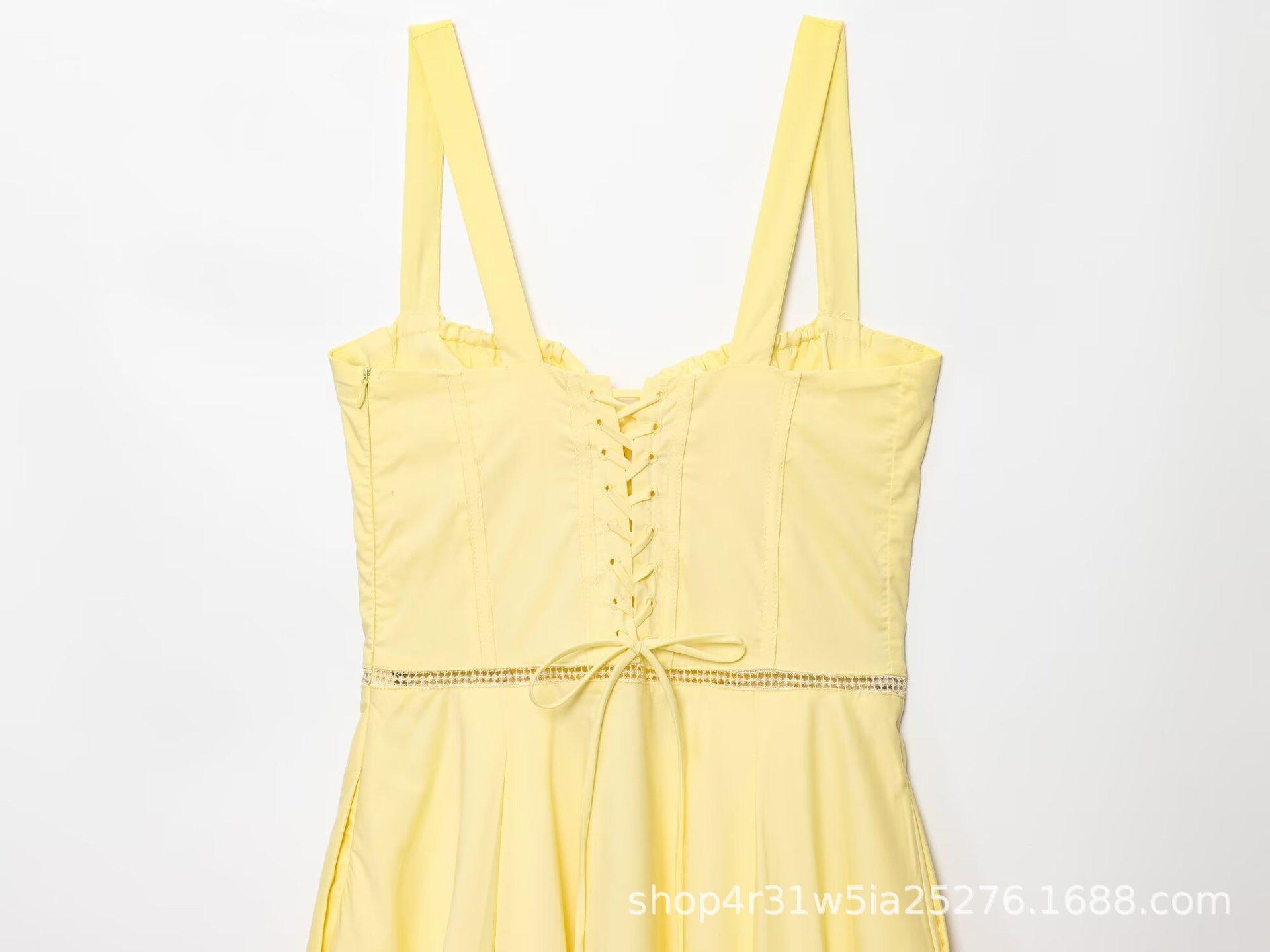 Estilo Europeo y Americano 2025 Nuevo Vestido Versátil de Verano para Mujer con Empalme Francés, Tirantes de Espalda y Cinturón