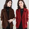 Abrigo de otoño de alta gama estilo otoño invierno 2025 nuevo estilo caliente talla grande traje de mamá abrigo corto de lana bermellón