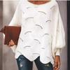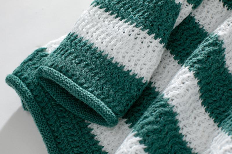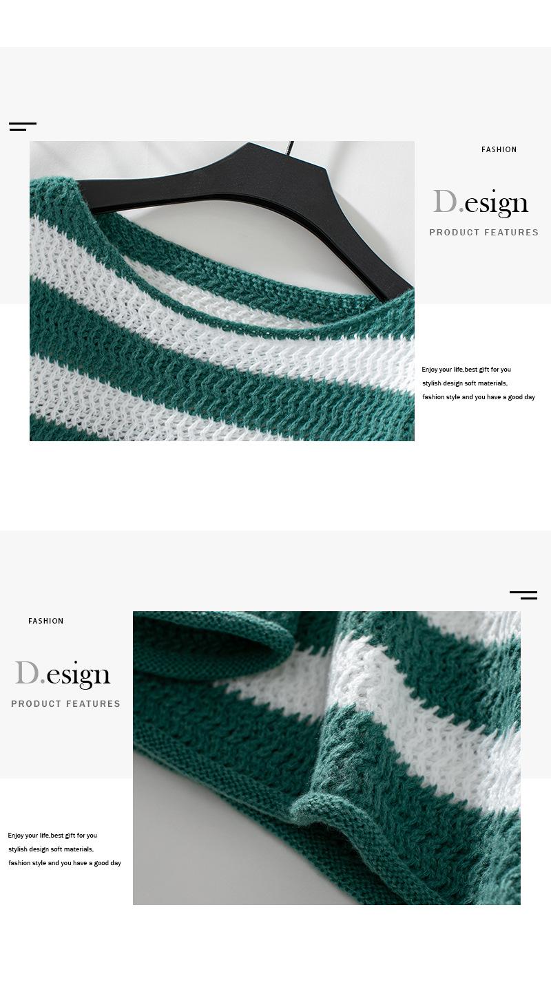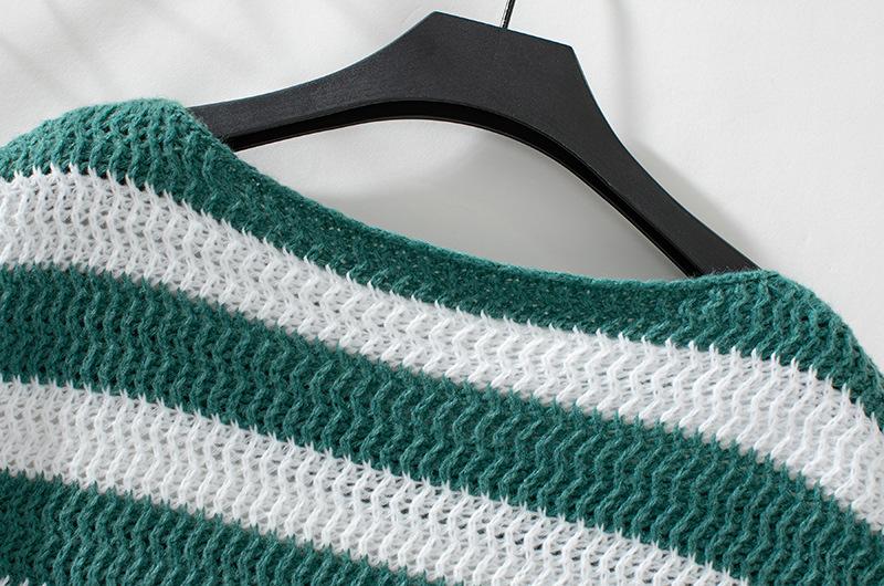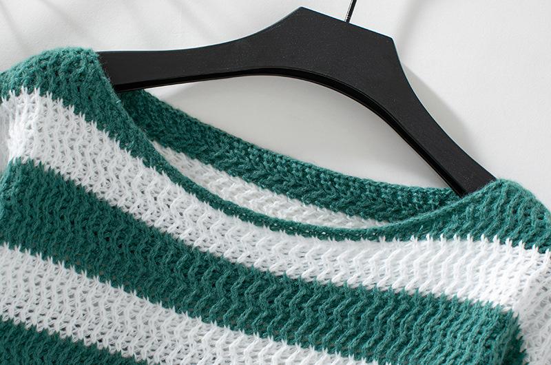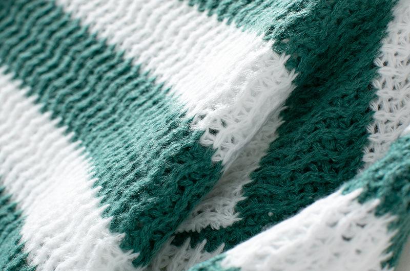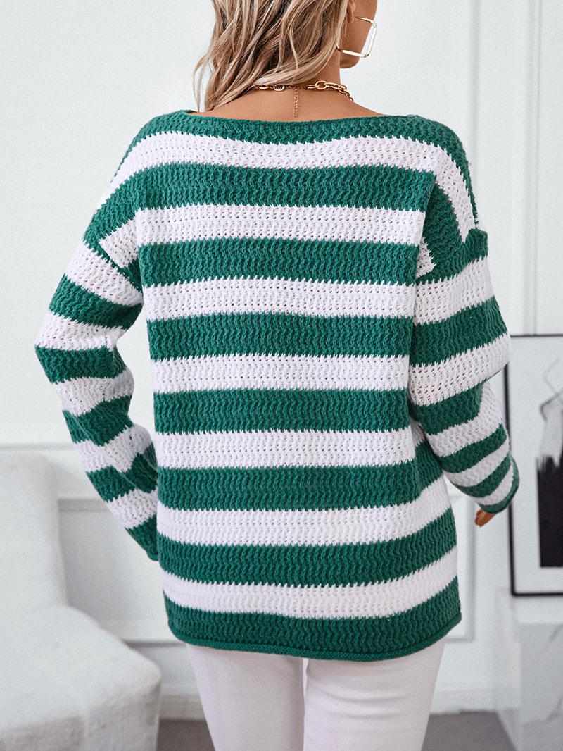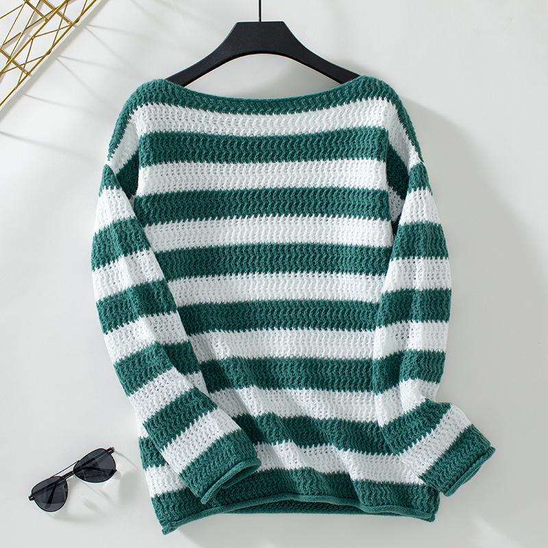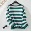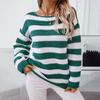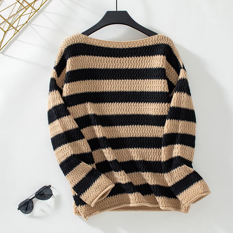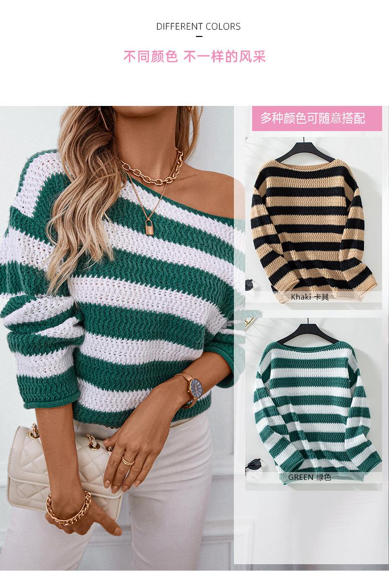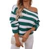 Suéteres Transfronterizos de Otoño e Invierno Europeos y Americanos Amazon Sueltos Casuales Cuello de un Hombro Manga Larga Suéteres de Comercio Exterior Suéteres a Rayas para Mujer