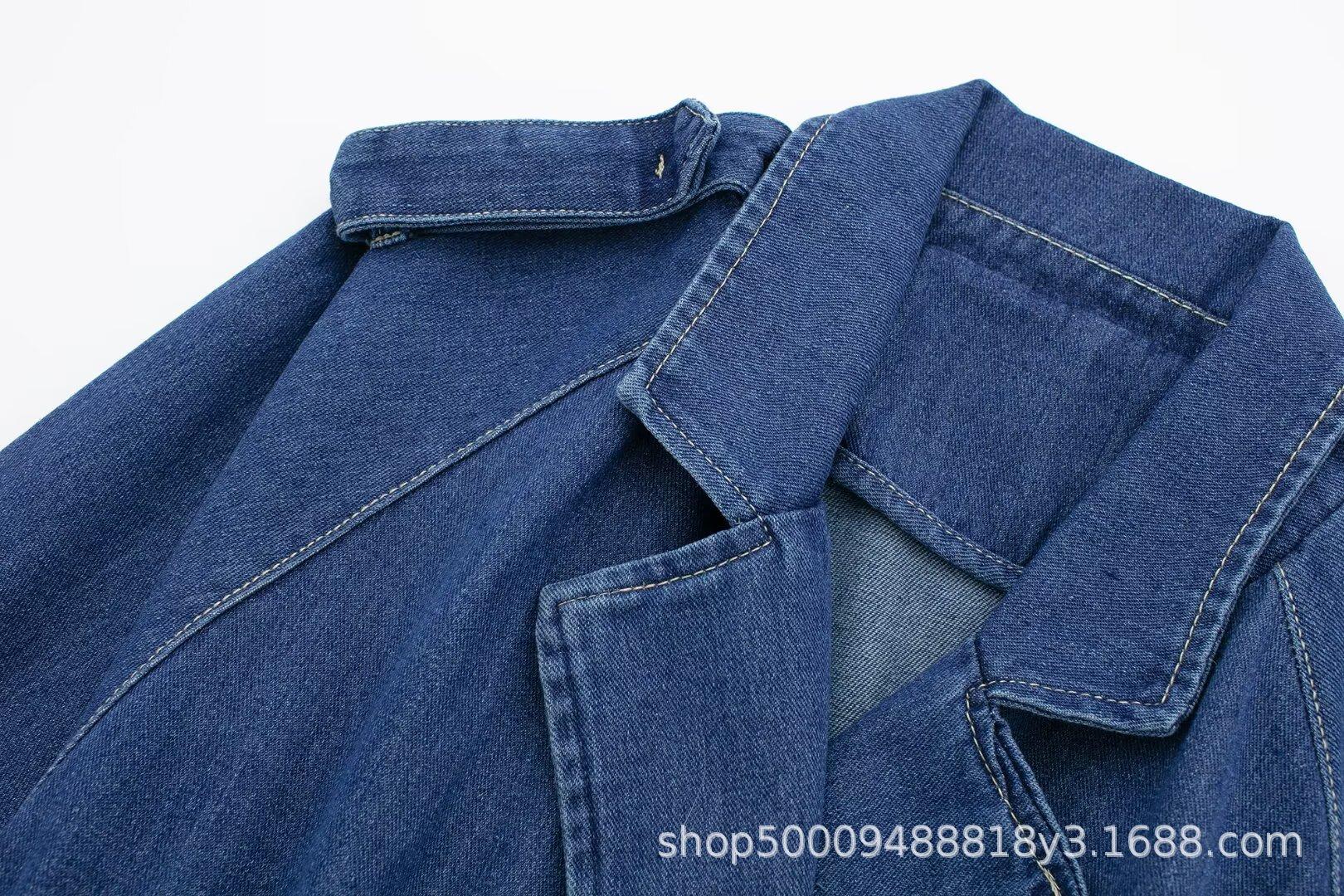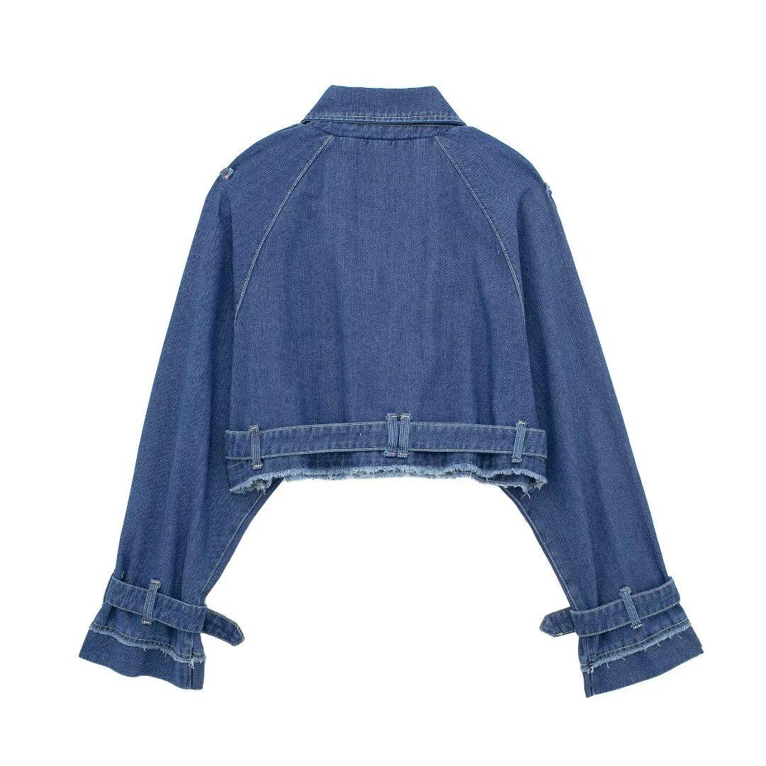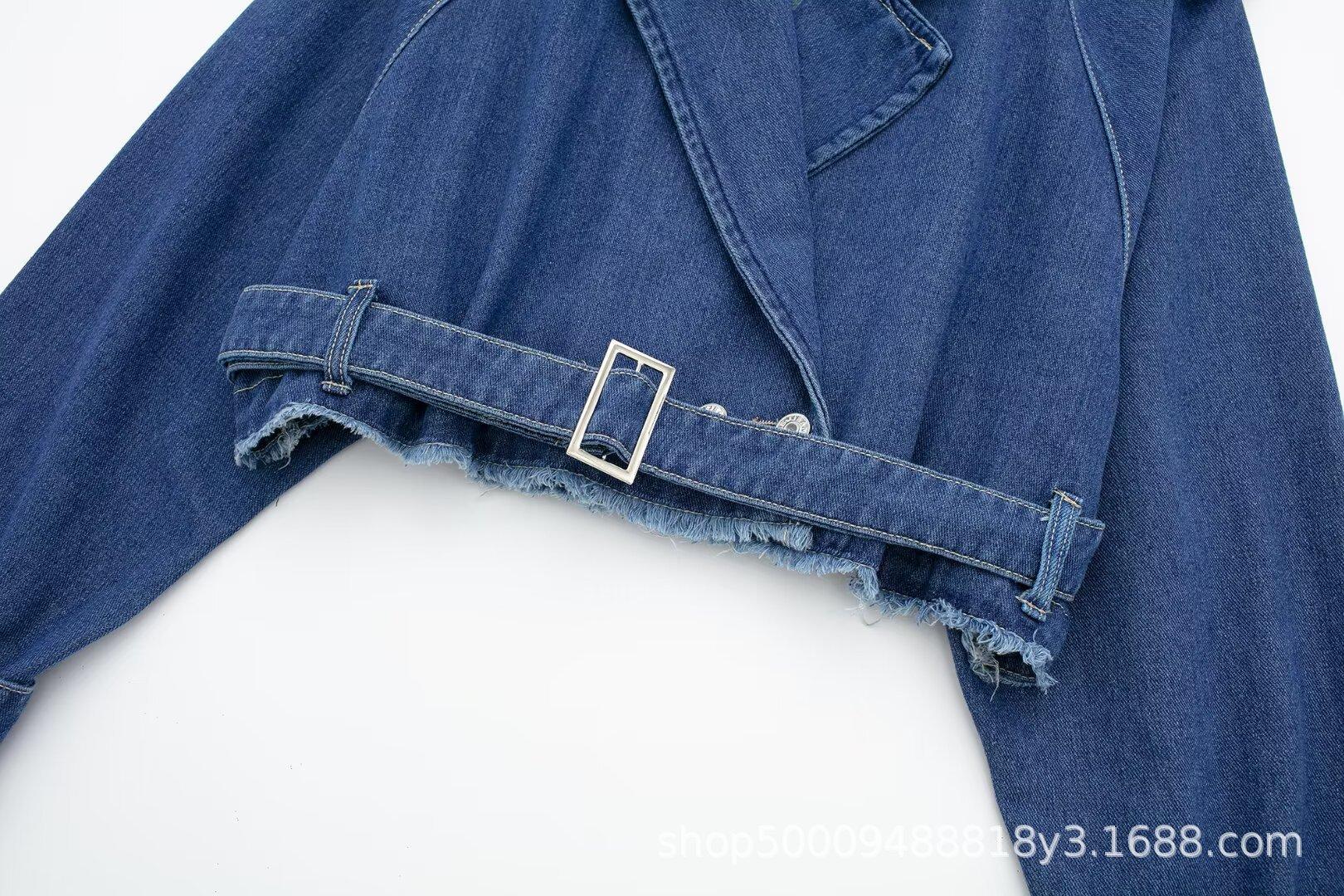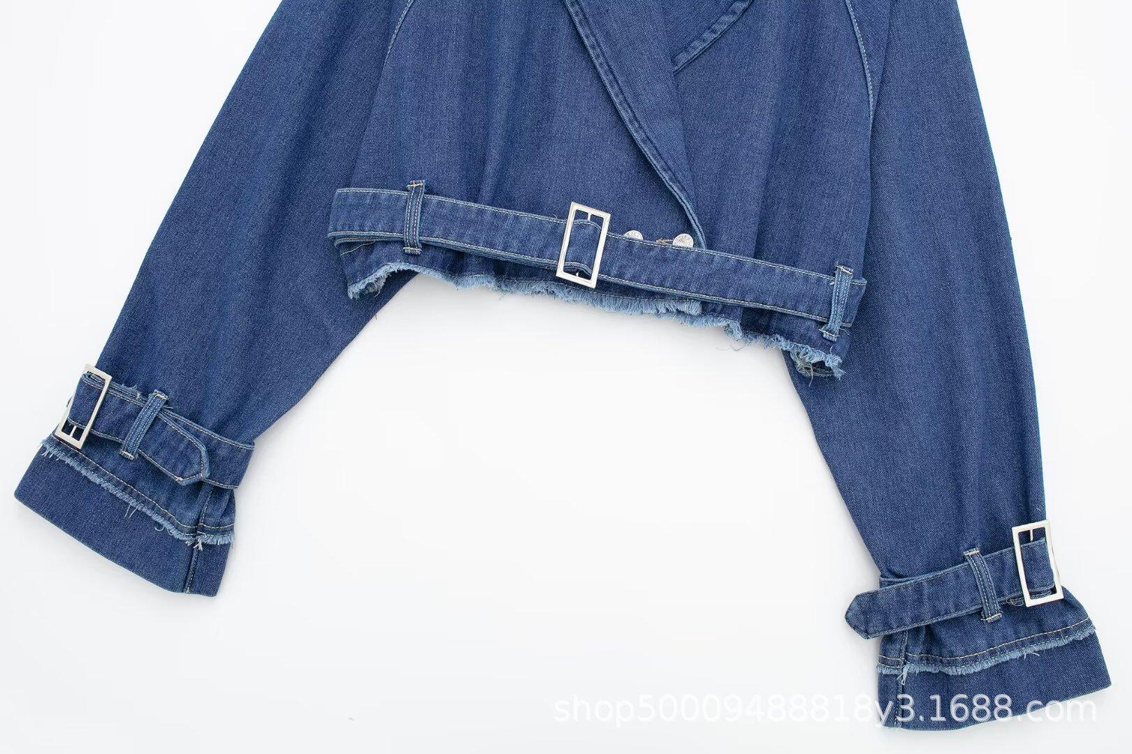 Comercio exterior transfronterizo otoño nuevo estilo europeo y americano retro con cinturón solapa suelta chaqueta corta de mezclilla lavada