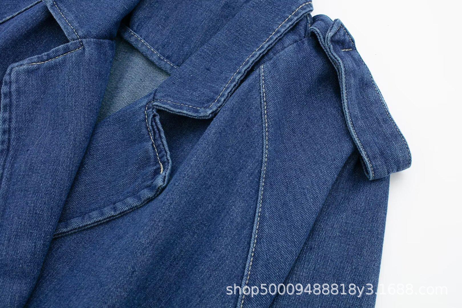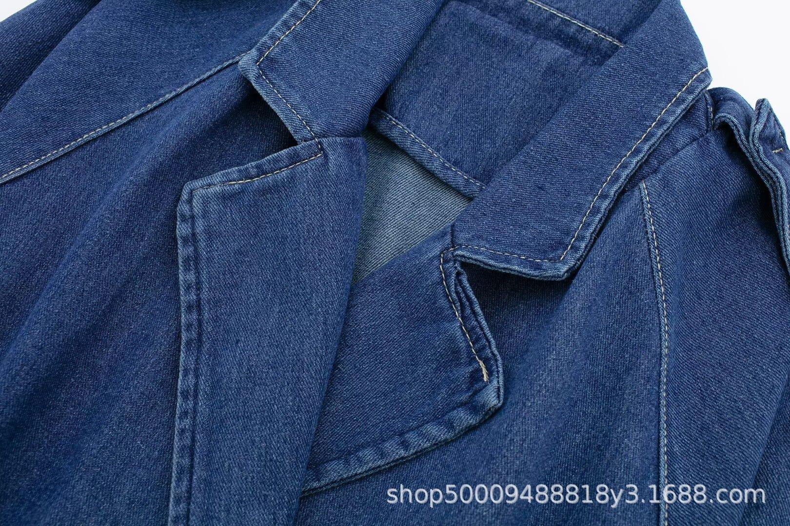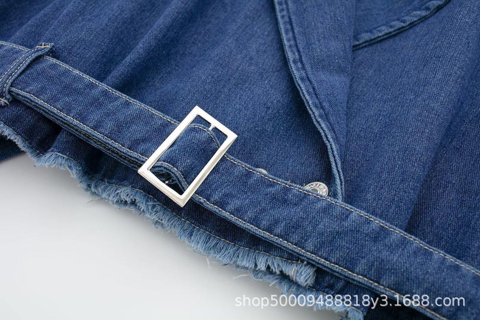 Comercio exterior transfronterizo otoño nuevo estilo europeo y americano retro con cinturón solapa suelta chaqueta corta de mezclilla lavada