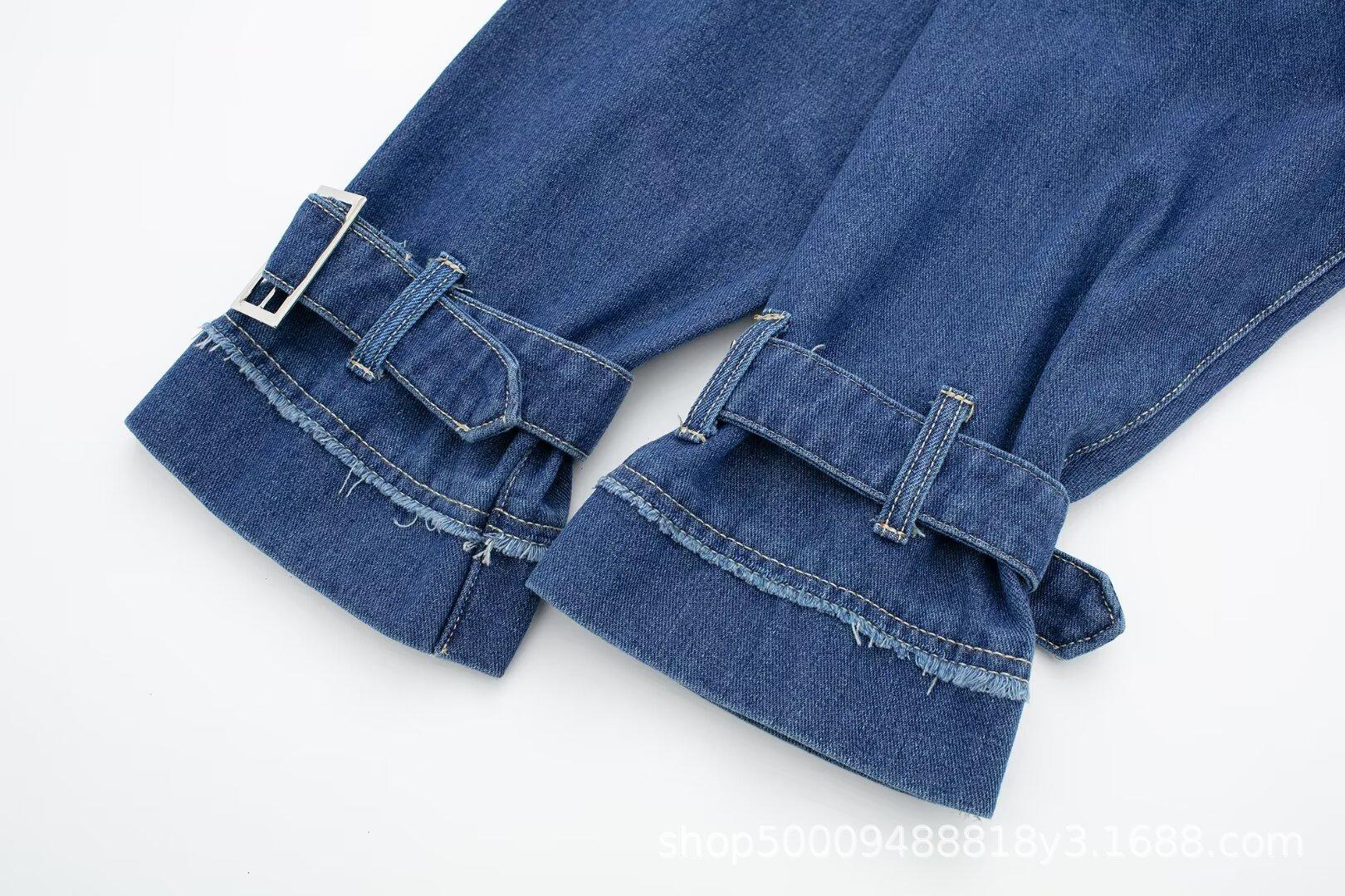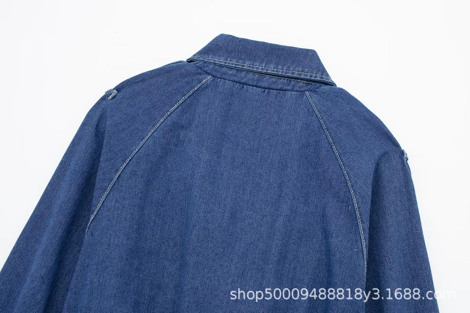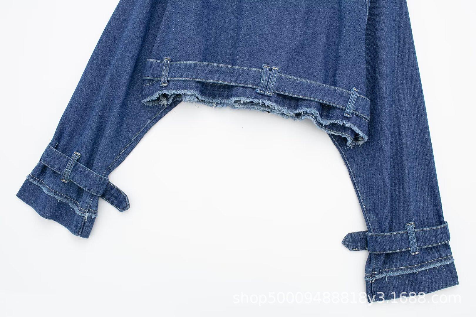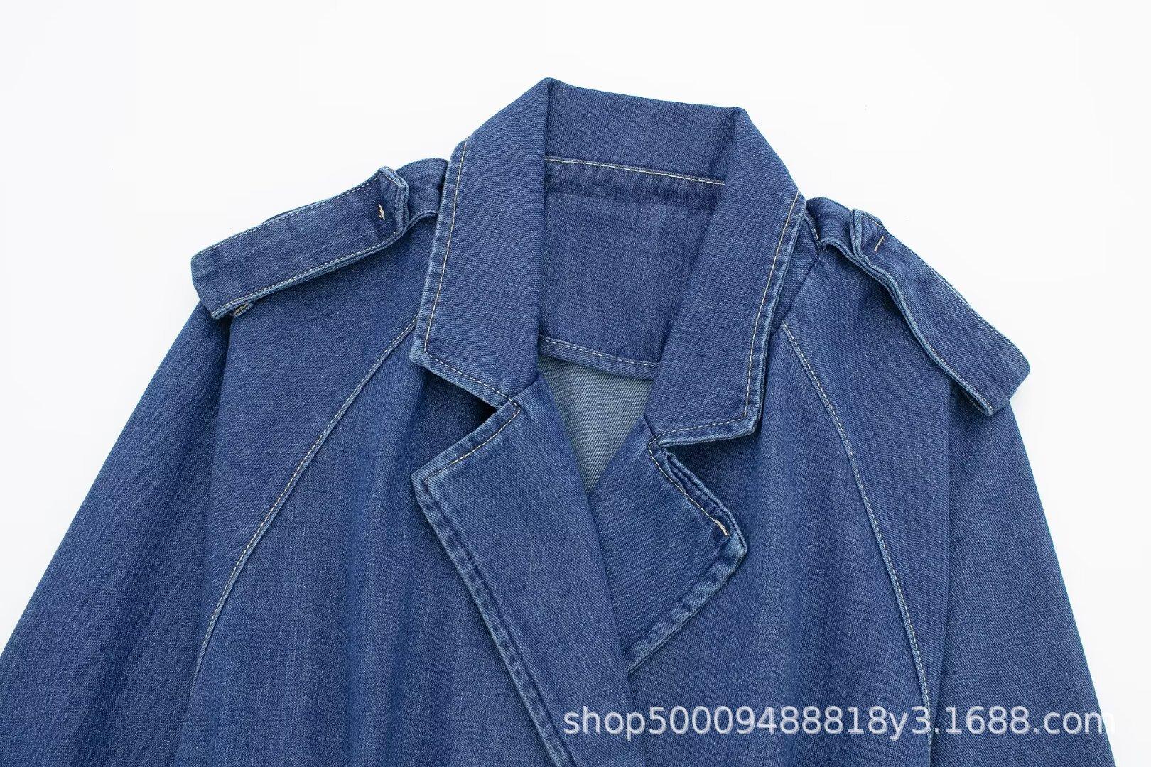 Comercio exterior transfronterizo otoño nuevo estilo europeo y americano retro con cinturón solapa suelta chaqueta corta de mezclilla lavada