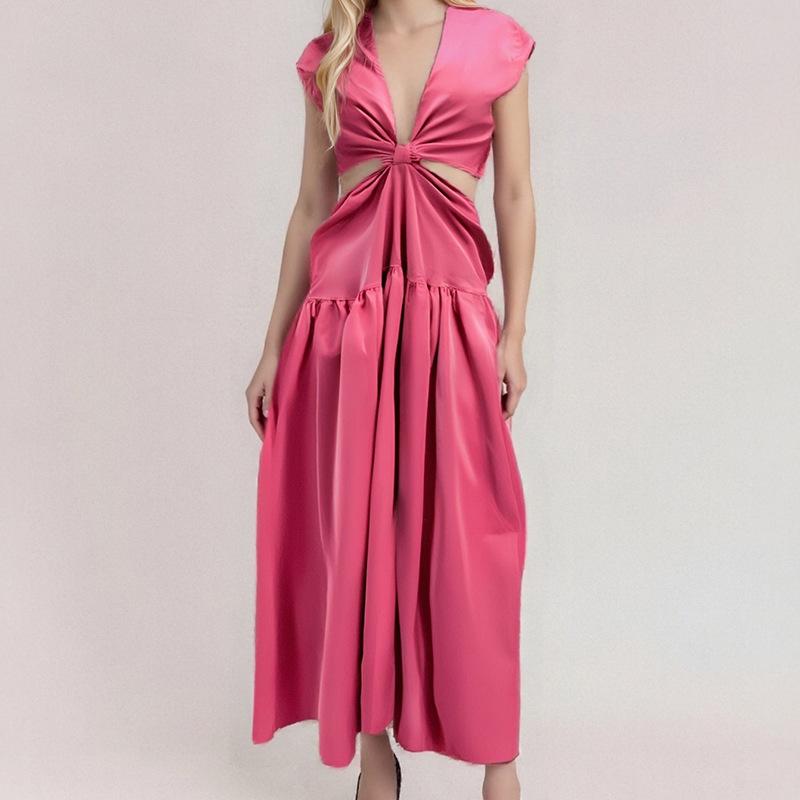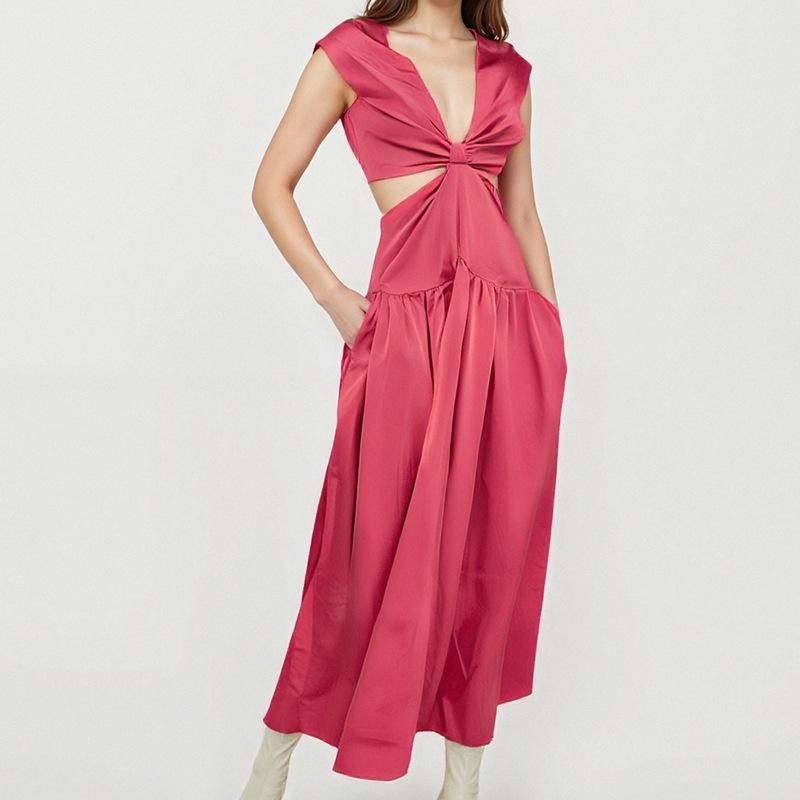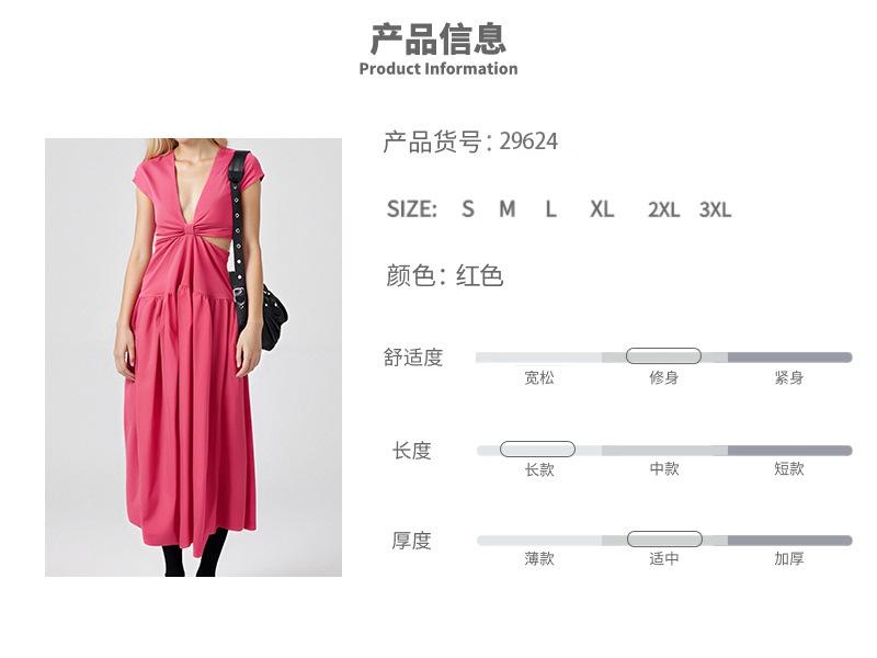 2025 Verano Otoño Nuevo Transfronterizo Amazon Moda Europea y Americana Elegante Sexy Chica Caliente Adelgazante Vestido de Color Sólido